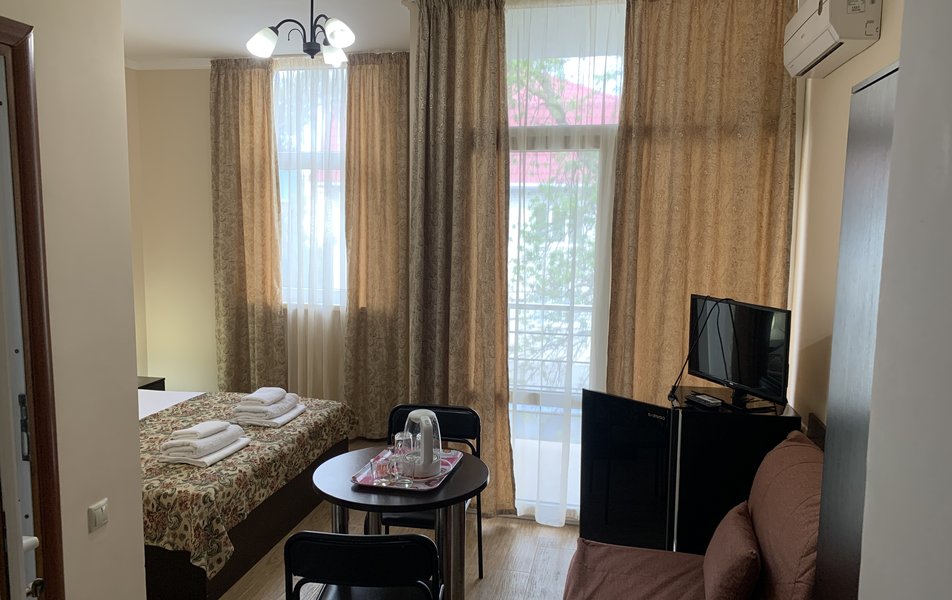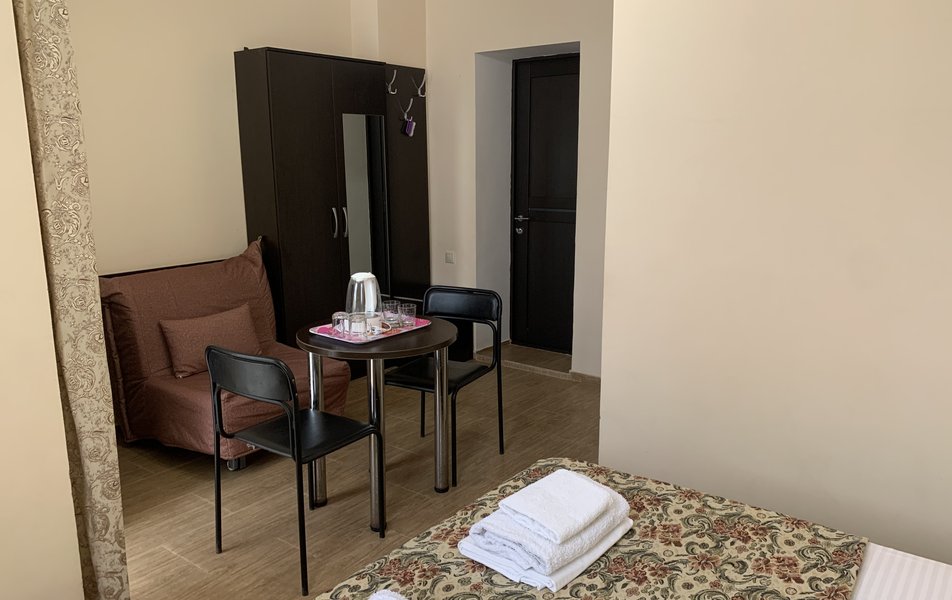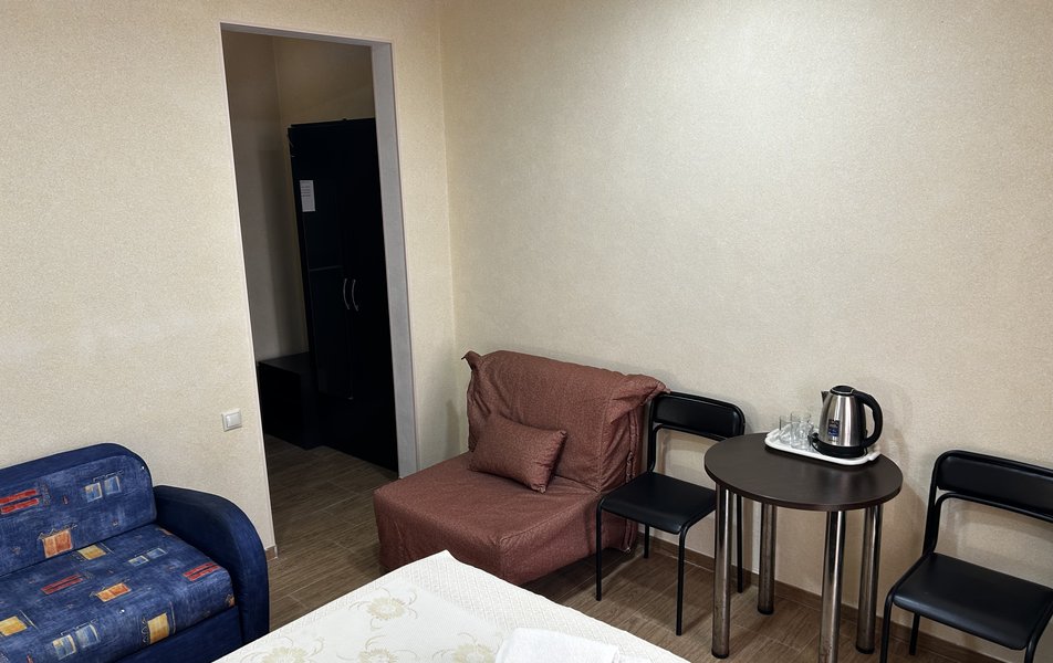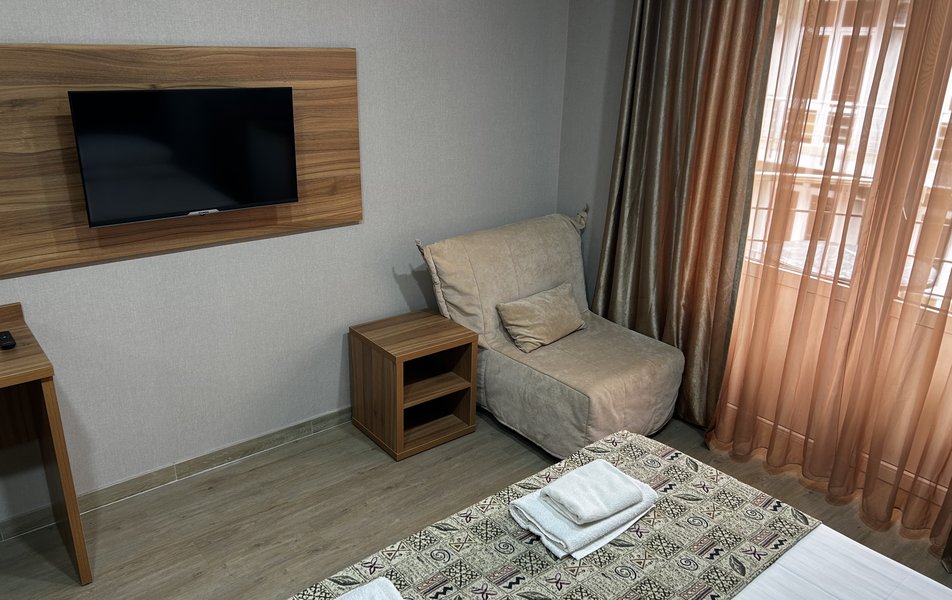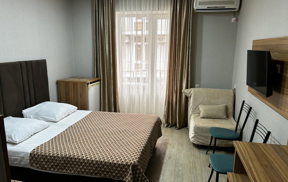 Стандартный 3-местный (2,3 этаж, с балконом) Количество комнат: 1-комнатный Тип номера: Стандартный Кол-во основных мест: 3 Площадь (кв. м): 19 Этаж: 2-3 Мебель: вешалка, зеркало, кресло, кровать двуспальная, кровать односпальная, прикроватные тумбочки, стол, стулья, шкаф Оборудование: сплит-система, телевизор, холодильник Санузел: с душем, туалетные принадлежности Сервис: Wi-Fi бесплатно, смена полотенец, смена постельного белья, уборка номера