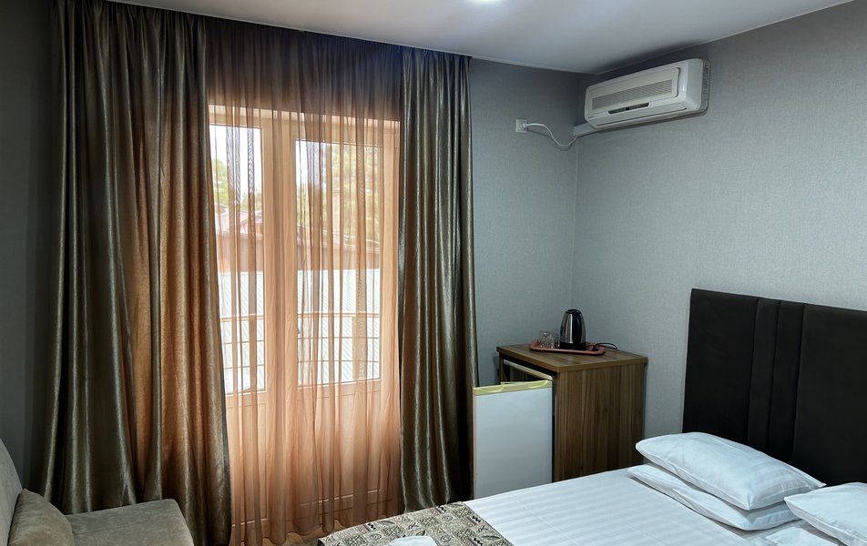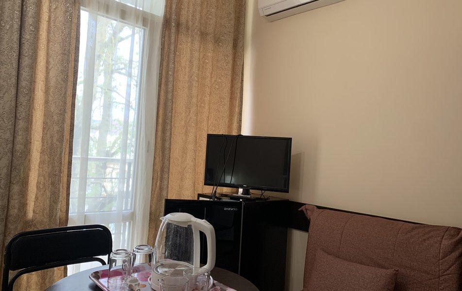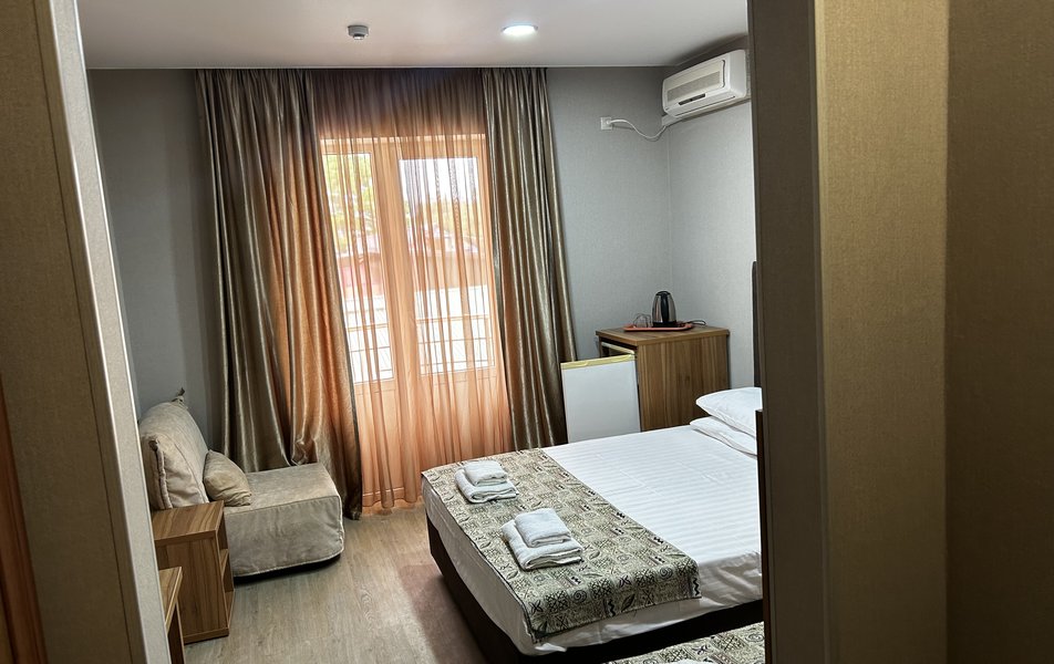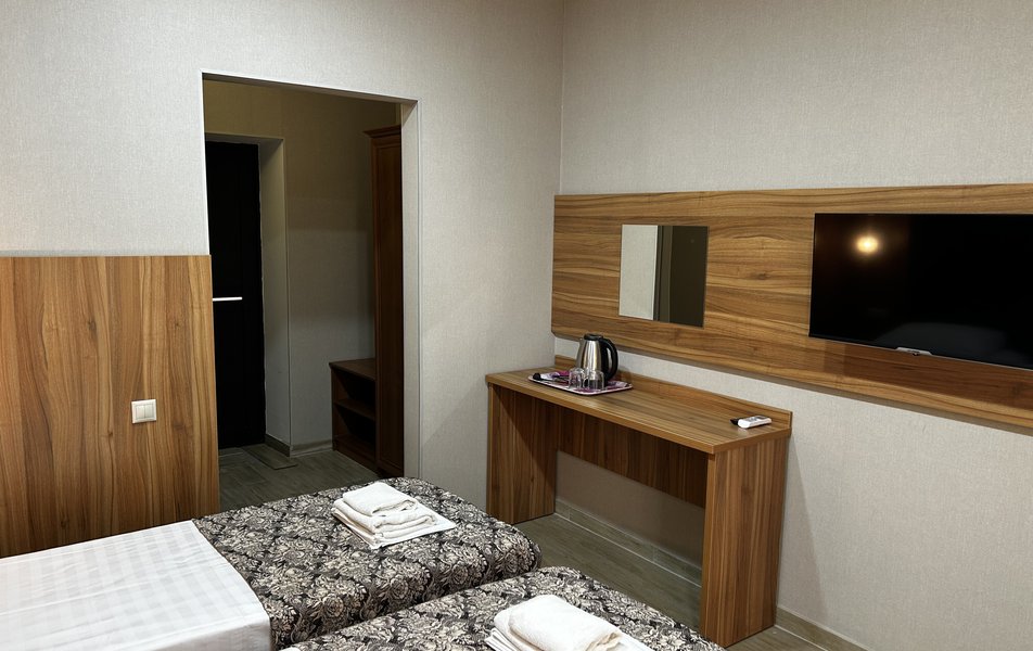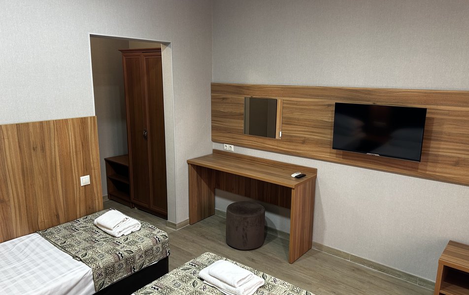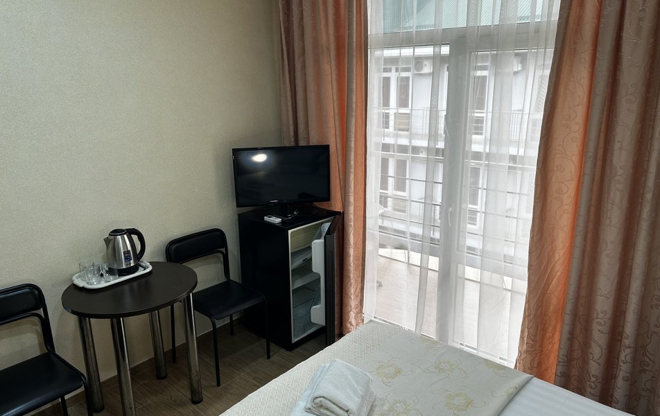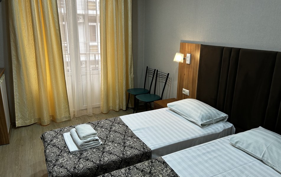 Стандартный 2-местный (TWIN, с балконом) Количество комнат: 1-комнатный Тип номера: Стандартный Кол-во основных мест: 2 Площадь (кв. м): 15 Мебель: вешалка, зеркало, кровати односпальные: 2, прикроватные тумбочки, стол, стулья, шкаф Оборудование: сплит-система, телевизор, холодильник Санузел: с душем, туалетные принадлежности Сервис: Wi-Fi бесплатно, смена полотенец, смена постельного белья, уборка номера