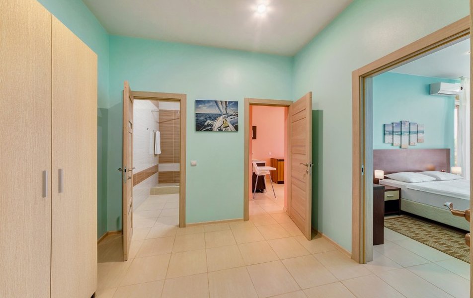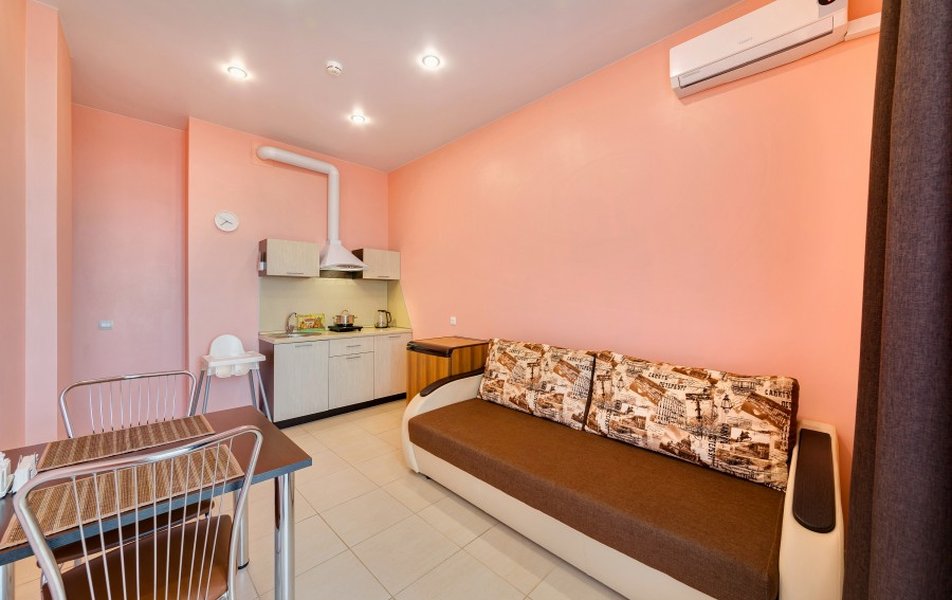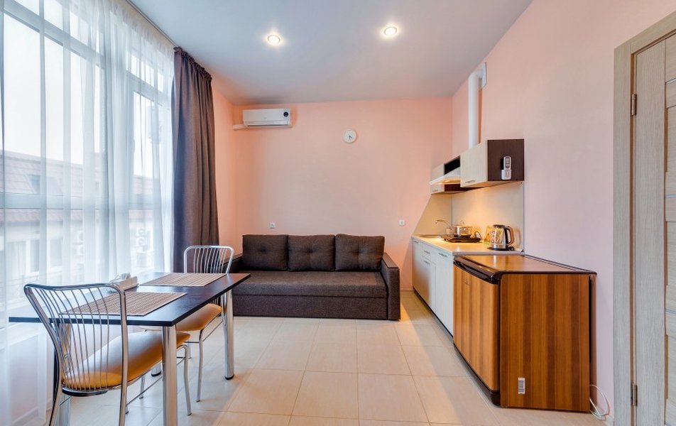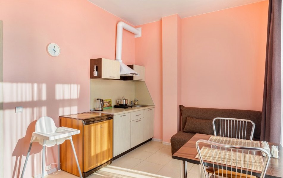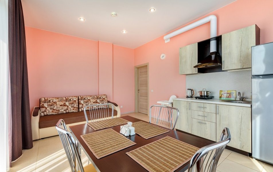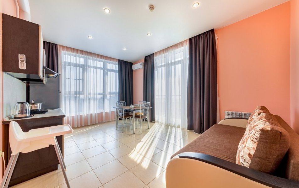 Мы очень старательно искали варианты удобного и безопасного отдыха и все наши пожелания сбылись! После долгой поездки (автомобилем) мы попали в настоящий оазис доброты, чистоты, простора и уюта одновременно. Замечательный персонал, душевная встреча и ВСЕ, что нужно семье с ребенком ЕСТЬ! Удобная новая мебель, хорошо оснащенный кухонный уголок, постоянное водоснабжение, регулярная смена белья, продуманный интерьер комнат. ОЧЕНЬ ПОНРАВИЛОСЬ!!! Яркая деталь-это терраса с видом на море, где можно поужинать, позавтракать или просто полюбоваться закатом. Дополняет удовольствия кафе на первом этаже. Простая вкусная, а главное, свежая пища -это то , что нам было нужно для спокойствия при кормлении нашего главного гостя, которому 5 лет)))) Развлекательная открытая площадка на 6 этаже, это изюминка отеля, мы все с удовольствием проводили время и наслаждались отдыхом. СПАСИБО ОГРОМНОЕ ВСЕМ, КТО УЧАСТВОВАЛ В ПРОЦЕССЕ ОРГАНИЗАЦИИ НАШЕГО ОТДЫХА!!!!