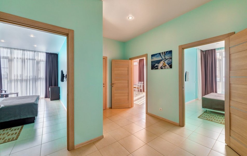 Понравились отличные номера, бесперебойная подача воды, близость к пляжу. Отдельно хочется отметить администраторов: все вопросы и просьбы решались моментально. Спасибо! При выборе отеля семьям с маленькими детьми и инвалидами нужно учитывать подъем в горку с моря. В двухкомнатных апартаментах очень не хватает посудомоечной машины, и очень не помешал бы хотя бы маленький духовой шкаф.