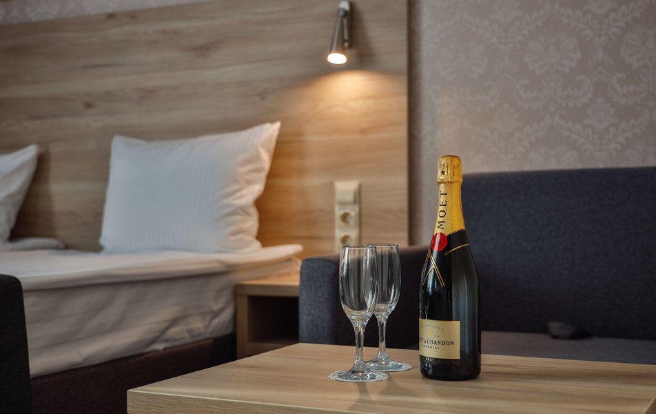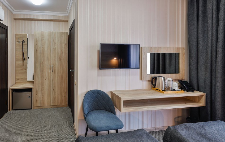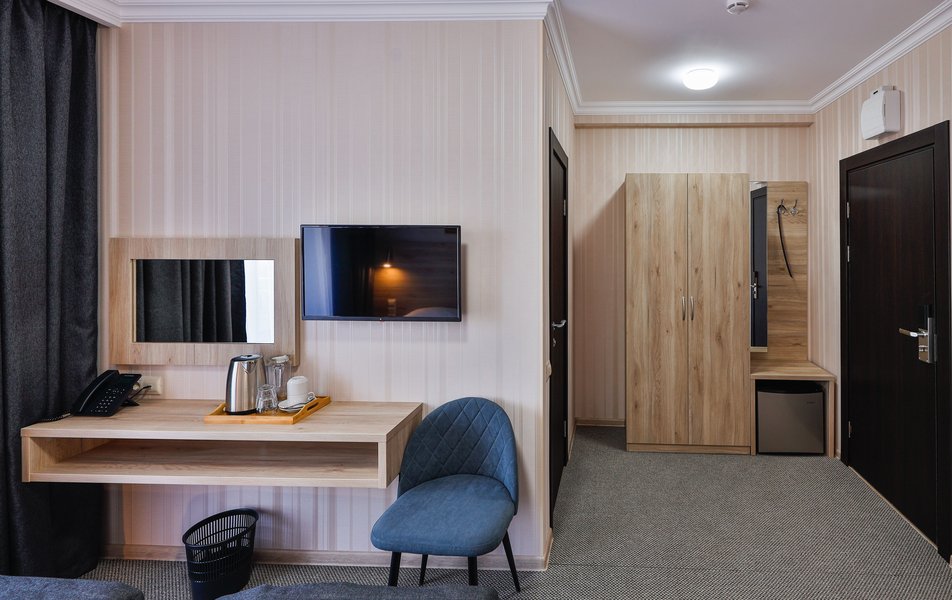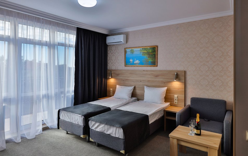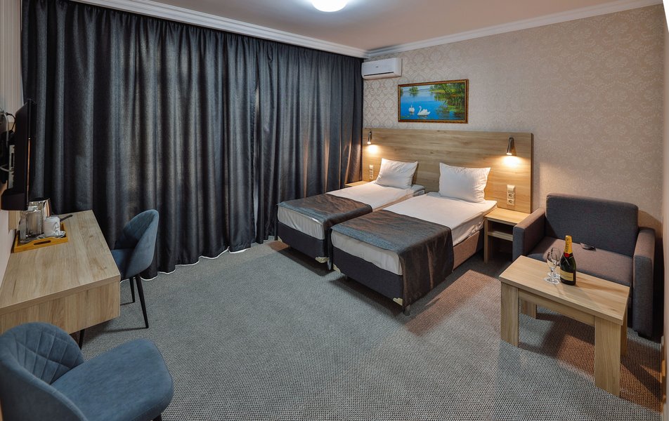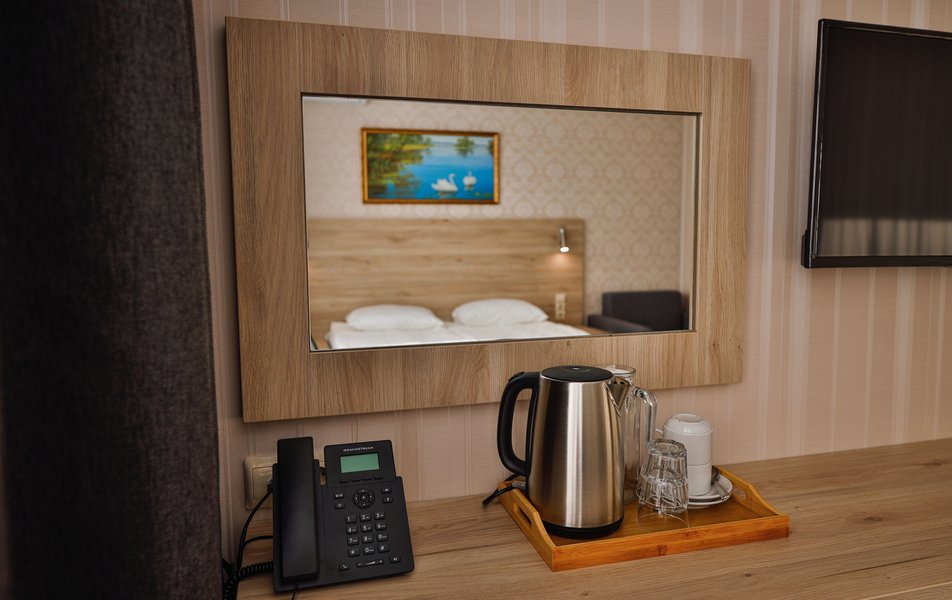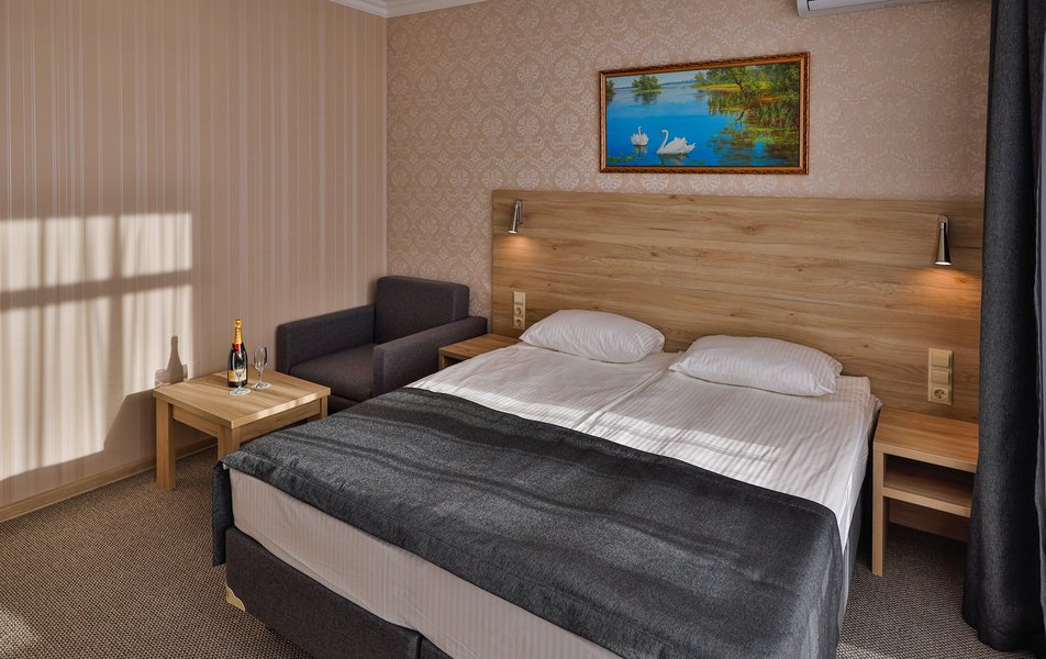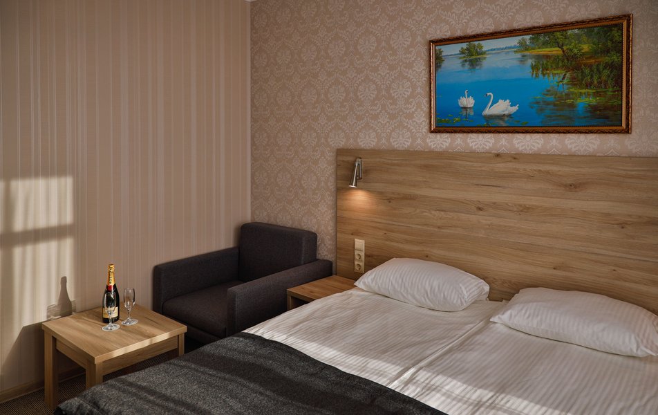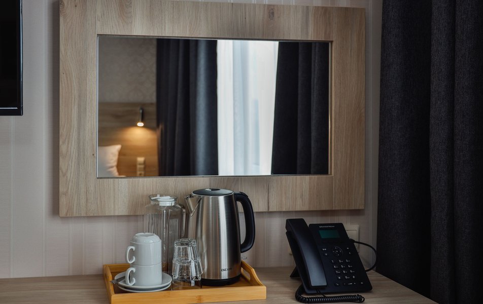 Отель расположен на центральной улице города, понравился хороший новый ремонт, парковка чисто и уютно. Персонал приветливый подсказали какие места можно посетить зимой. В номере есть всё необходимое чайник посуда фен сейф сенузел с душем вход в номер по карточке. Брали в аренду баню за 2000 рублей два часа плюс веник 300 р Банька супер!