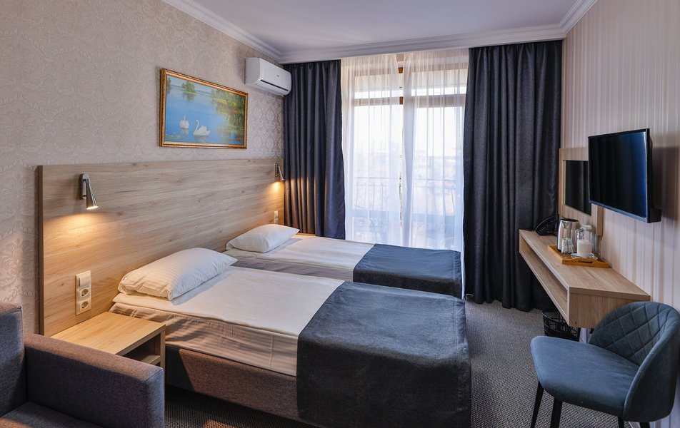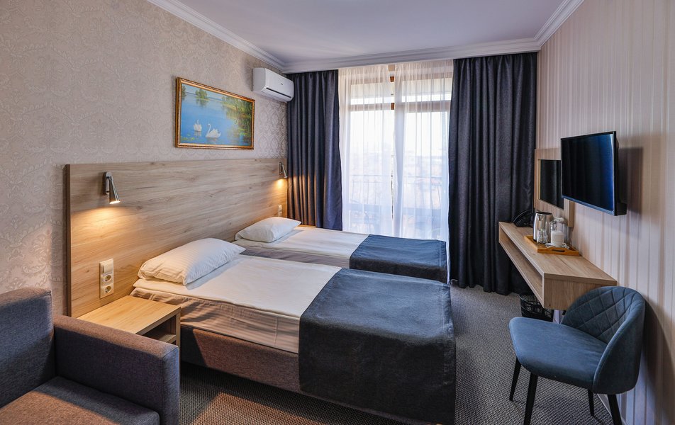 Очень понравился отель: прекрасные номера, чудесное расположение в городе - до набережной рукой подать, замечательные завтраки, очень разнообразные, вкусные и обильные. Отель только после ремонта, сверкают белоснежной чистотой полотенца и постельное белье, обалденные матрасы. В номере есть чайник, холодильник, посуда, в коридоре кулер с водой. Очень хорошая туалетная комната и отличный душ. Гостеприимные и радушные сотрудники на ресепшене. Отдохнули прекрасно, обязательно вернемся именно сюда!