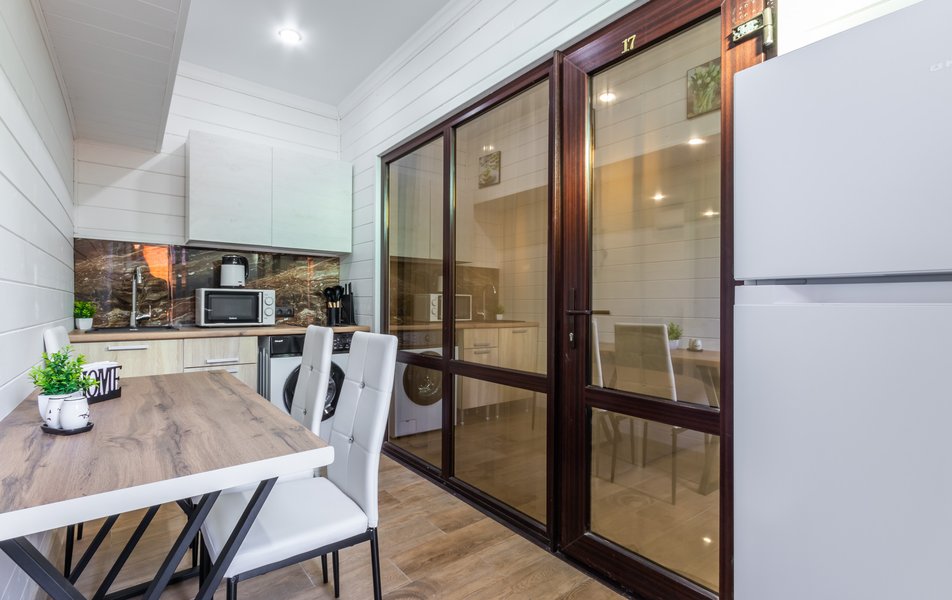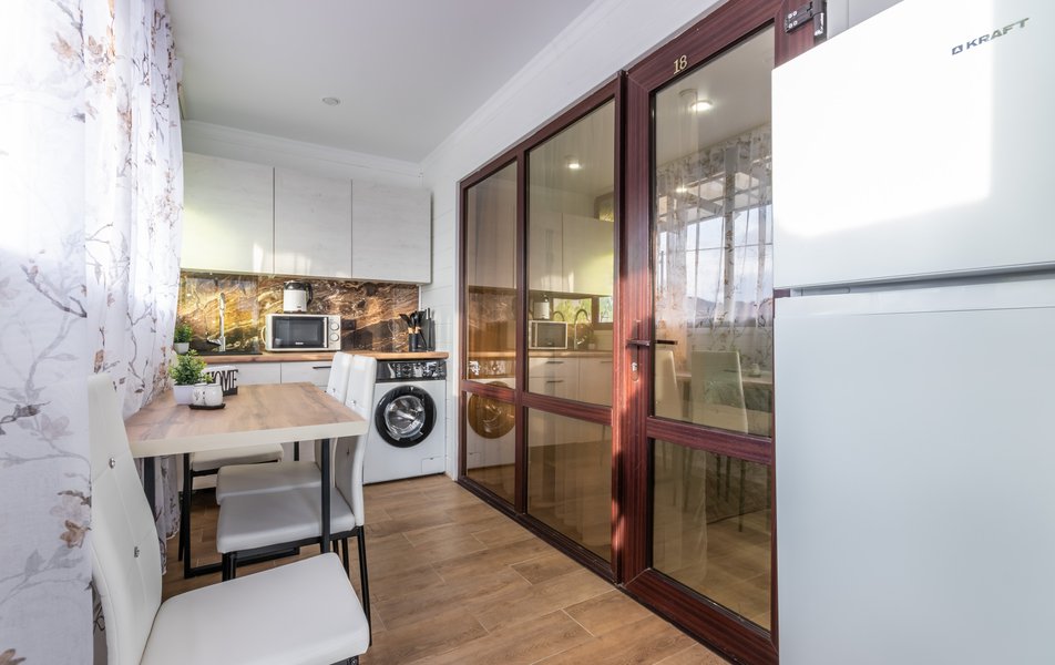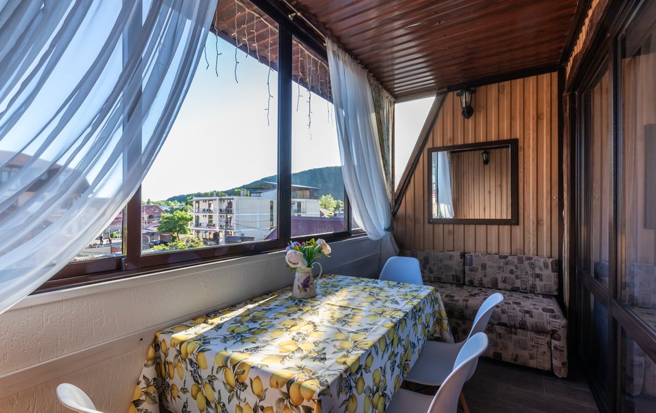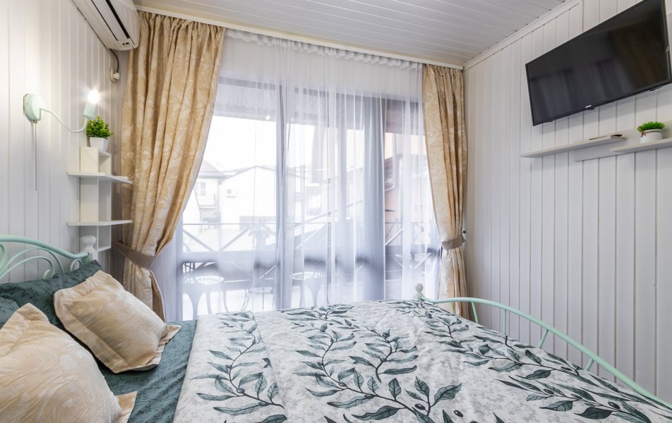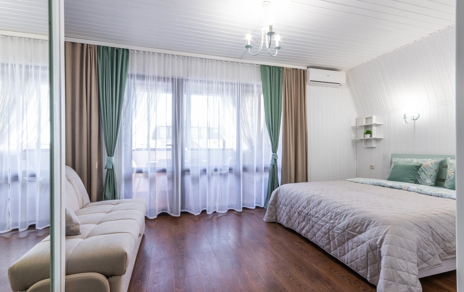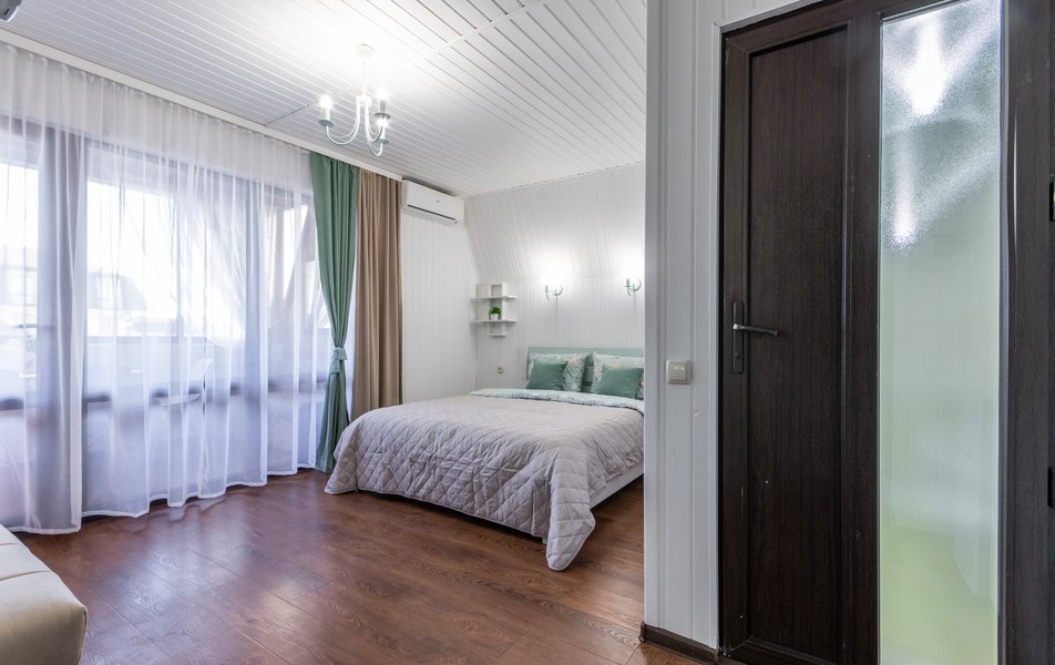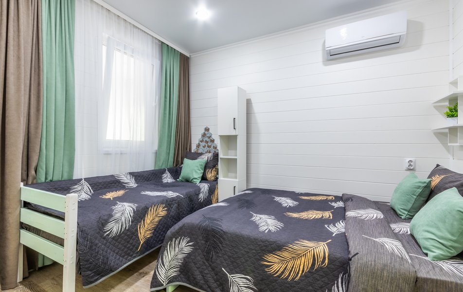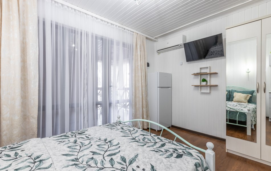 Апартаменты 5-местный Количество комнат: 1-комнатный Тип номера: Апартаменты Кол-во основных мест: 5 Площадь (кв. м): 40 Мебель: зеркало, кровати односпальные: 3, кровать двуспальная, прикроватные тумбочки, пуфик, стол, стулья, шкаф Оборудование: кондиционер, микроволновая печь, набор посуды, плита индукционная, стиральная машина, телевизор, холодильник, электрочайник Санузел: с душем, тапочки, туалетные принадлежности, фен, халат Сервис: Wi-Fi бесплатно, смена полотенец: 1 раз в 3 дня, смена постельного белья: 1 раз в 5 дней, уборка номера: 1 раз в 3 дня