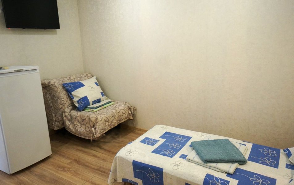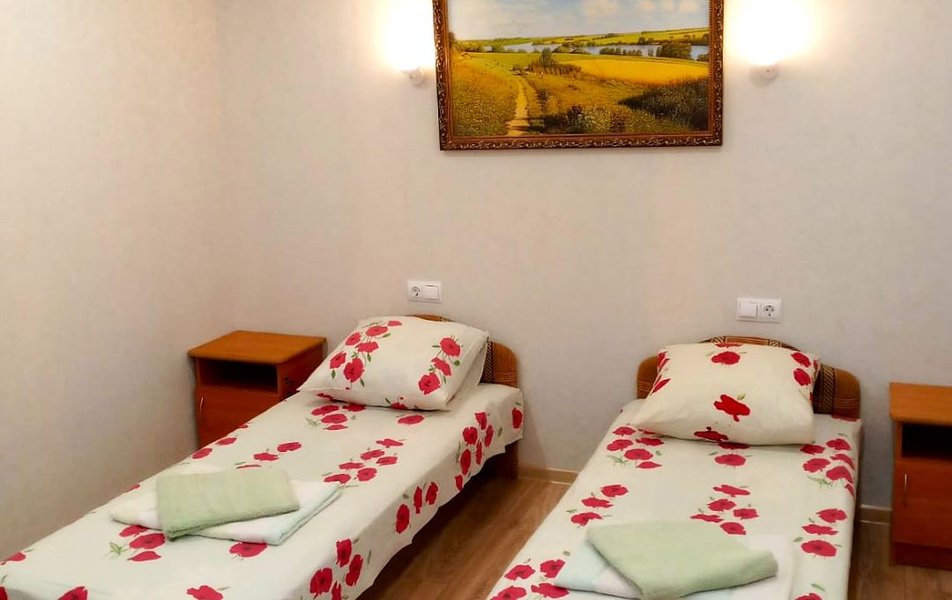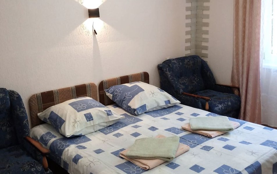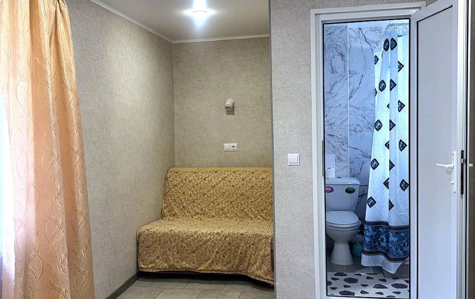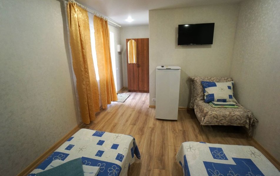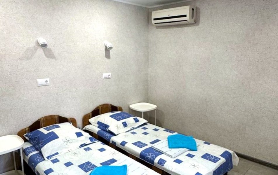 Номер 2-местный Количество комнат: 1-комнатный Кол-во основных мест: 2 Мебель: зеркало, кровать двуспальная: либо 1-спальная кровать и диван, прикроватные тумбочки, шкаф Оборудование: кондиционер, телевизор Санузел и душевые на территории: во дворе Сервис: Wi-Fi бесплатно, смена полотенец, смена постельного белья, уборка номера