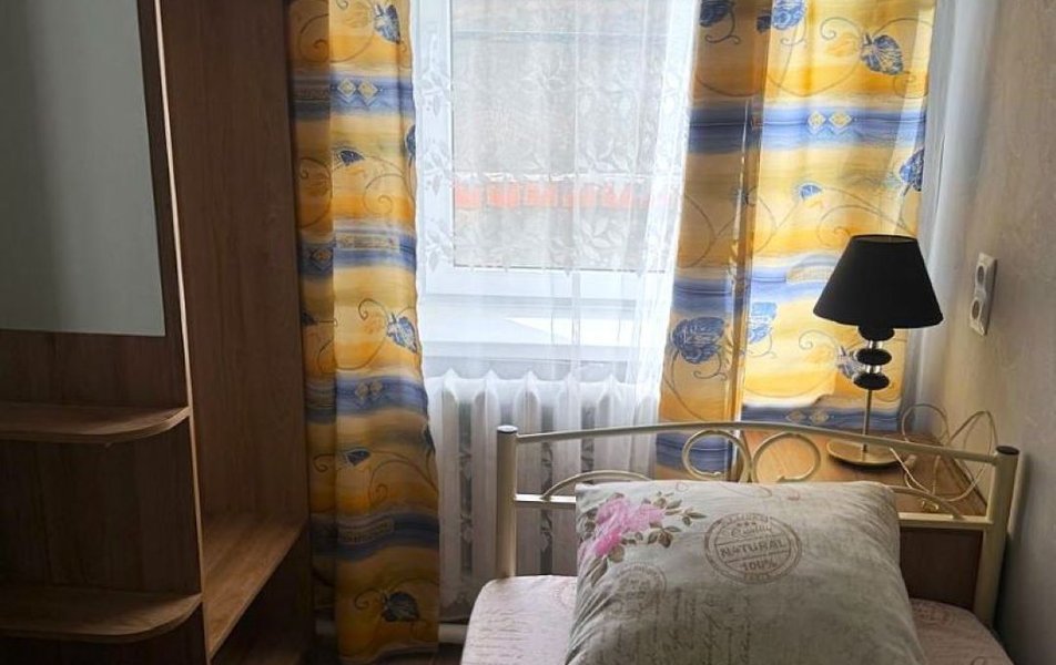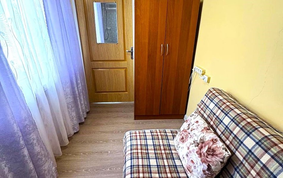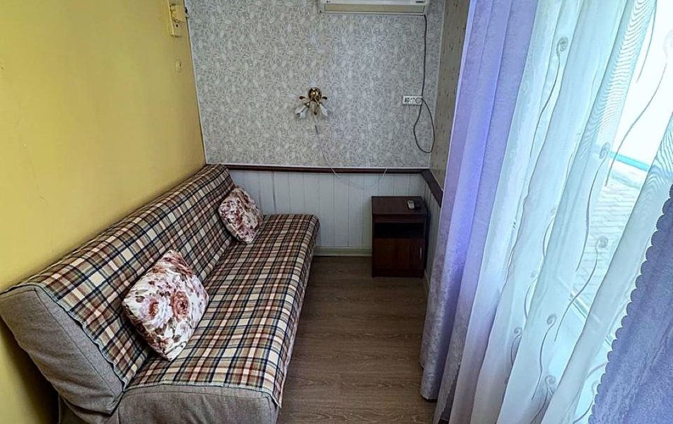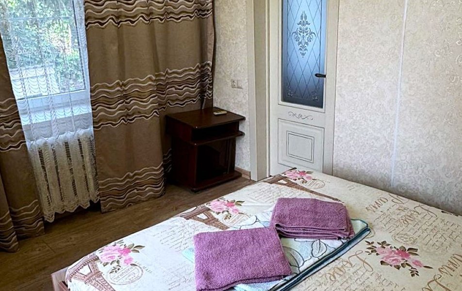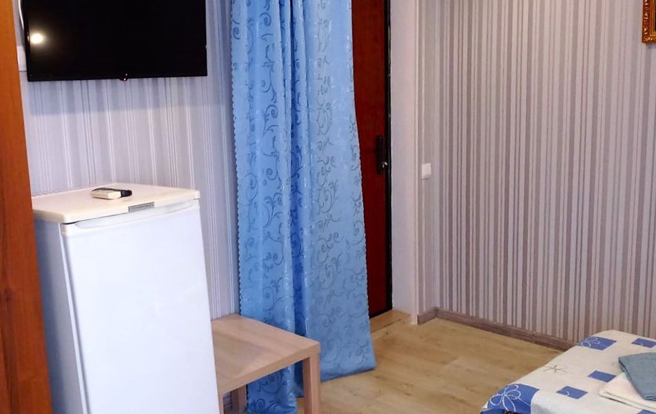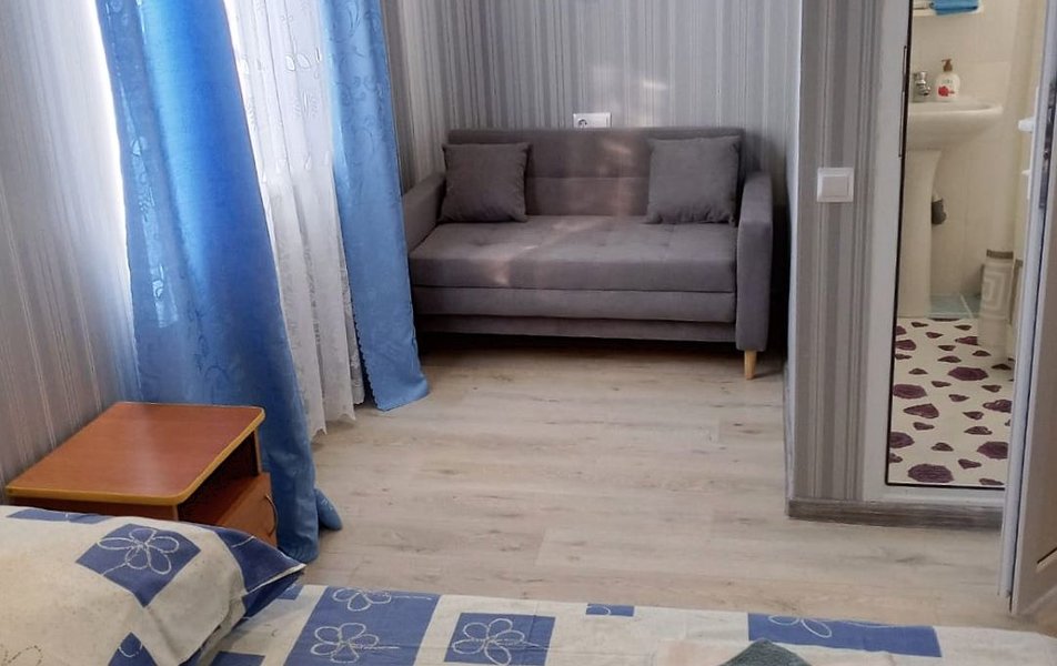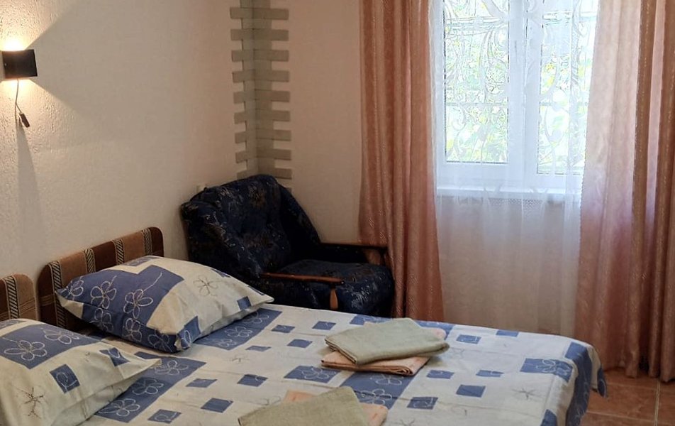 Номер 2-местный Количество комнат: 1-комнатный Кол-во основных мест: 2 Мебель: зеркало, кровать двуспальная: либо 1-спальная кровать и диван, прикроватные тумбочки, шкаф Оборудование: кондиционер, телевизор Санузел и душевые на территории: во дворе Сервис: Wi-Fi бесплатно, смена полотенец, смена постельного белья, уборка номера