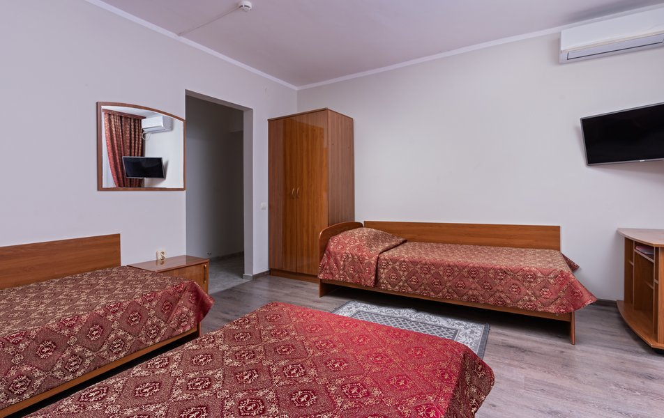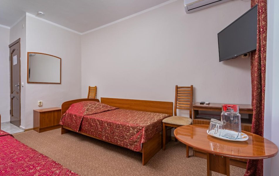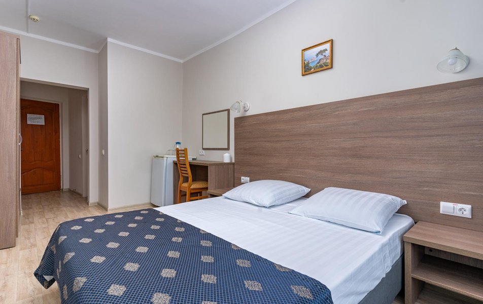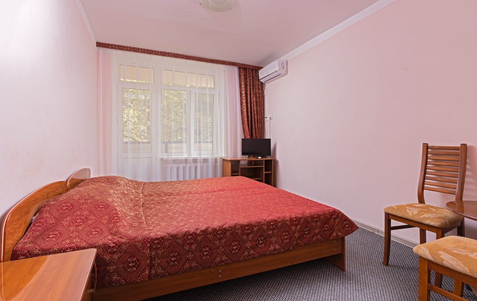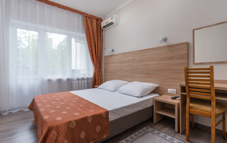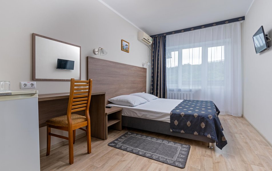 Стандартный 1-местный 1-комнатный (корпус № 1) Количество комнат: 1-комнатный Тип номера: Стандартный Кол-во основных мест: 1 Корпус: № 1 Площадь (кв. м): 10 Мебель: вешалка, зеркало, кровать односпальная, прикроватная тумбочка, стол, стулья, шкаф Оборудование: кондиционер, сейф, телевизор, холодильник, чайный набор посуды Санузел: с ванной, туалетные принадлежности Сервис: смена полотенец, смена постельного белья, уборка номера