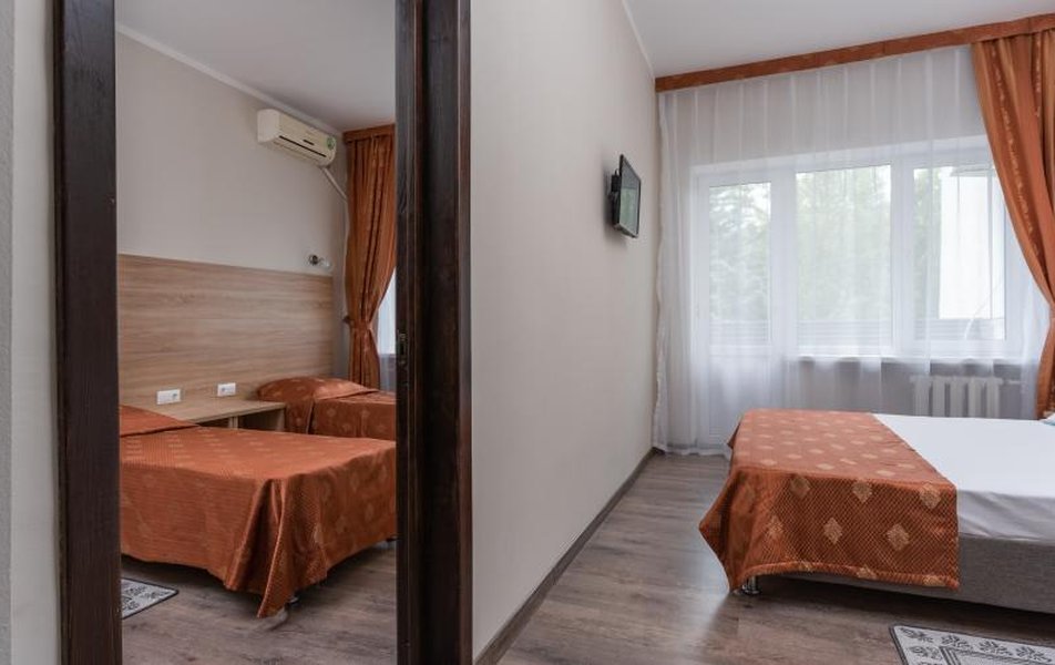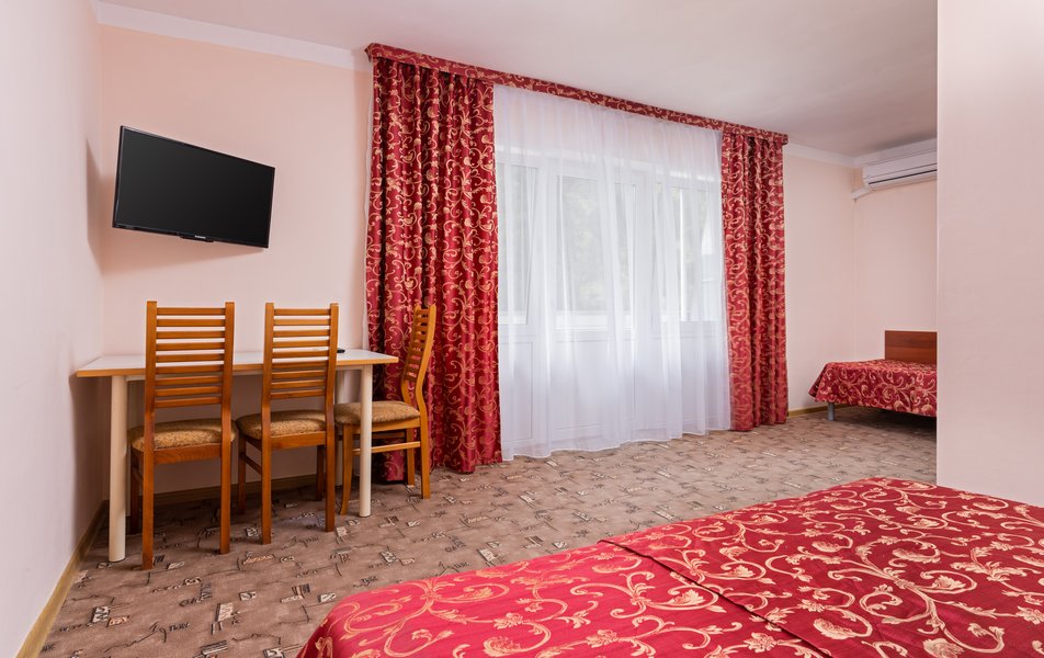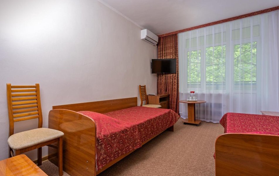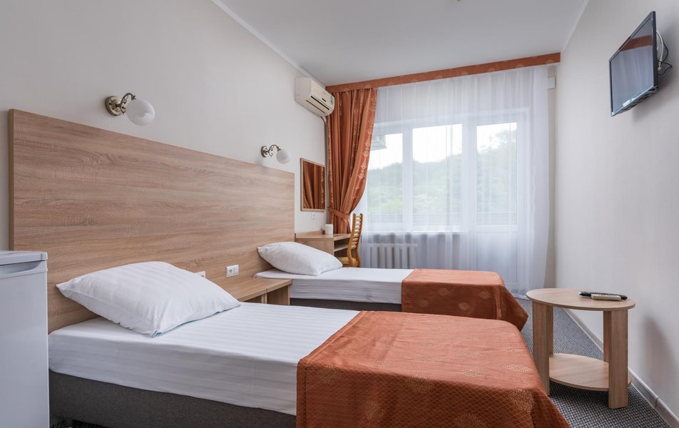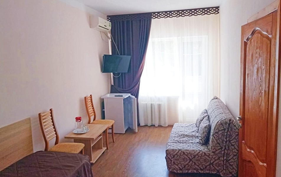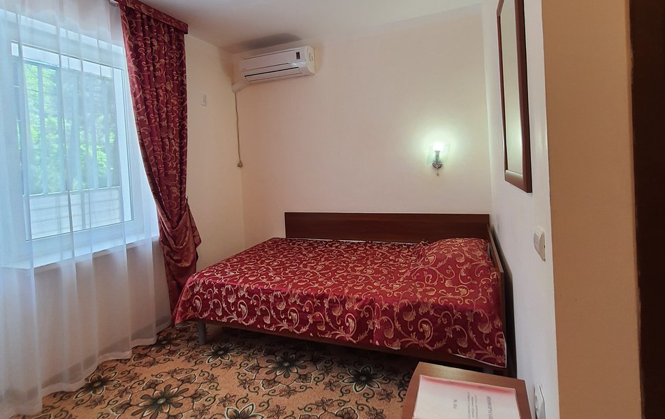 Стандартный 1-местный 1-комнатный (корпус № 1) Количество комнат: 1-комнатный Тип номера: Стандартный Кол-во основных мест: 1 Корпус: № 1 Площадь (кв. м): 10 Мебель: вешалка, зеркало, кровать односпальная, прикроватная тумбочка, стол, стулья, шкаф Оборудование: кондиционер, сейф, телевизор, холодильник, чайный набор посуды Санузел: с ванной, туалетные принадлежности Сервис: смена полотенец, смена постельного белья, уборка номера