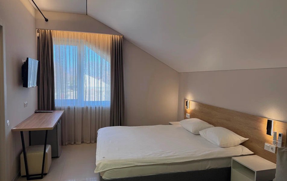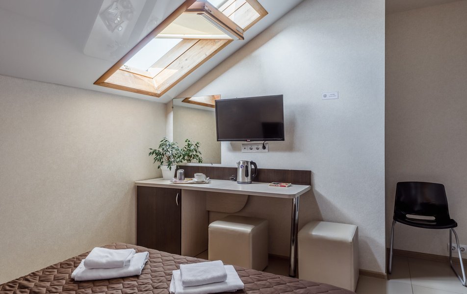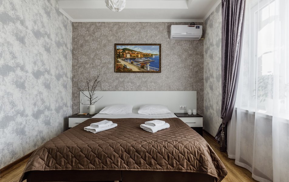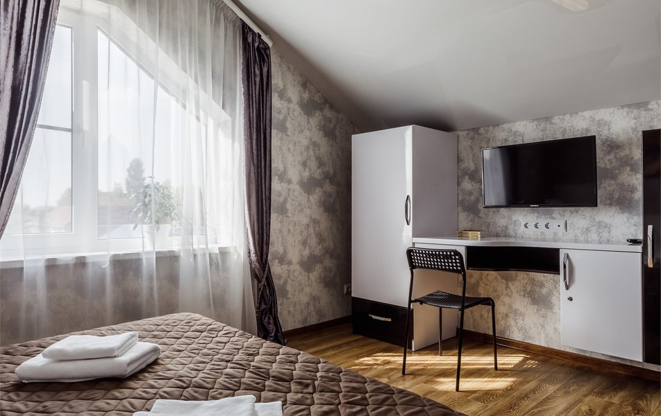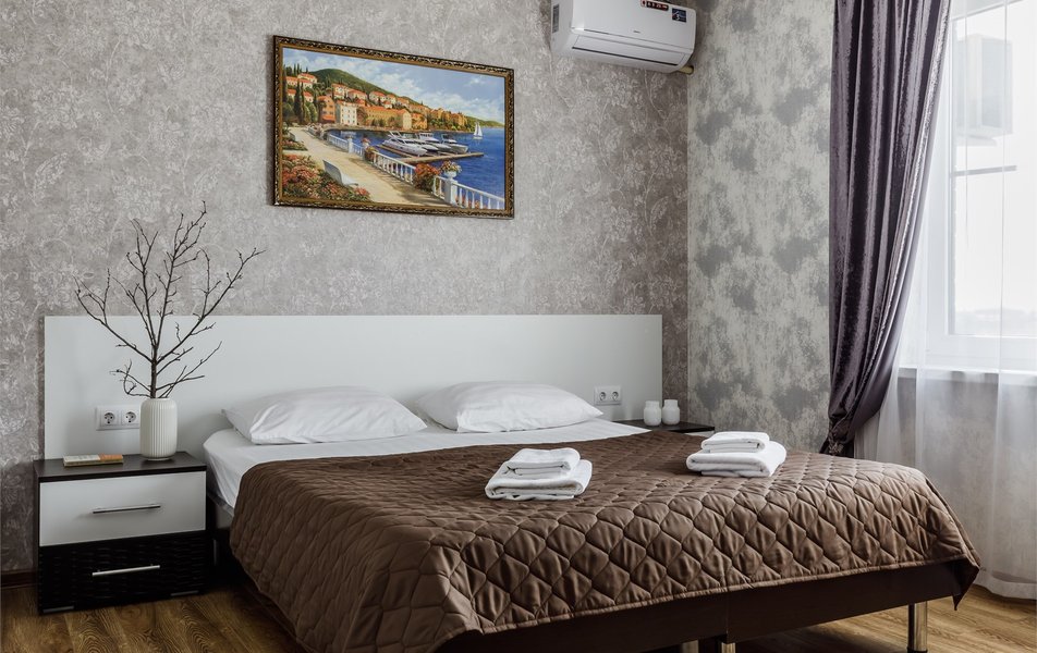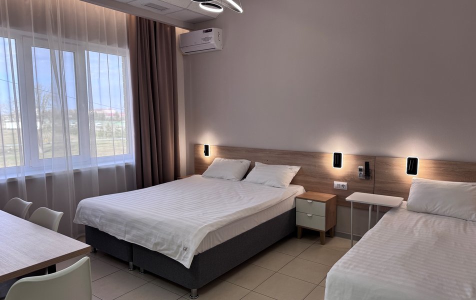 Комфорт 2-местный Количество комнат: 1-комнатный Тип номера: Комфорт Кол-во основных мест: 2 Площадь (кв. м): 19 Мебель: вешалка, зеркало, кровати односпальные /одна двуспальная кровать, прикроватные тумбочки, стол, стулья, шкаф Оборудование: мини-холодильник, набор посуды, сплит-система, телевизор, электрочайник Санузел: с душем, тапочки, туалетные принадлежности, фен Сервис: Wi-Fi бесплатно, смена полотенец, смена постельного белья, уборка номера