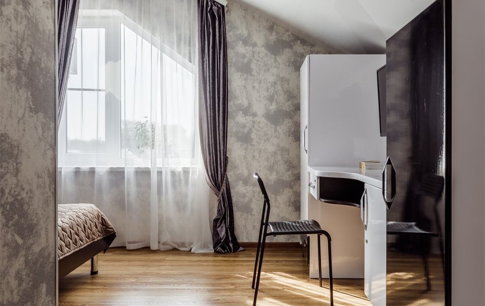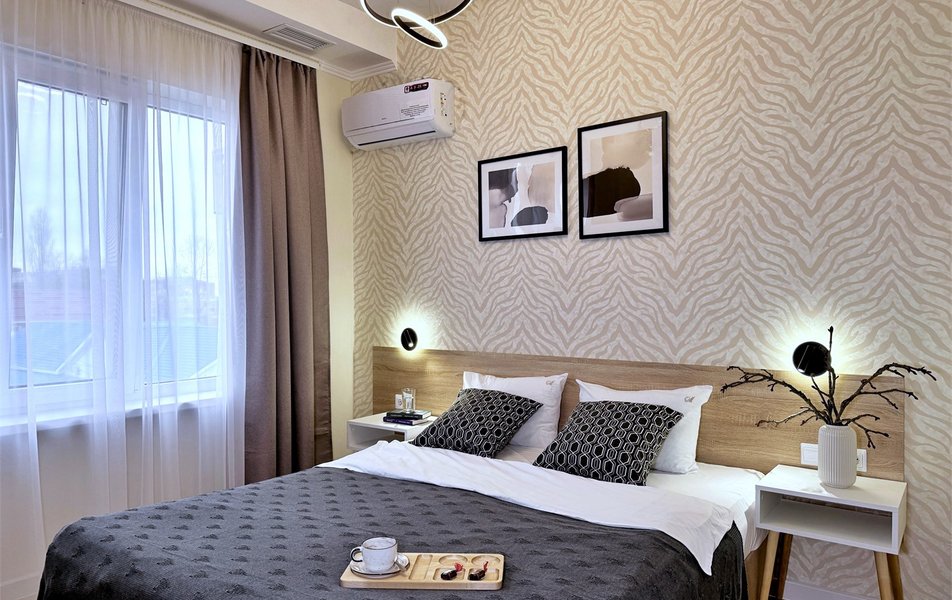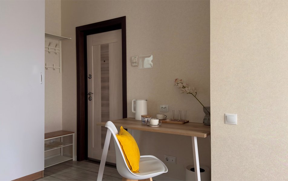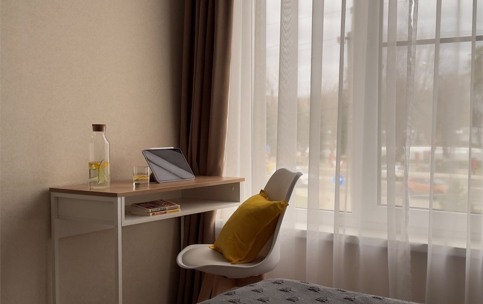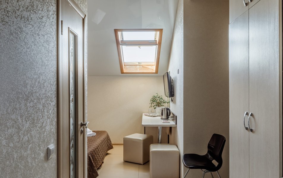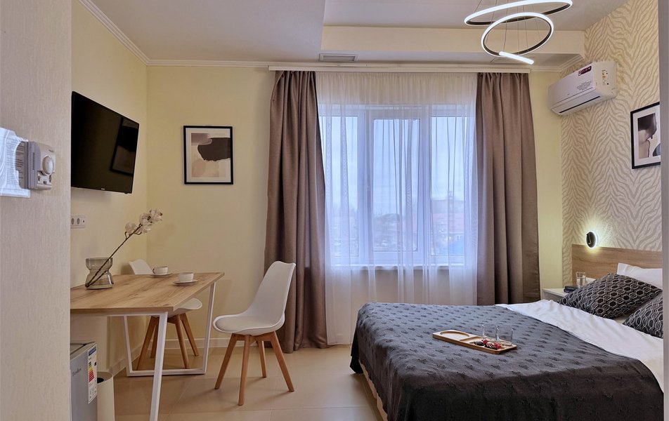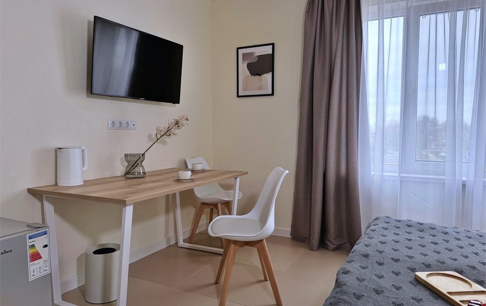 Комфорт 2-местный Количество комнат: 1-комнатный Тип номера: Комфорт Кол-во основных мест: 2 Площадь (кв. м): 19 Мебель: вешалка, зеркало, кровати односпальные /одна двуспальная кровать, прикроватные тумбочки, стол, стулья, шкаф Оборудование: мини-холодильник, набор посуды, сплит-система, телевизор, электрочайник Санузел: с душем, тапочки, туалетные принадлежности, фен Сервис: Wi-Fi бесплатно, смена полотенец, смена постельного белья, уборка номера