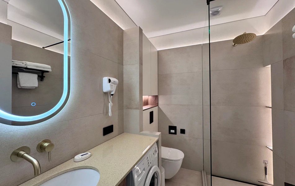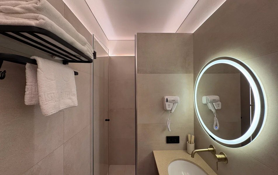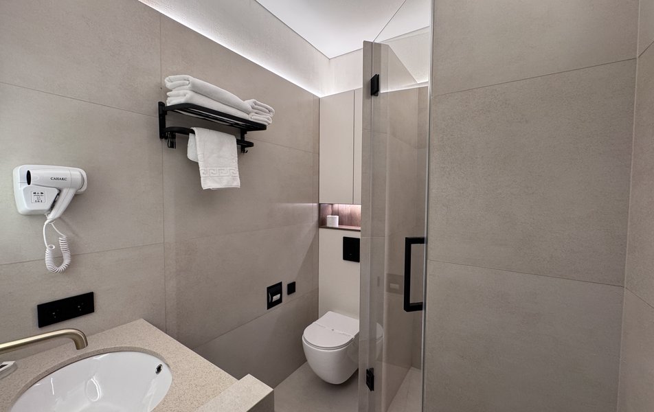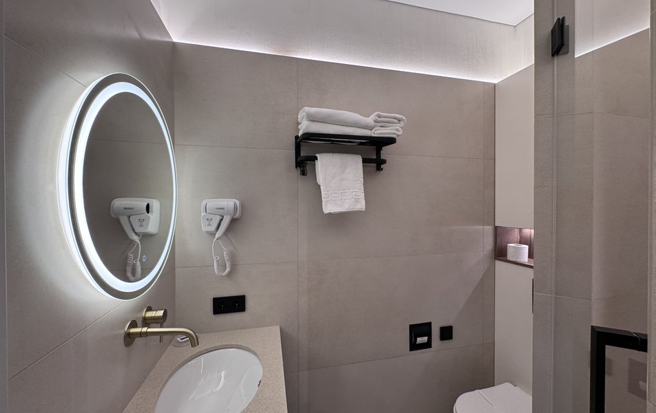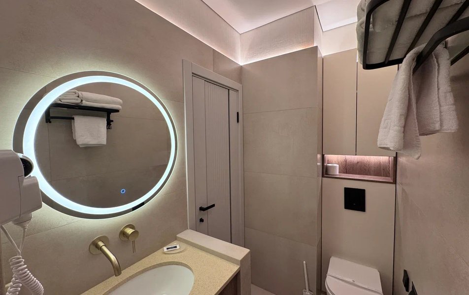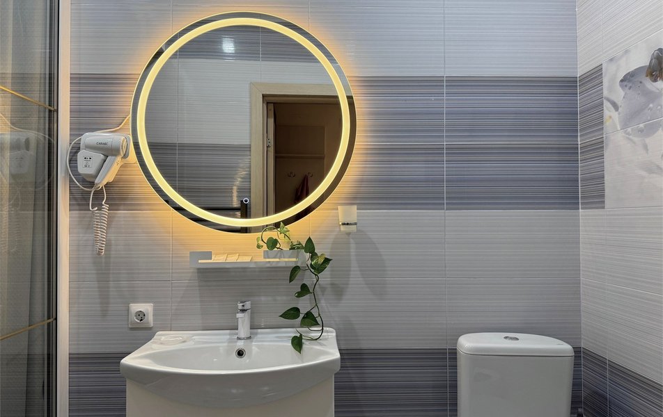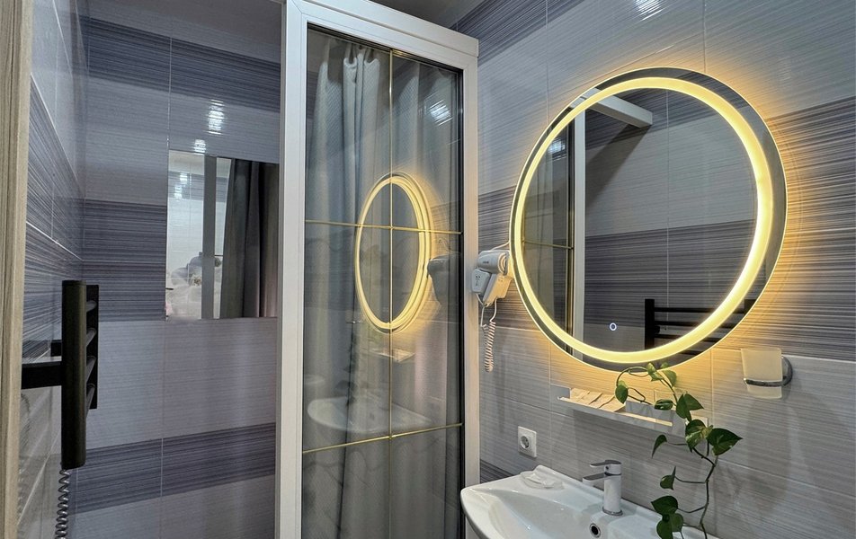Комфорт плюс 2-местный Количество комнат: 1-комнатный Тип номера: Бизнес Кол-во доп. мест: 1 Кол-во основных мест: 2 Мебель: вешалка, зеркало, кровать двуспальная, кровать односпальная, прикроватные тумбочки, стол, стулья, шкаф Оборудование: сплит-система, телевизор, холодильник, электрочайник Санузел: с душем, тапочки, туалетные принадлежности, фен, халат Сервис: Wi-Fi бесплатно, смена полотенец, смена постельного белья, уборка номера