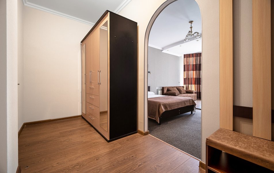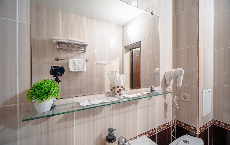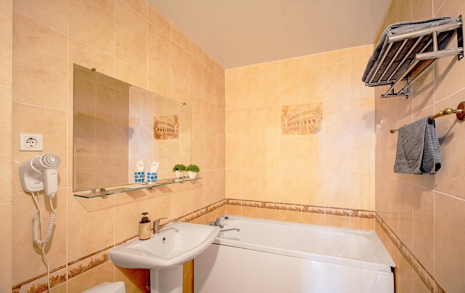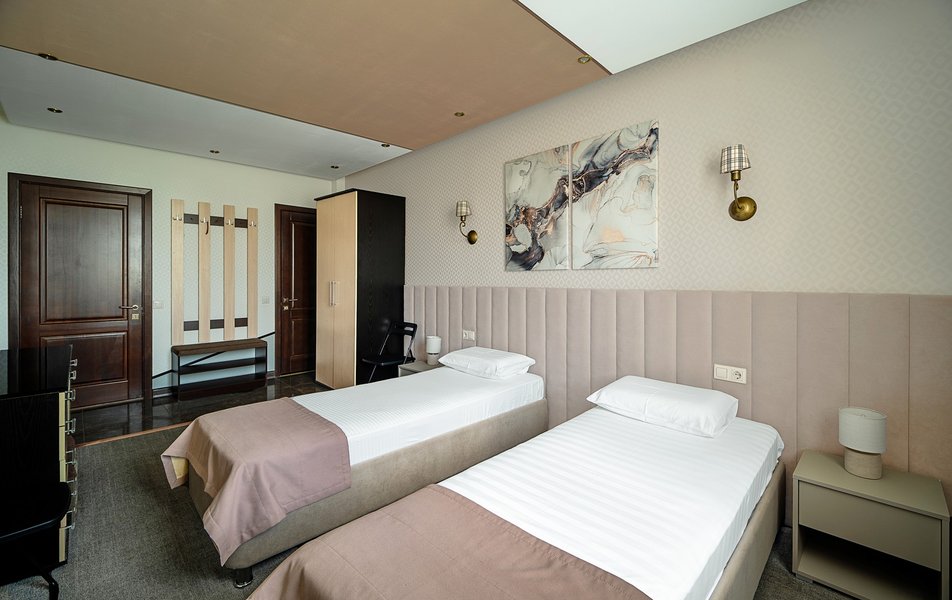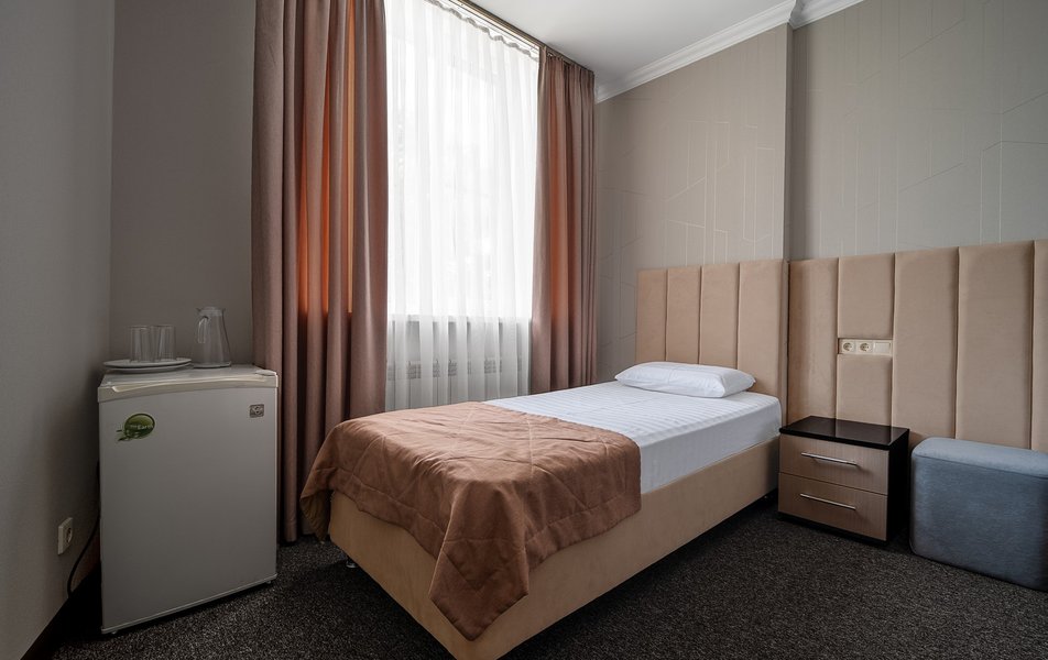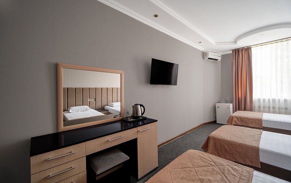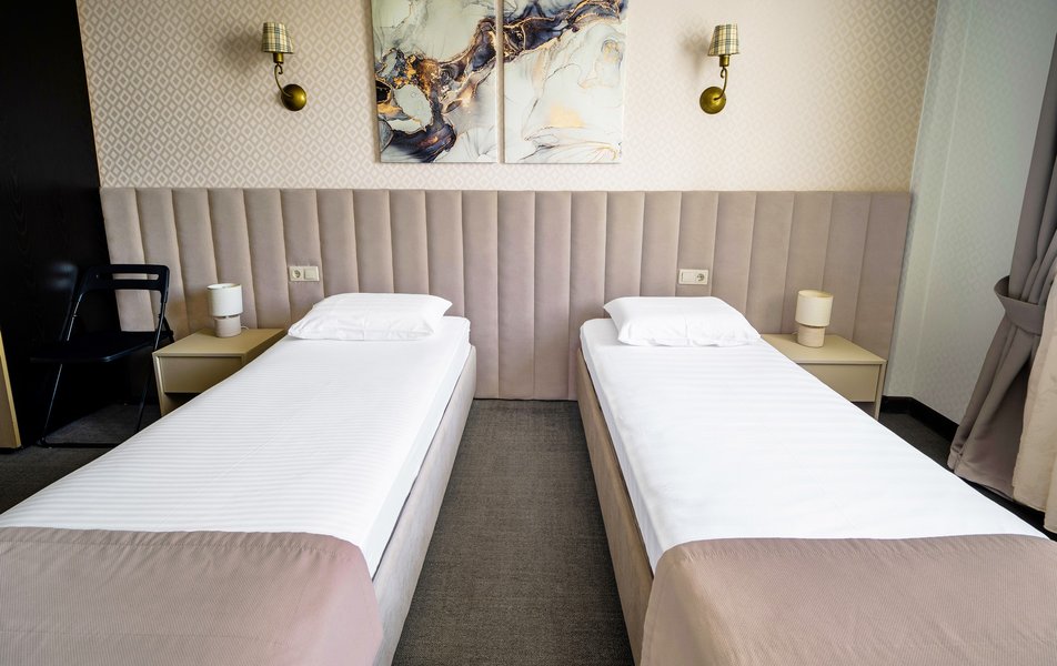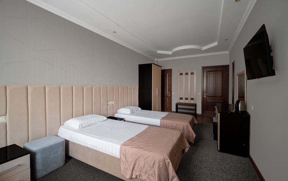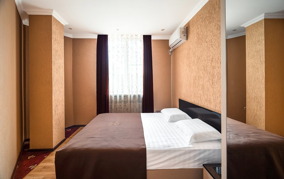 Взяли этот отель только из-за того, что он в Букинге «выкинул» интересный ценник за номер с двумя двухспальными кроватями. Номер оказался большим. Но грязным. Детей носил на руках, чтобы они босыми ногами не вставали на пол. Сложилось такое ощущение, что в комнату свалили не нужную мебель умирать. Детей не стали раздевать, они спали в одежде. Одеяла пыльные, хорошо, что тепло было, укрылись одними пододеяльниками. В ванной комнате так же грязно. Мыться побоялись. Приехали в отель в 23, а уехали в 8 утра. Надеюсь за это время ничего не подхватили. Да и кстати в выходной день ресторан работает с 10-00. Так что утреннего завтрака по выходным нет. Если отель не приведут в порядок, и вы волей какого не понятного случая попадёте туда: Спите в одежде в своих тапочках.