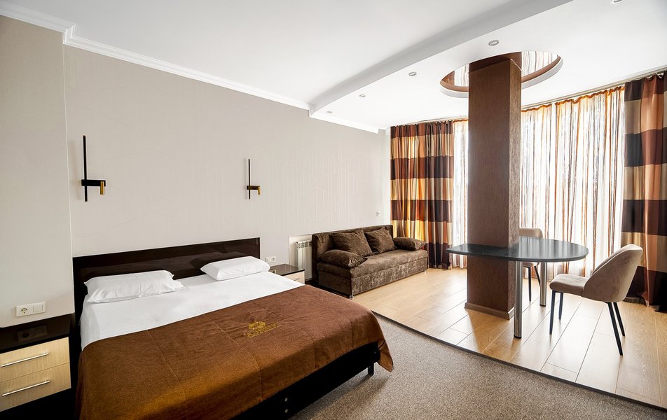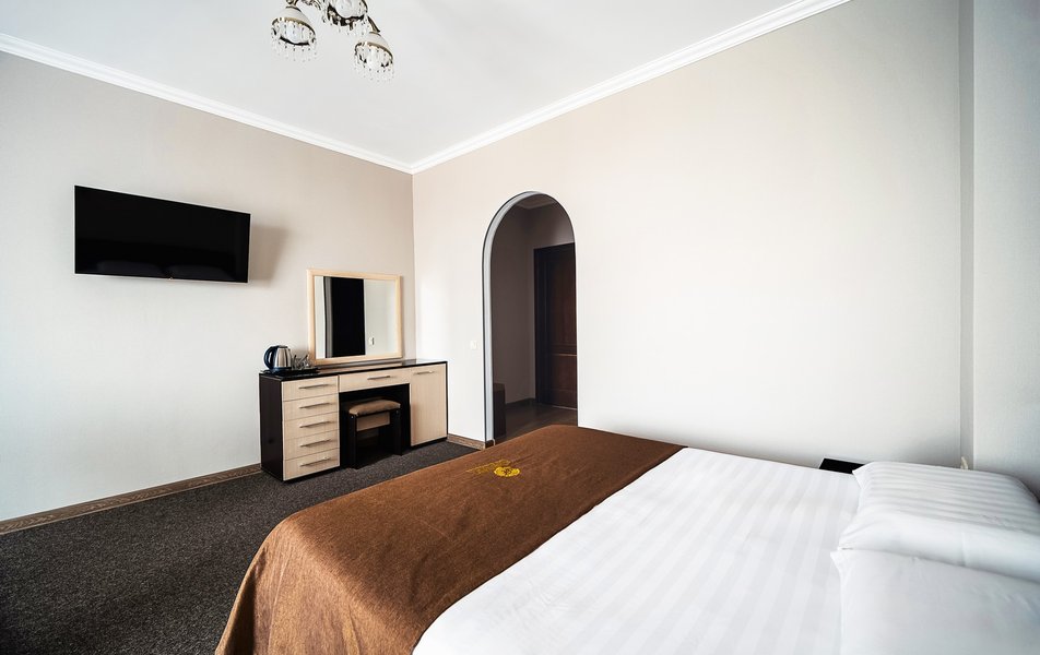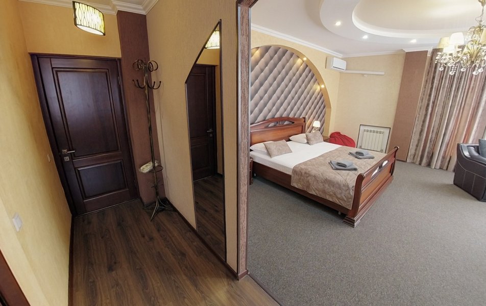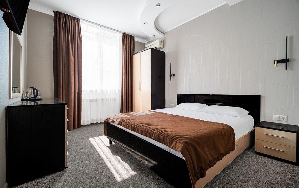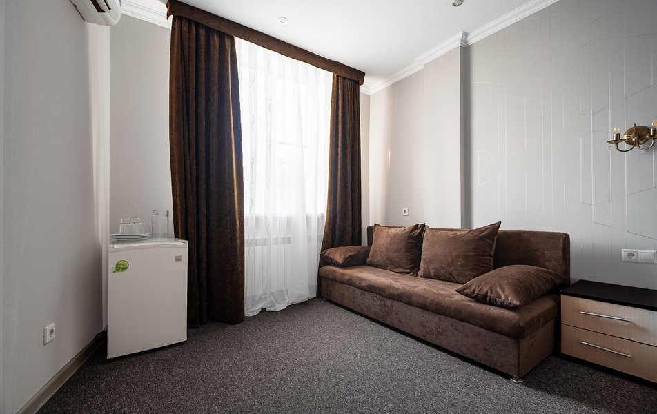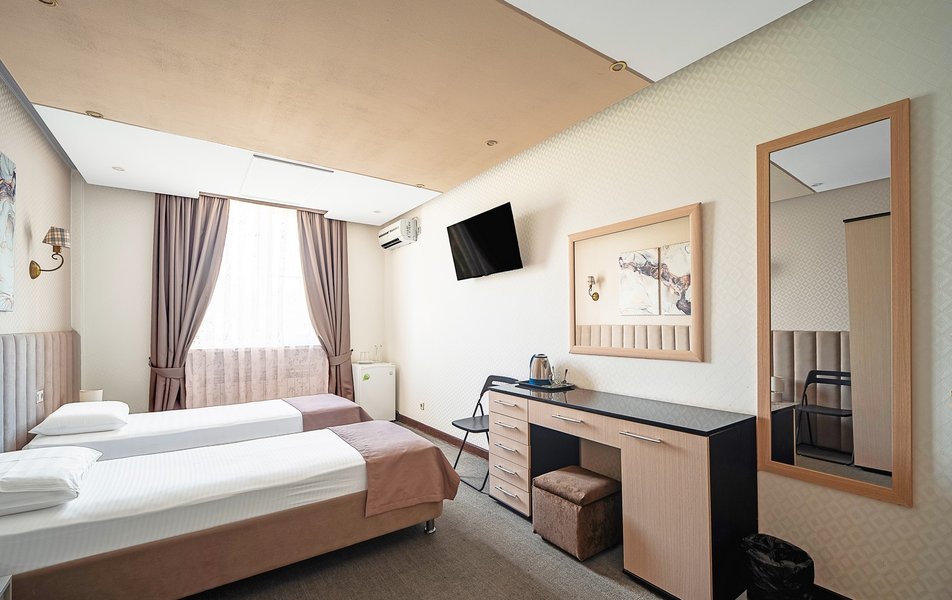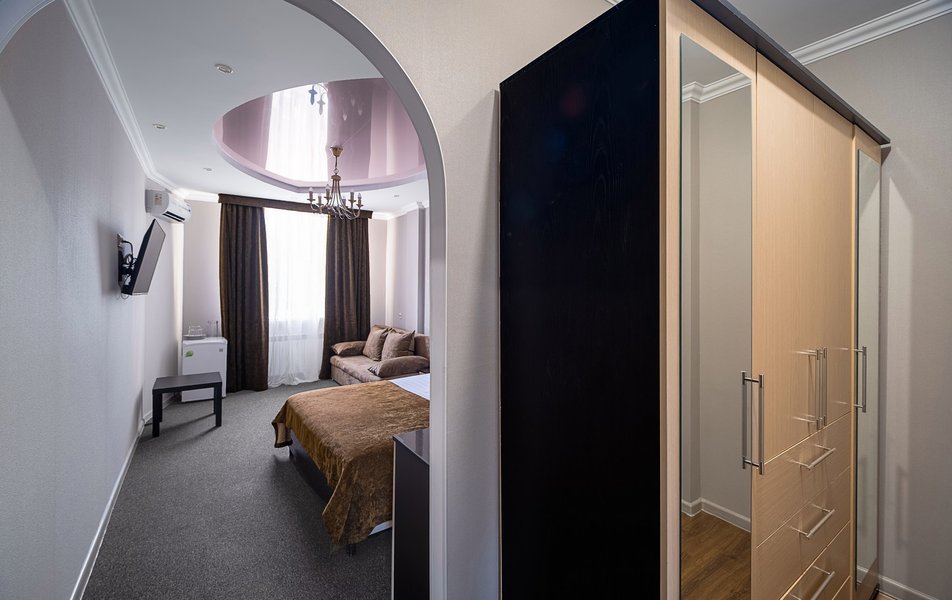 Были в отеле на одну ночь. Поздний прилет, решили передохнУть и поехать дальше. В отеле нет лифта и очень круты ступени. С чемоданами подниматься очень тяжело. Бронировали стандарт, но нам за доп.плату чтобы мы не тащились с вещами ещё на один этаж предложили люкс. Мы согласились сразу, потому как чемоданы были тяжёлыми и тащить их ещё на этаж по ступенькам было крайне тяжело. Номер просторный, кровать удобная, но вот зачем в ванной джакузи в которую залазить высоко и неудобно, не понятно. Лучше бы душевую хорошую кабину поставили. На завтрак не ходили, уехали раньше. Не рекомендую отель. К тому же в Краснодаре как оказалось две улицы Крупской и нас таксист увёз в начале не туда куда надо, пришлось возвращаться. А это все ночью и дополнительные расходы. Поблизости аэропорта Пашковский есть масса других отелей. Выбирать теперь будем только с лифтом. Потому как это главный минус для нас оказался.
