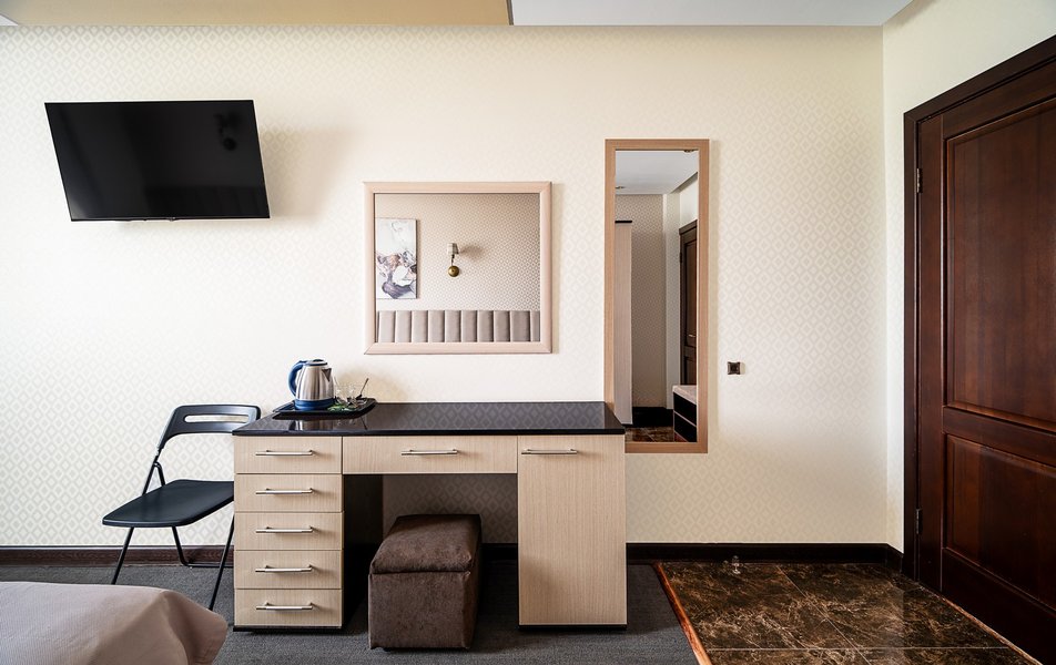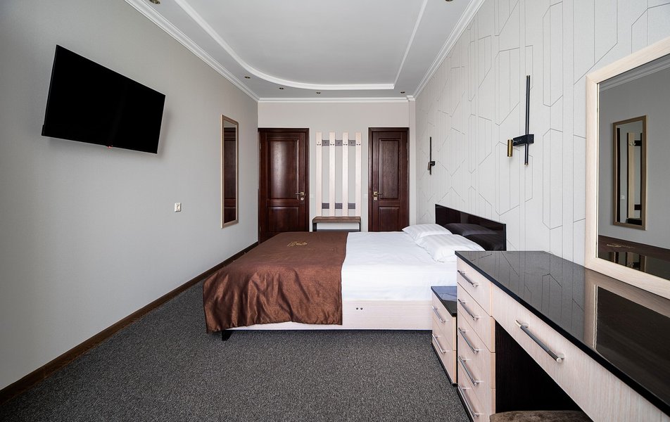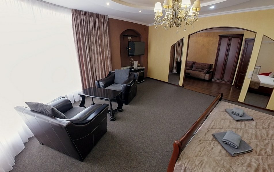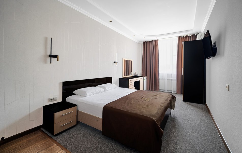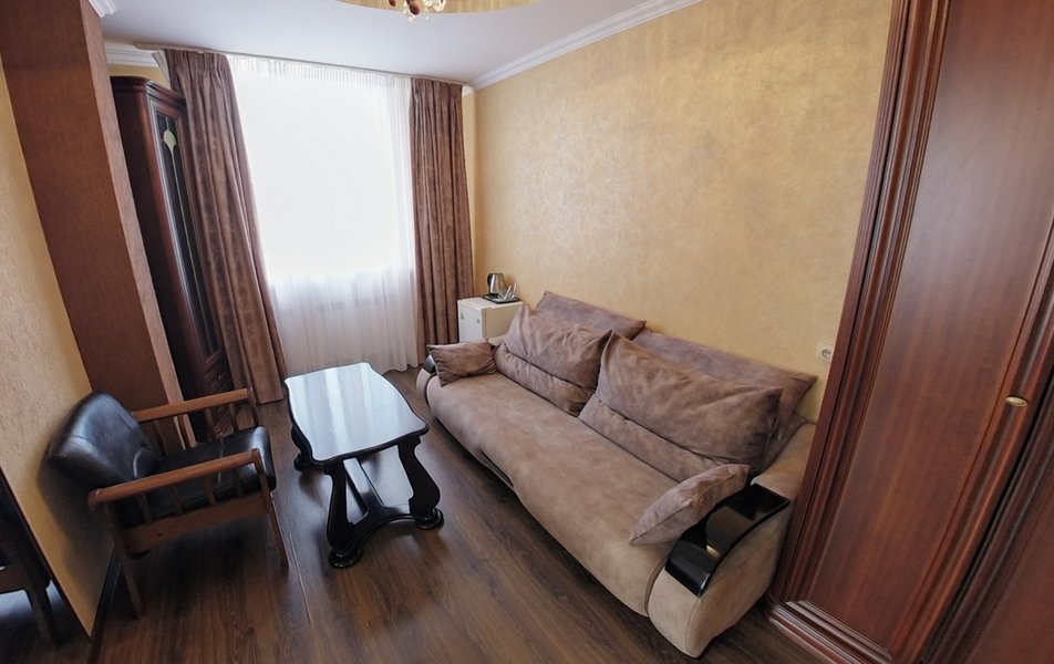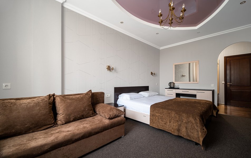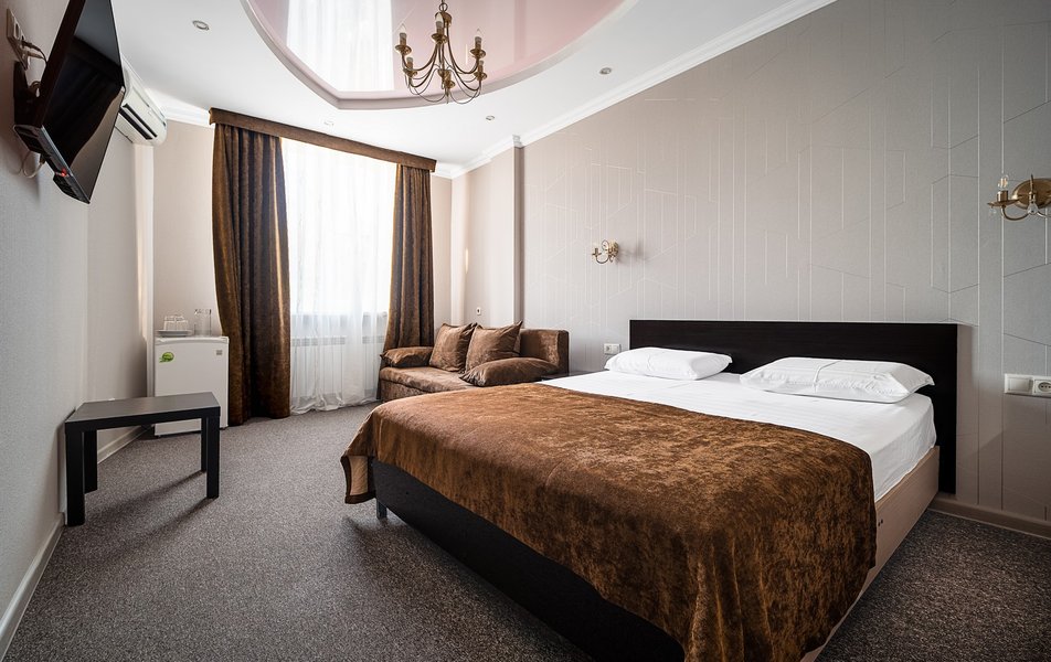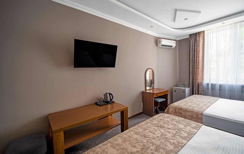 Были в отеле на одну ночь. Поздний прилет, решили передохнУть и поехать дальше. В отеле нет лифта и очень круты ступени. С чемоданами подниматься очень тяжело. Бронировали стандарт, но нам за доп.плату чтобы мы не тащились с вещами ещё на один этаж предложили люкс. Мы согласились сразу, потому как чемоданы были тяжёлыми и тащить их ещё на этаж по ступенькам было крайне тяжело. Номер просторный, кровать удобная, но вот зачем в ванной джакузи в которую залазить высоко и неудобно, не понятно. Лучше бы душевую хорошую кабину поставили. На завтрак не ходили, уехали раньше. Не рекомендую отель. К тому же в Краснодаре как оказалось две улицы Крупской и нас таксист увёз в начале не туда куда надо, пришлось возвращаться. А это все ночью и дополнительные расходы. Поблизости аэропорта Пашковский есть масса других отелей. Выбирать теперь будем только с лифтом. Потому как это главный минус для нас оказался.