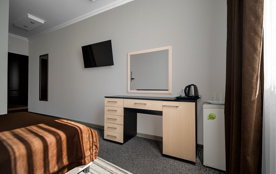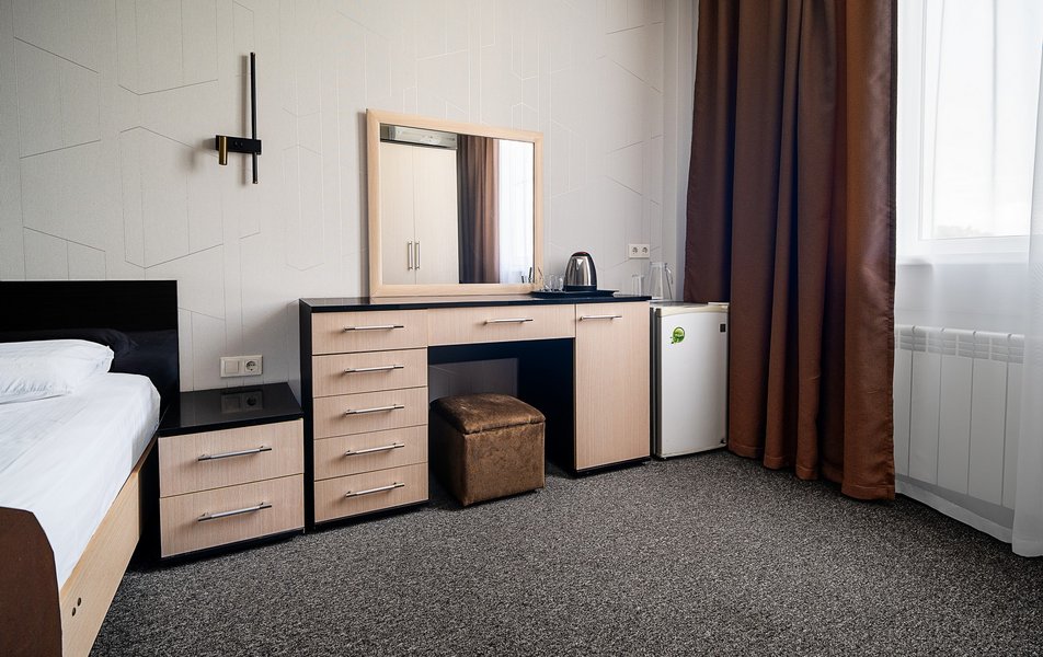 Я бы отнес его к мотелю с почасовой сдачей для определенных целей. «Чистота» номеров и подход персонала соответствующий. На 1 этаже что-то типа «рестика». Поэтому подъезжающий контингент, кавказский колорит, и атмосфера соответствующая. Но надо отдать должное - шума не было и все мирно! Бронировали экстренно в дороге (через букинг), взамен другого и тоже не удачного варианта в Кущевской. На 3х человек в наличии был только «Семейный» номер за 2500 руб./сут. (2 этаж.). Причем тут семейный номер, мы так и не поняли?!;) Обычный 3х местный номер за 2100 руб., с 3мя отдельными полноценными кроватями – на мой взгляд, более походящий и честный вариант! Местоположение. На выезде из Краснодара на М4 в сторону Горячего Ключа. Быстро съехал и быстро выехал. Но яндекс навигатор все равно потупил и покружлял по каким то закоулкам. ! По Букингу он на ул. Почтовой д2. По вывеске на отеле на ул. Крупской д2. Наличие кулера в общем коридоре, где можно набрать кипяточку для кофе, чая и т.п. Кондей присутствовал, работал, дул, душно не было. Wi-Fi был, прием уверенный. /- Наличие маленького холодильника в номере (только охлаждает), но хоть что-то. /- Наличие мебели, стола, стульев. /- Наличие парковочных мест на площадке у отеля («ресторана»). Знаков нет. Разметок нет. Покрытие плитка. Не охраняется, м.б. есть камеры. С некоторых номеров видно. Но проблем не было и слава богу. -/ наличие «кафе-ресторана» где можно с дороги оперативно перекусить, но без особого вкуса и изыска! Половины меню не было в наличии (16:00 дня). - «Семейный номер» огромный, светлый, но полноценных спальных мест на 2 человека! Стоит одна 2х спальная кровать и все! На 3го человека принесли евро раскладушку. А семьи бывают и более 3х человек! - Цена/качество/сервис - Персонал безразличный, отреченный. - ЧИСТОТА (пыль, грязь)! - непонятные запахи в номере - чистота всего номера, тапки нужны обязательно! (на полу ковролин), - чистота посуды и мебели, - Чистота полотенец (грязные, с запахом), - ВАННАЯ КОМНАТА это вообще отдельная тема: - стоит убитое джакузи! Зачем, для чего, для кого??? Душ принимать совершенно не удобно и не безопасно! Грохнуться проще простого! - нет никаких держателей и т.п., как в этом случае должны быть предусмотрены! - нет перегородки или хотя бы душевой шторки - вода льется на пол, как не изгаляйся! - смесители и лейка убитые, все в ржавчине, и что самое стремное - в ПЛЕСЕНИ! Резюме: Снаружи потенциал у отеля не плохой, но реализация явно подкачивает! Минусы с лихвой перекрывают плюсы! Поэтому только, как экстренный ночлег в дороге! Удивило, почему в букинге отзывы 8 баллов?! П.С. Прям напротив есть аналогичный «отельчик» без названия и тоже с «кафешкой» внутри. Но судя потому как там ужасно готовят - они друг друга стоят! Контингент (не гости) аналогичный.