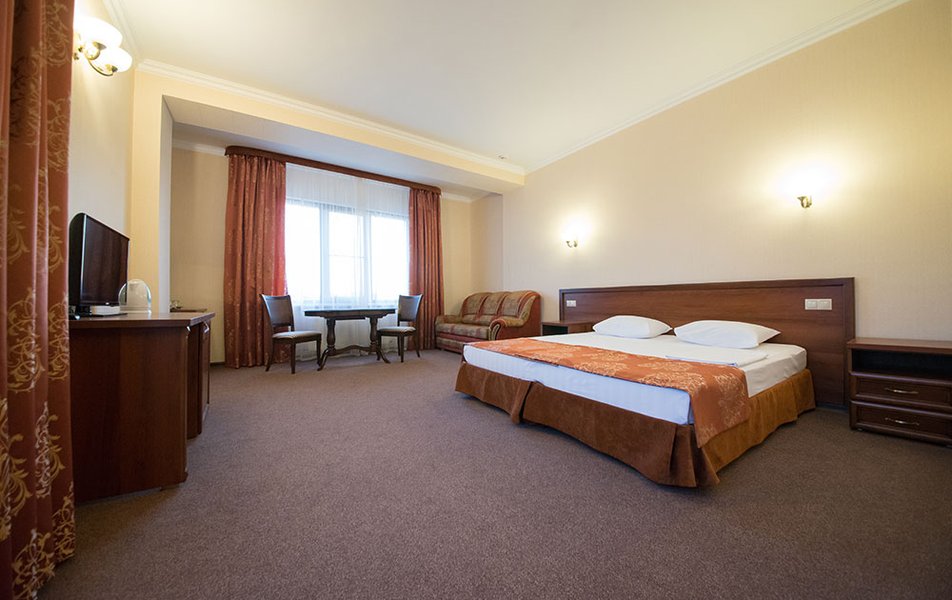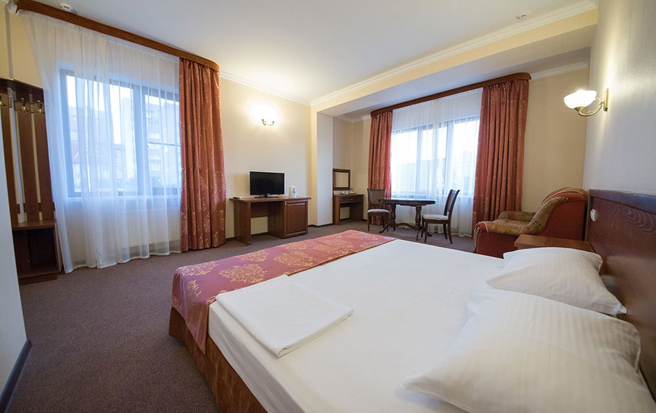 Хороший отель. Прекрасный персонал. Номера чистые (у нас было 2 номера). Халаты, тапочки, полотенца, наборы для зубной гигиены, фен. В номере есть сейф (мы не пользовались, поэтому не могу сказать платный или нет). Холодильник. Для ребенка была уже приготовлена доп. кровать. Удобные матрасы. Минеральная вода. В коридоре гладильная доска и утюг, что очень удобно. Завтраки очень вкусные и вполне разнообразные! Но, к сожалению, кофе только растворимый. Есть лифт. Парковка во дворе отеля. Удобное расположение, рядом пешеходная Красная улица.