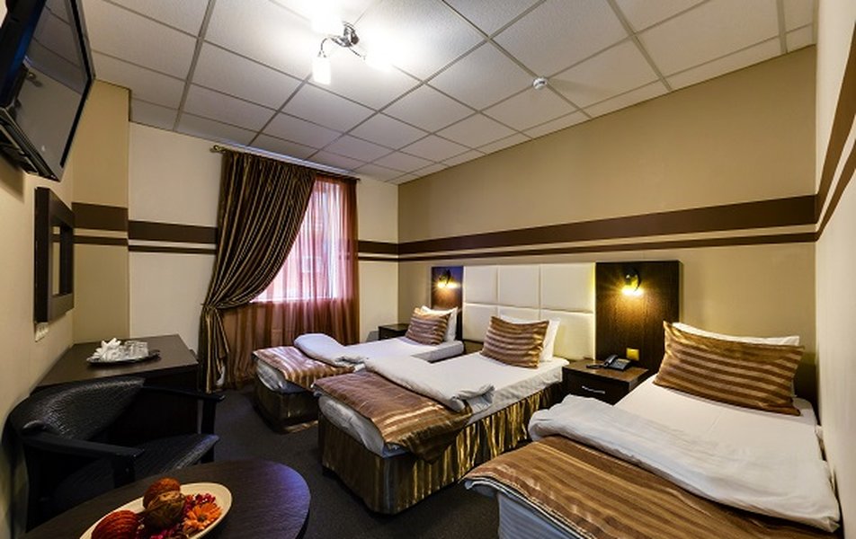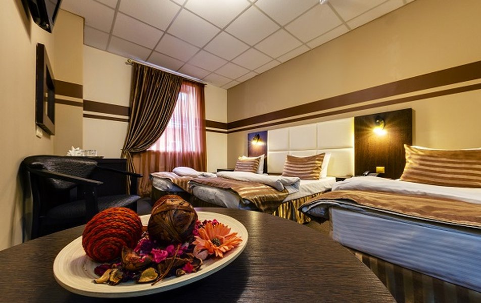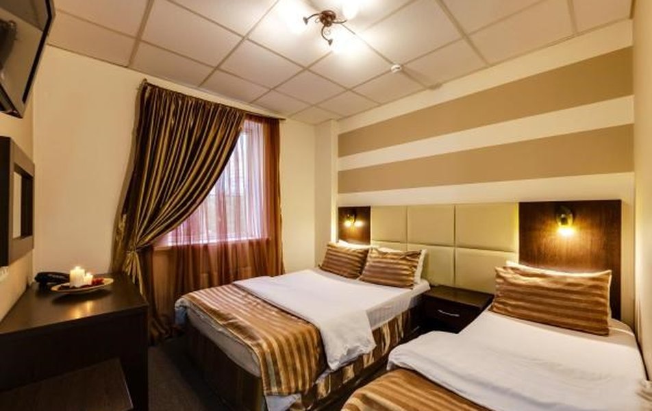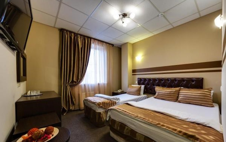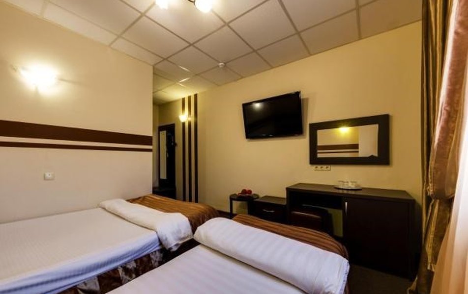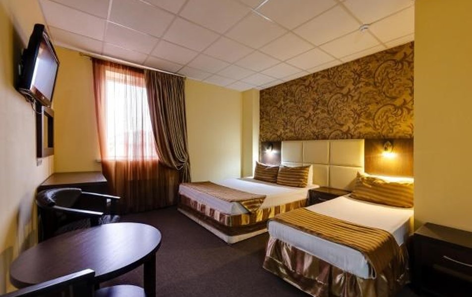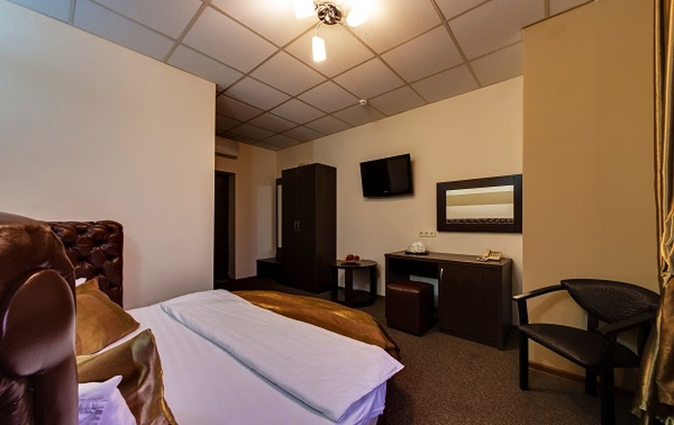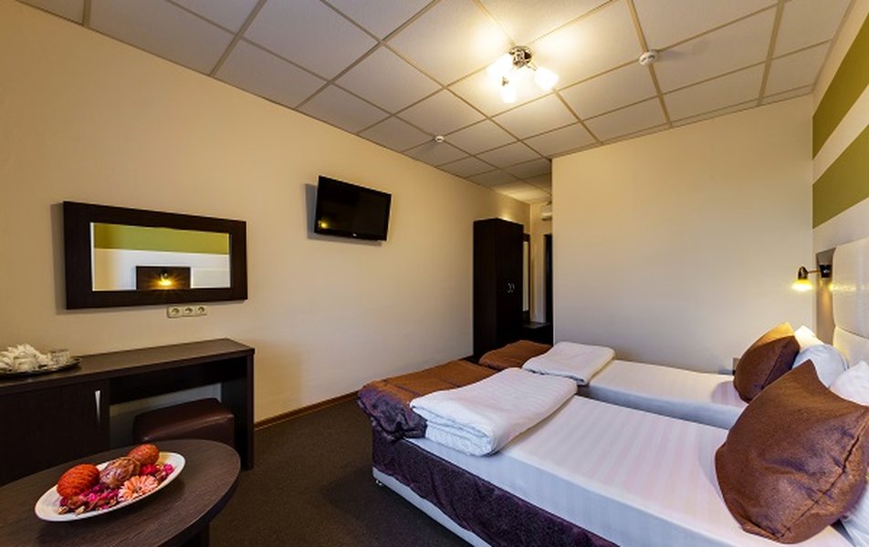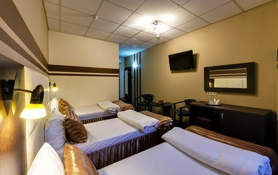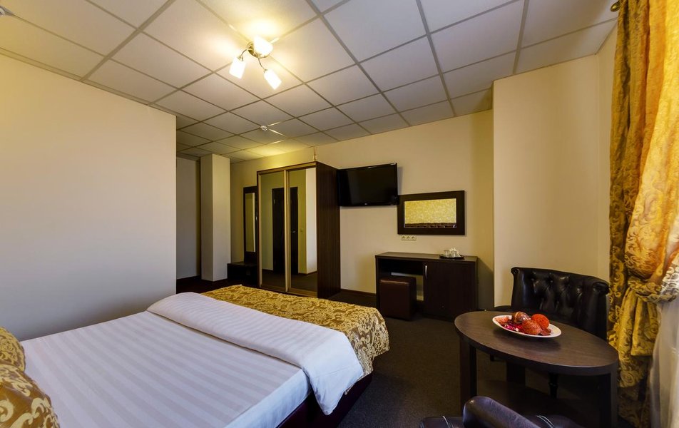Комфорт 2-местный (DBL) Количество комнат: 1-комнатный Кол-во основных мест: 2 Площадь (кв. м): 18-20 Мебель: вешалка, зеркало, кровать двуспальная/ две полутороспальные кровати, прикроватные тумбочки, стол, стулья, шкаф Оборудование: мини-холодильник, сплит-система, телевизор, телефон, чайный набор посуды, электрочайник Санузел: с душевой кабиной, тапочки, туалетные принадлежности, фен Сервис: Wi-Fi бесплатно, смена полотенец, смена постельного белья, уборка номера, услуги местной телефонной связи