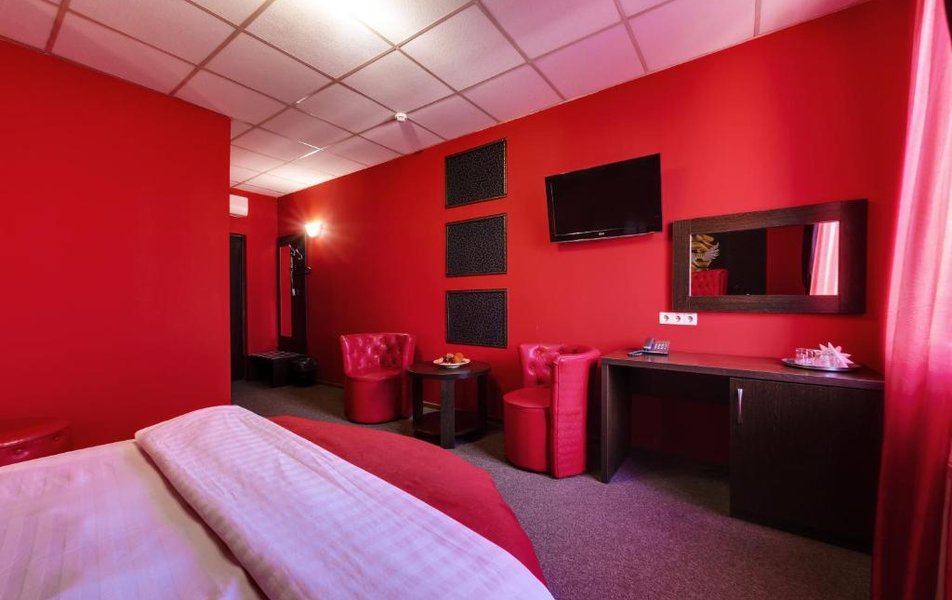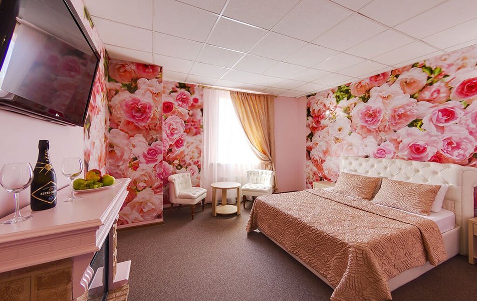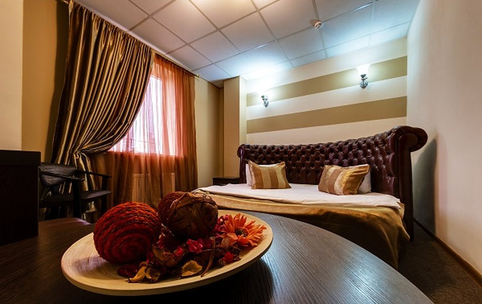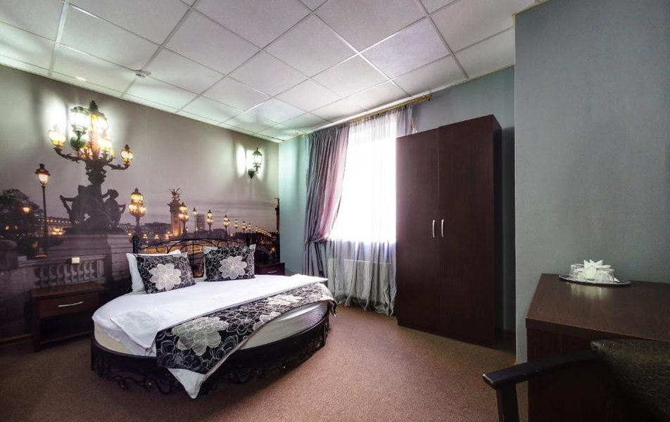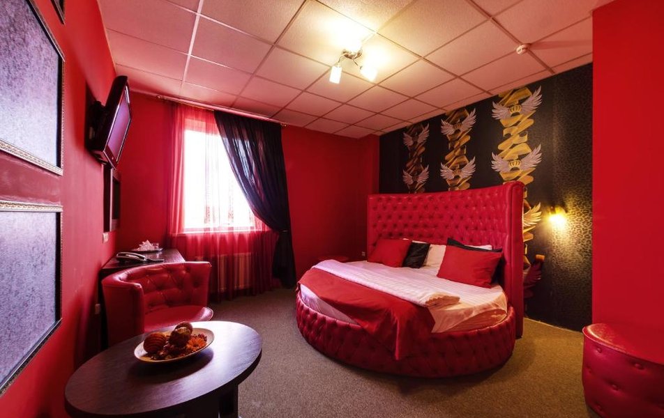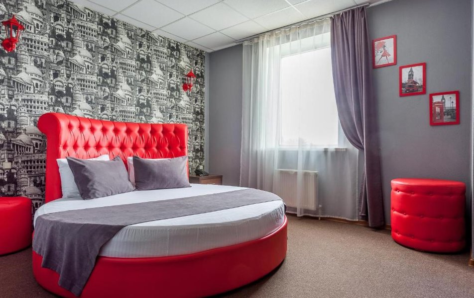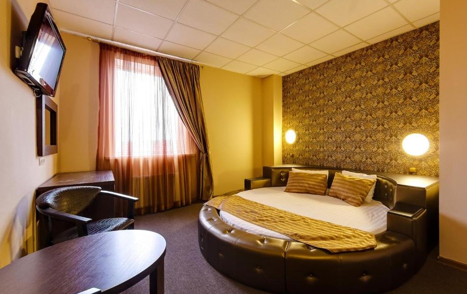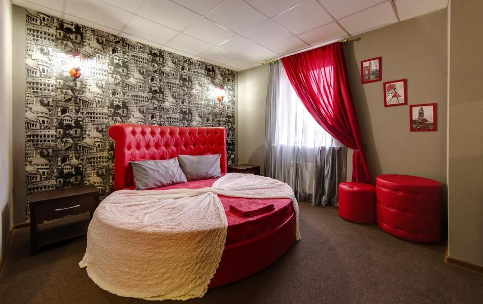 Комфорт 2-местный (круглая кровать) Количество комнат: 1-комнатный Кол-во основных мест: 2 Площадь (кв. м): 20 Мебель: вешалка, зеркало, кровать двуспальная, прикроватные тумбочки, стол, столик журнальный, стулья, шкаф Оборудование: мини-холодильник, сплит-система, телевизор, телефон, чайный набор посуды, электрочайник Санузел: с душевой кабиной, тапочки, туалетные принадлежности, фен Сервис: Wi-Fi бесплатно, смена полотенец, смена постельного белья, уборка номера, услуги местной телефонной связи