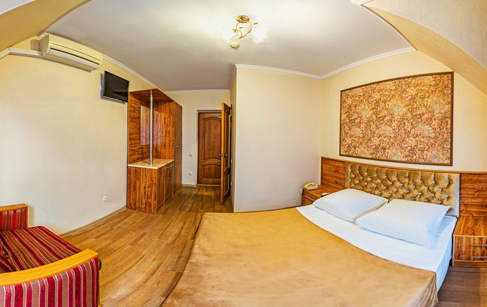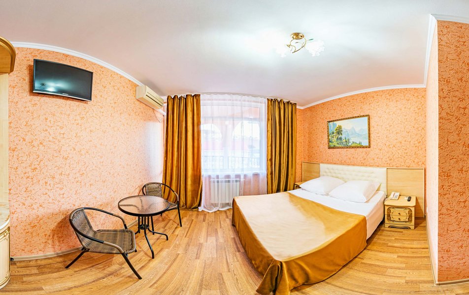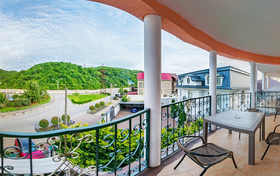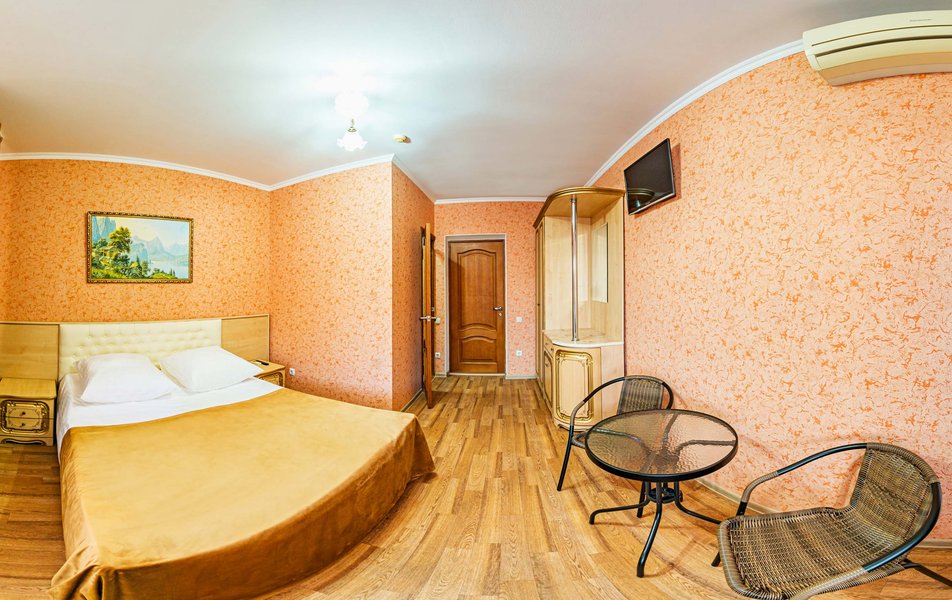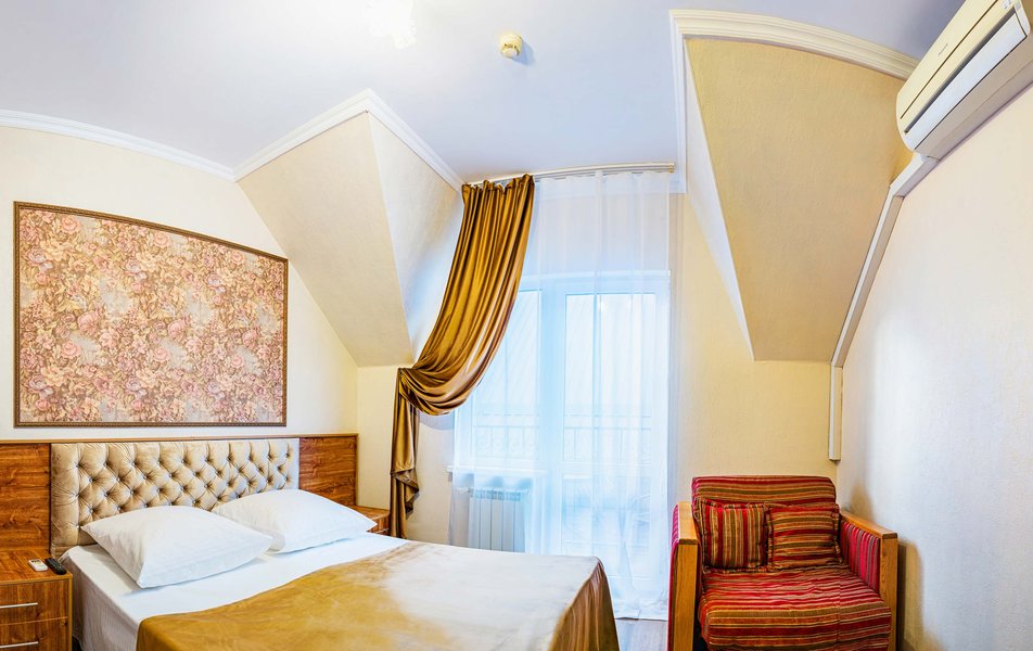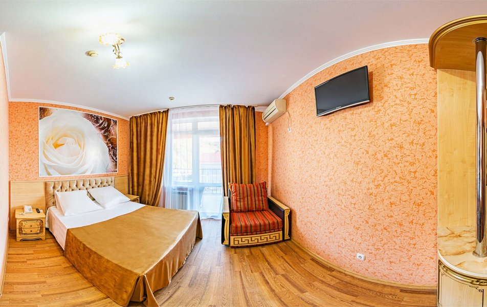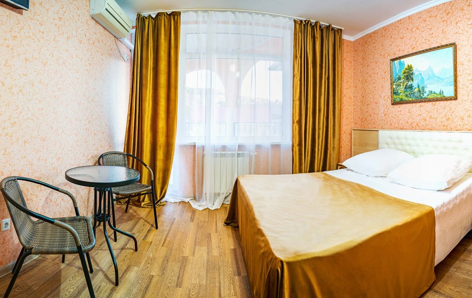 Комфорт 3-местный 1-комнатный (с балконом, горы и набережная) Количество комнат: 1-комнатный Тип номера: Комфорт Кол-во доп. мест: 1 Кол-во номеров: 6 Кол-во основных мест: 2 Площадь (кв. м): 18 Балкон: с мебелью и сушилкой Мебель: вешалка, зеркало, кресло-кровать, кровать двуспальная, прикроватные тумбочки, стол, стулья, шкаф Оборудование: мини-холодильник, сейф, сплит-система, телевизор Санузел: с душем, туалетные принадлежности, фен Сервис: Wi-Fi бесплатно, room-сервис, смена полотенец, смена постельного белья, уборка номера