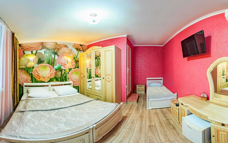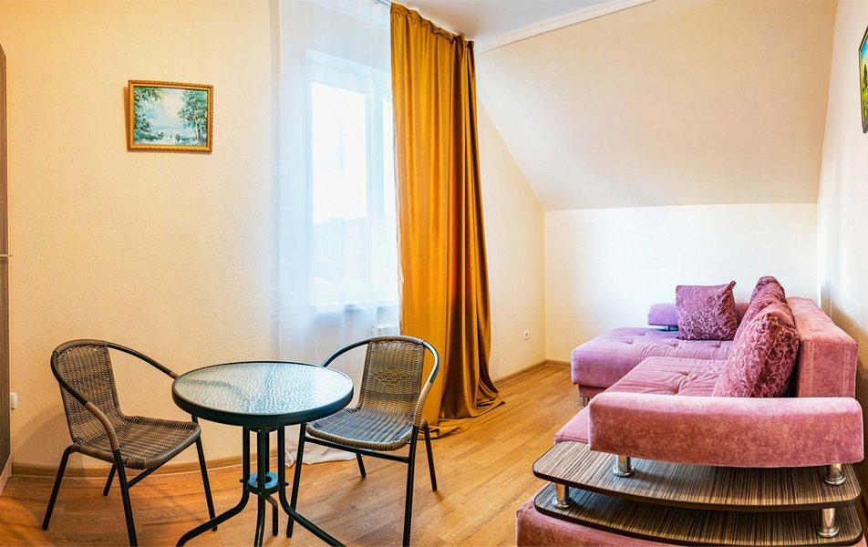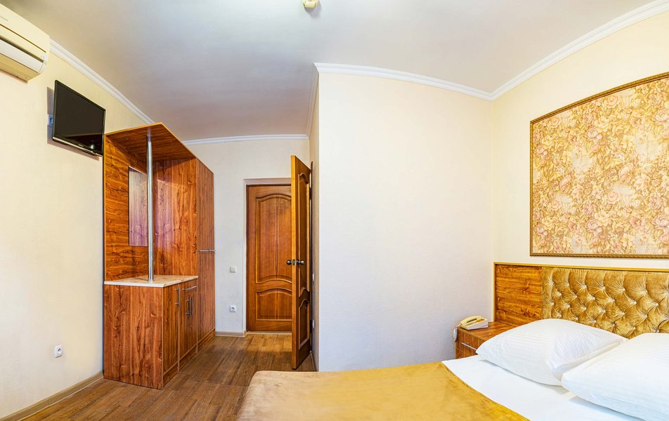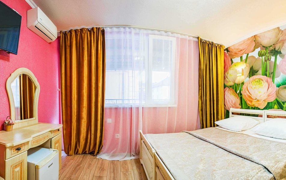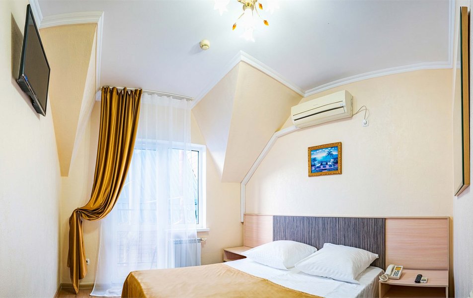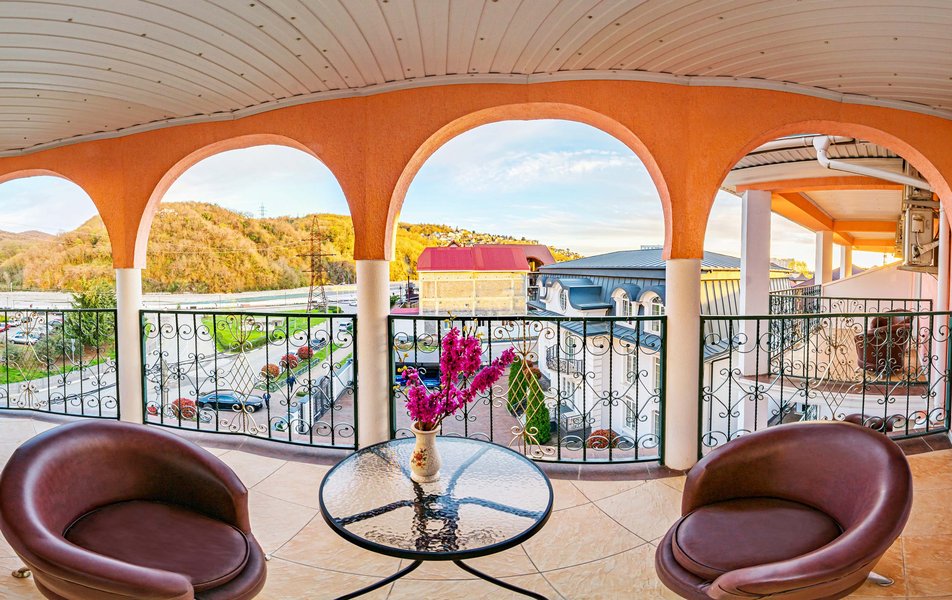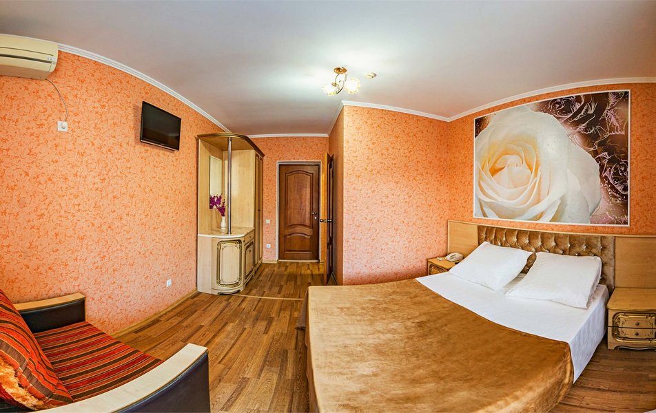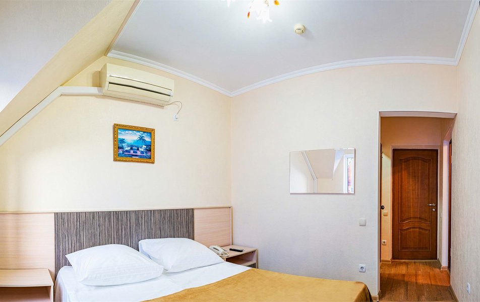 Комфорт 3-местный 1-комнатный (с балконом, горы и набережная) Количество комнат: 1-комнатный Тип номера: Комфорт Кол-во доп. мест: 1 Кол-во номеров: 6 Кол-во основных мест: 2 Площадь (кв. м): 18 Балкон: с мебелью и сушилкой Мебель: вешалка, зеркало, кресло-кровать, кровать двуспальная, прикроватные тумбочки, стол, стулья, шкаф Оборудование: мини-холодильник, сейф, сплит-система, телевизор Санузел: с душем, туалетные принадлежности, фен Сервис: Wi-Fi бесплатно, room-сервис, смена полотенец, смена постельного белья, уборка номера