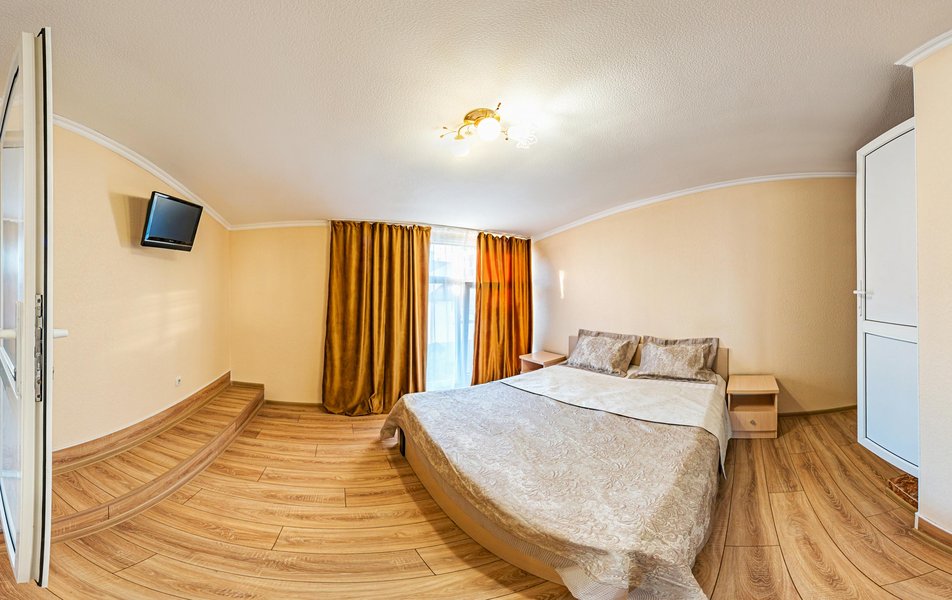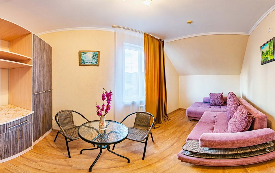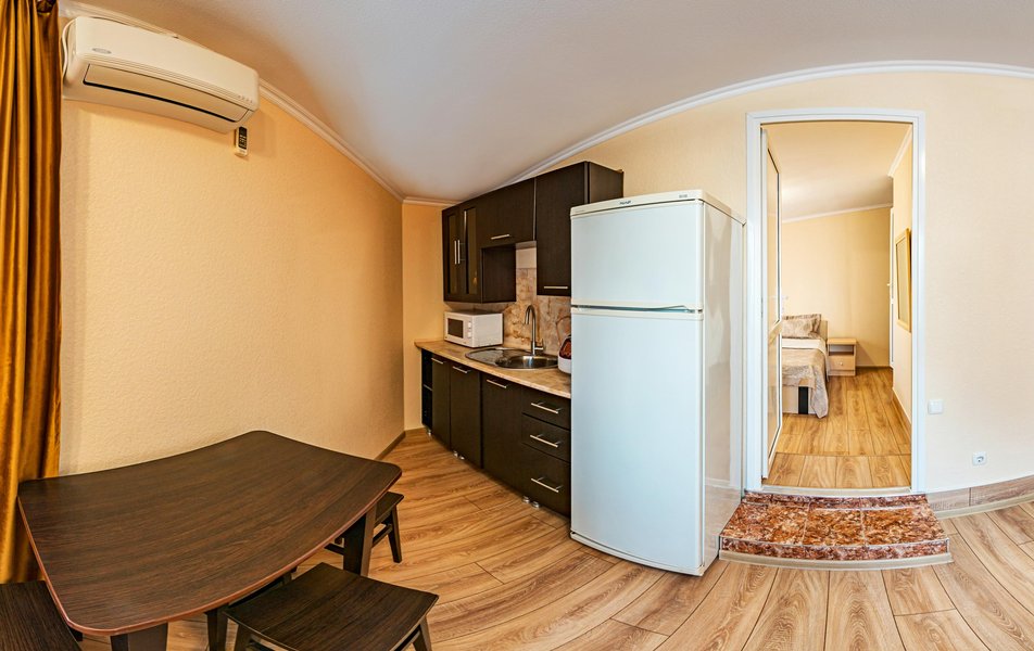 Апартаменты 5-местный 2-комнатный (с верандой) Количество комнат: 2-комнатный Тип номера: Апартаменты Кол-во доп. мест: 1 Кол-во номеров: 1 Кол-во основных мест: 4 Площадь (кв. м): 40 Мебель: вешалка, диван, зеркало, кресло-кровать, кровать двуспальная, прикроватные тумбочки, стол, стулья, шкаф Оборудование: микроволновая печь, набор посуды, сейф, сплит-система, телевизор, холодильник, электрочайник Санузел: с душем, туалетные принадлежности, фен Сервис: Wi-Fi бесплатно, room-сервис, смена полотенец, смена постельного белья, уборка номера