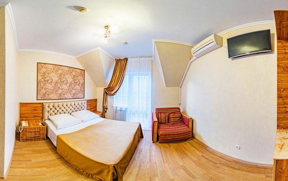 Комфорт 3-местный 1-комнатный (с балконом) Количество комнат: 1-комнатный Тип номера: Комфорт Кол-во доп. мест: 1 Кол-во номеров: 9 Кол-во основных мест: 2 Площадь (кв. м): 18 Балкон: с мебелью и сушилкой Мебель: вешалка, зеркало, кресло-кровать, кровать двуспальная, прикроватные тумбочки, стол, стулья, шкаф Оборудование: мини-холодильник, сейф, сплит-система, телевизор Санузел: с душем, туалетные принадлежности, фен Сервис: Wi-Fi бесплатно, room-сервис, смена полотенец, смена постельного белья, уборка номера