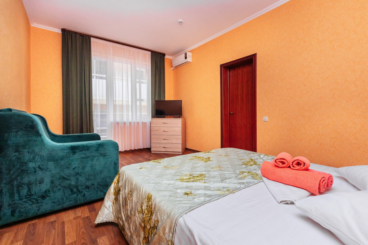 Здравствуйте, отдохнули хорошо, в целом нам все понравилось! Из плюсов могу выделить: 1. Вкусный и разнообразный шведский стол, он был небольшой, но еда прям хорошая вся, очень много фруктов, были и персики и арбуз всегда, иногда была дыня. По снек бару могу сказать, что он был маленький, но все равно приятно,что пиво не пришлось покупать на пляже, единственное, вино было отвратительное, мы его не пили, но так в большинстве отелей всегда было 2. Персонал очень приятный, нас и заселили в 10 как только мы приехали и я заболела в последний день, нам разрешили остаться еще на 2 часа, за это прям плюс огромный 3. отель сам по себе чистый , достаточно ухоженный 4. до моря очень близко, трансфера никакого не было, но я даже не знаю зачем он там должен быть, если отель прям в 3 минутах от моря. Не знаю мы с мамой отдельно читали отзывы и как будто там должен был быть бассейн, но его не было, уже там прочитала , что и не должно было быть и как будто отель находиться на возвышенности и до моря идти неудобно, но вообще никаких возвышенностей там не было, просто по прямой 3 минуты 5. Никак не мешало то, что поезда под окнами ездят, честно говоря в Курске сейчас громче , спали прекрасно Из минусов могу выделить только уборку и нет полотенец для пляжа и лежаков, но тут уже для России это мало, где встречается Она была всегда в 9 , хотя завтрак с 8-10, мы вставали в 9, потому что они к нам уже стучали, в моем понимании персонал никак не должен трогать гостей во время отдыха и всегда убираются после завтрака, когда все разошлись, полотенца меняли только когда я просила их лично и кровать не заправляли сами. Честно с ребенком я бы туда не поехала, площадка маленькая , анимация очень слабая, но детей было прям много, некоторые как я поняла не первый год именно туда ездят. Честно сказать, что многие писали , что это маленькая турция и были в отелях разной звездности это бред. Я бы сказала так, что для России уровень прям хороший, нам понравилось, если сравнивать конечно с Турцией прям сильно слабее В целом очень здорово отдохнули, спасибо )