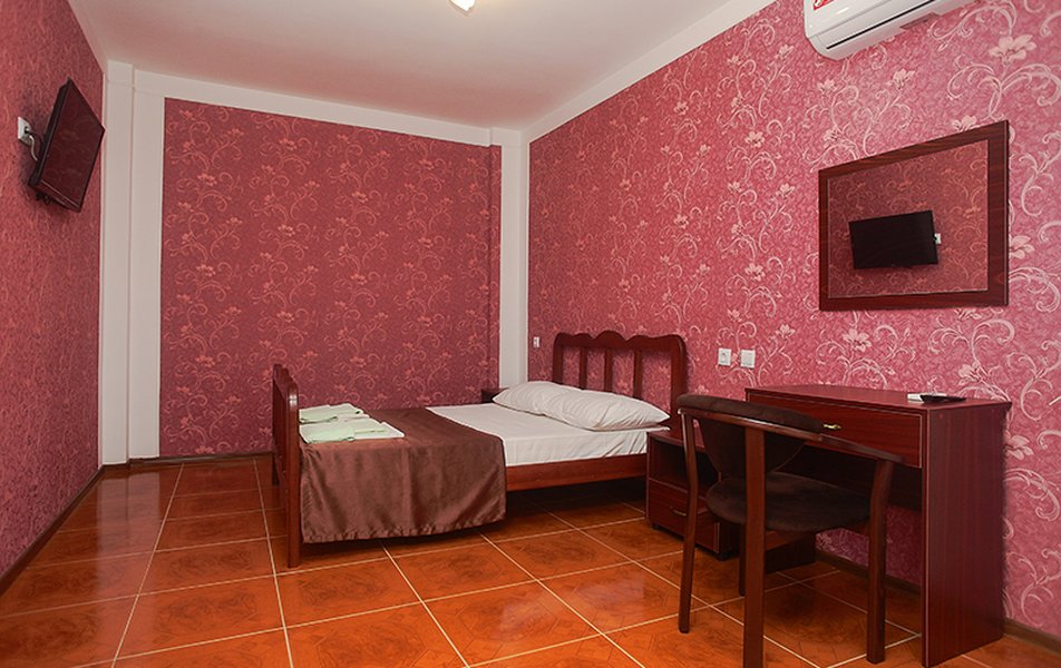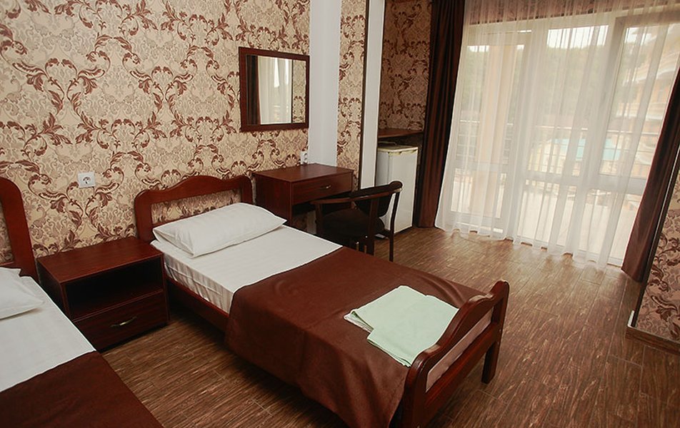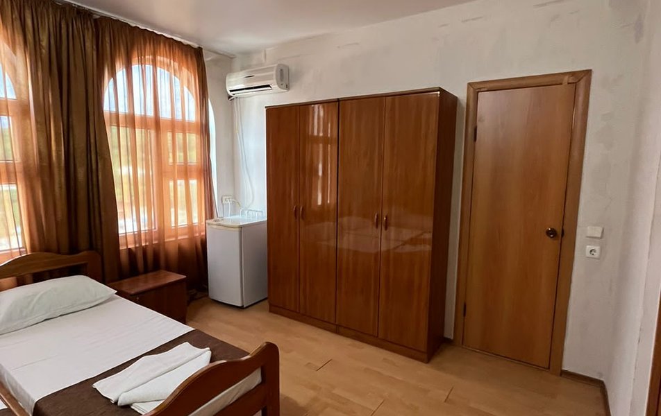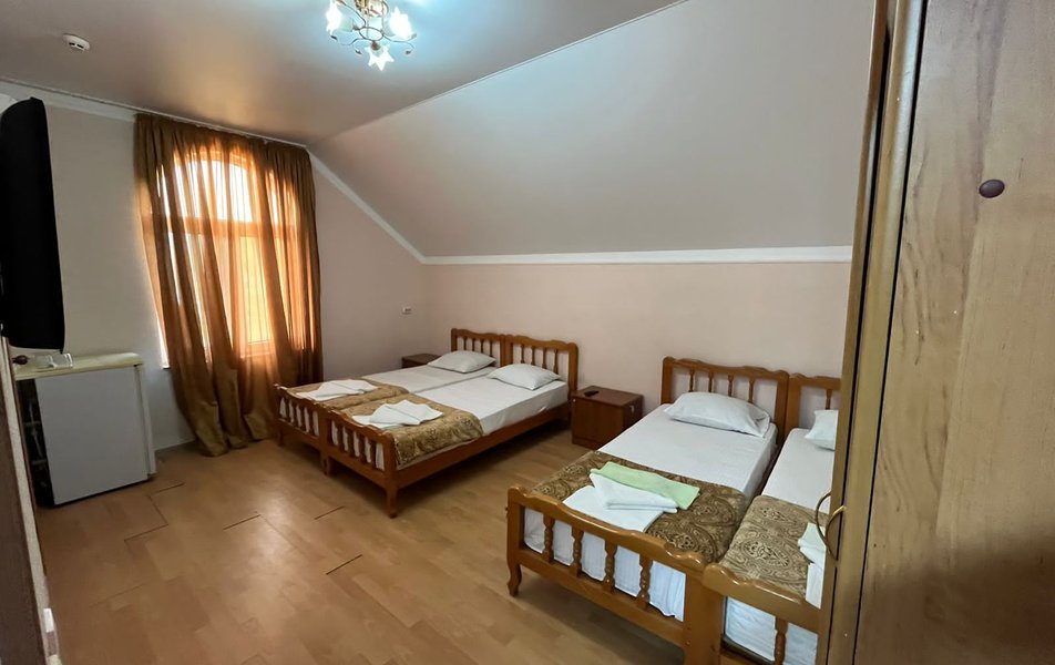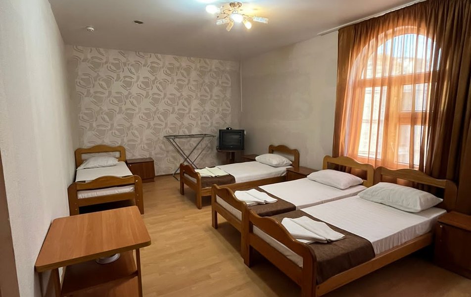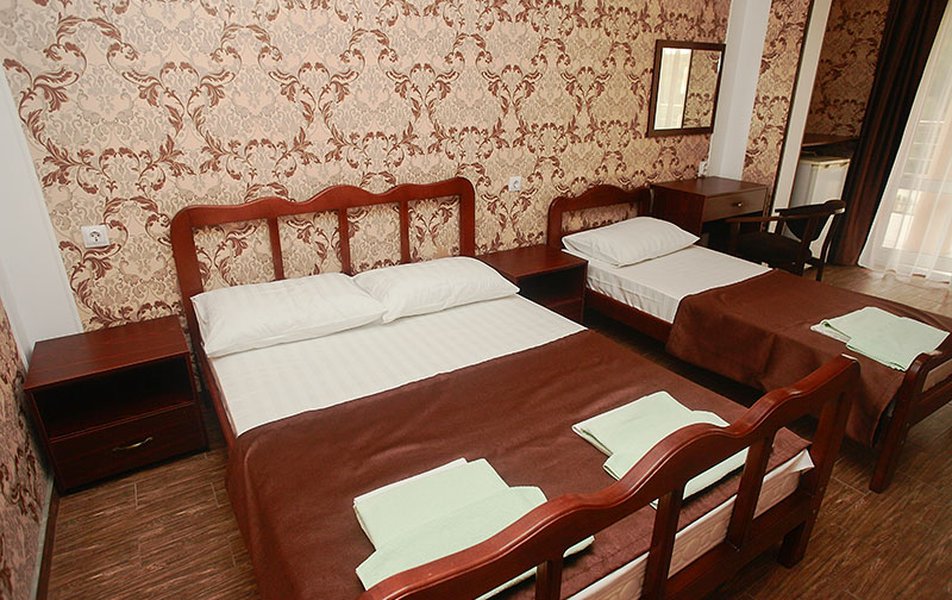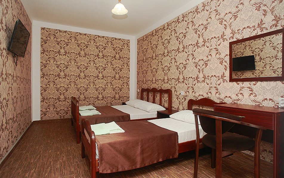Стандартный 4-местный Количество комнат: 1-комнатный Тип номера: Стандартный Кол-во основных мест: 4 Мебель: вешалка, зеркало, кровати односпальные: 4, прикроватные тумбочки, стол, шкаф Оборудование: кондиционер, телевизор, холодильник Санузел: с душем, туалетные принадлежности Сервис: Wi-Fi бесплатно, смена полотенец, смена постельного белья, уборка номера Терраса: оборудована мебелью