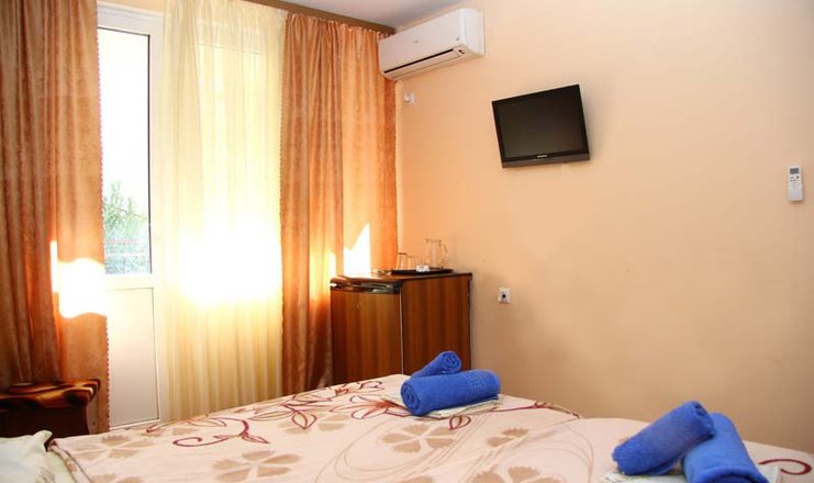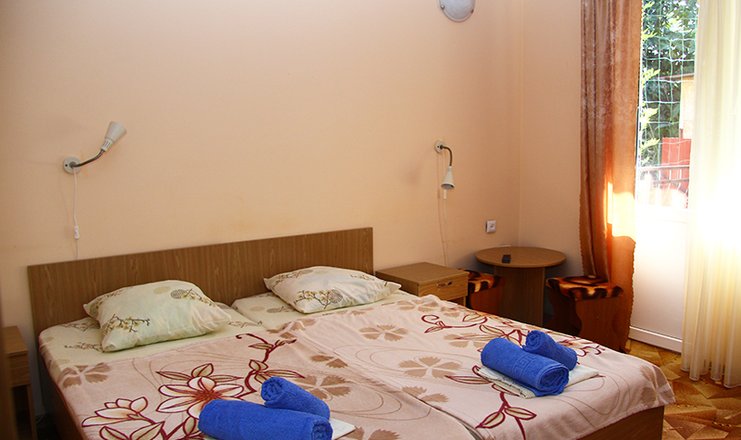 Приехали рано утром и нас тут же заселили, а уезжали поздно вечером и нам продлили это время довольно таки не дорого, также предложили оплатить при желании обед и ужин, цена питания как в хорошем кафе. Но кухня домашняя без изысков и ценник немного завышен. Еда была комплексной,порции нормальные,разнообразные. Вот только отдых подразумевает иногда отсутствовать либо на обеде, либо на ужине,кухню нужно предупредить об отсутствии, так мы отсутствовали пару раз на обеде и ужине, но вот в день отъезда пришлось оплачивать и обед, и ужин, как то не очень приятно. В номере 3 кровати, тумбочки прикроватные, шкаф, трюмо, холодильник, кондиционер, чайник, телевизор.На балконе стол, кресла и диванчик, хорошо посидеть с чашкой чая и полюбоваться видами. А вид с балкона на горы и на море. .Мы были там неделю, за это время нам поменяли постель один раз и 3 раз полотенца. Уборка номера очень интересная, вынесли мусор - значит убрались. Не так уж сложно пропылесосить(на полу ковровое покрытие) и помыть сан.комнату хотя бы через день. Администрация внимательная к отдыхающим, можно взять нитки и иголку и починить одежду, можно взять прищепки, что б вещички не улетали с сушилки. .До моря не далеко, но подъем с пляжа в гору крутоват, фитнес нагрузочка была хорошая. Рядом магазины.Магнит, Красно-Белое, Пятерочка , рынок и палатки со шмоточками, как для пляжа, так и для выхода погулять, фрукты-овощи, восточные сладости. Кто любит отдыхать номер,пляж,море,номер, то это для вас. Развлечений в поселке никаких от слова СОВСЕМ. За развлечениями в Лазаревское или в Сочи.