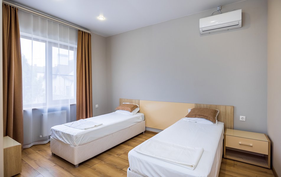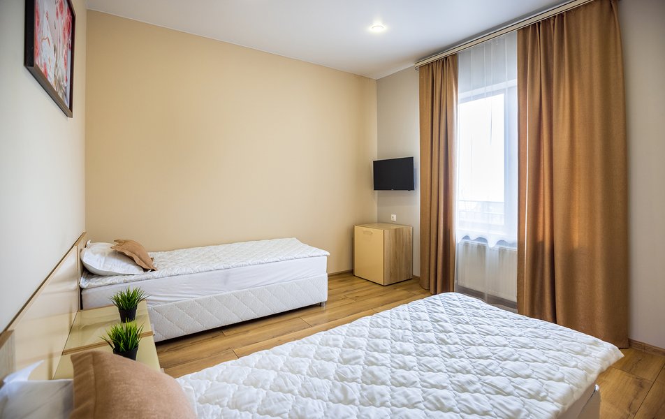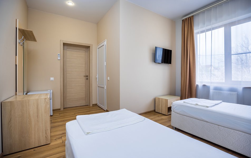 Стандартный 2-местный 1-комнатный Количество комнат: 1-комнатный Тип номера: Стандартный Кол-во основных мест: 2 Площадь (кв. м): 16 Мебель: вешалка, зеркало, кровати односпальные, прикроватные тумбочки, стол, стул, шкаф Оборудование: кондиционер, мини-холодильник, набор посуды, телевизор Санузел: с душем, туалетные принадлежности Сервис: Wi-Fi бесплатно, смена полотенец, смена постельного белья, уборка номера