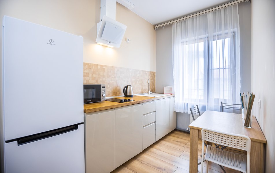 Полулюкс 4-местный 2-комнатный (с кухней) Количество комнат: 2-комнатный Тип номера: Полулюкс Кол-во основных мест: 4 Площадь (кв. м): 40 Мебель: вешалка, диван раскладной, зеркало, кровати односпальные, кухонная мебель, прикроватные тумбочки, стол: обеденный, стулья, шкаф Оборудование: кондиционер, микроволновая печь, набор посуды, плита электрическая, телевизор, холодильник, электрочайник Санузел: с душем, туалетные принадлежности Сервис: Wi-Fi бесплатно, смена полотенец, смена постельного белья, уборка номера