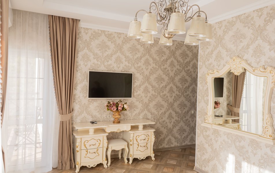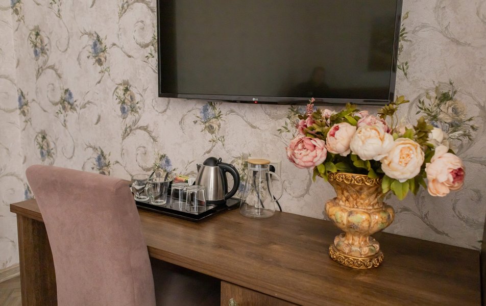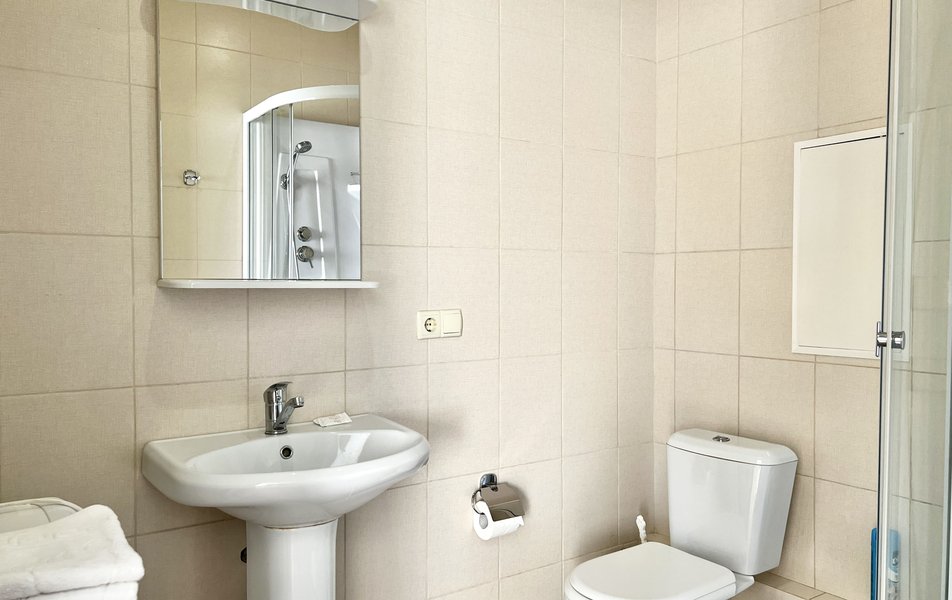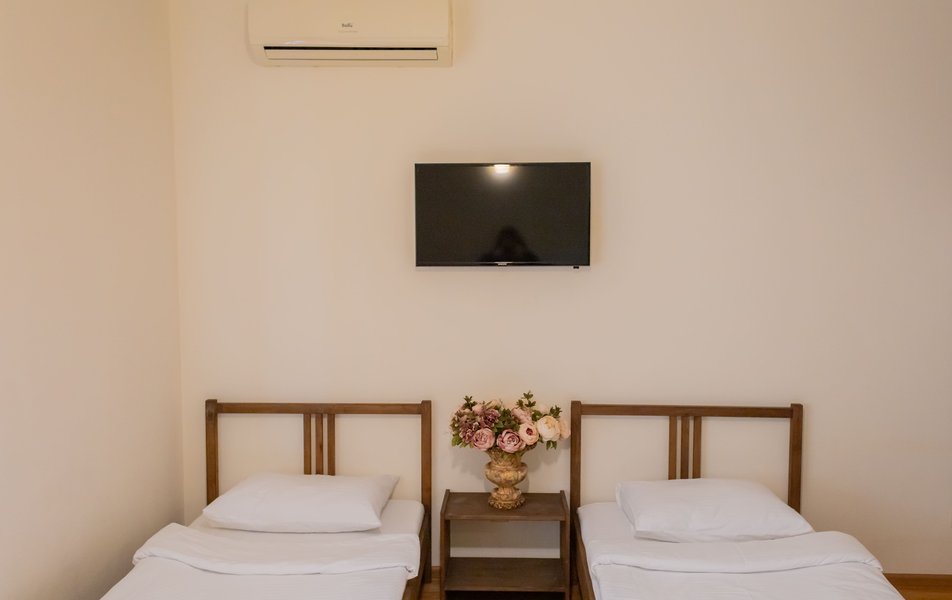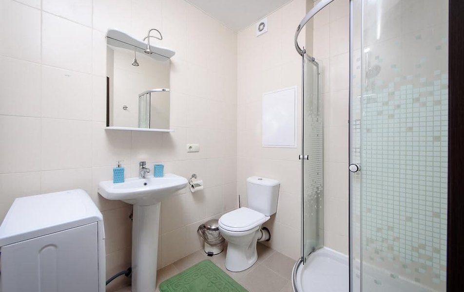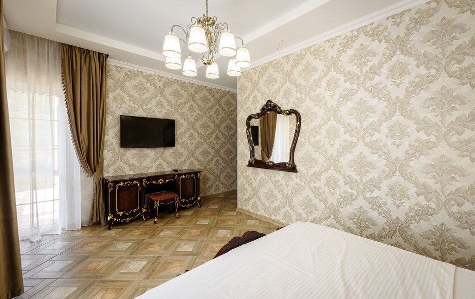 Полулюкс 2-местный (с кухней и балконом, вид на двор, 1 этаж) Количество комнат: 1-комнатный Тип номера: Полулюкс Вид из номера: на двор Кол-во основных мест: 2 Площадь (кв. м): 35 Этаж: 1 Мебель: вешалка, зеркало, кровать двуспальная, прикроватные тумбочки, стол, стулья, шкаф Оборудование: кондиционер, набор посуды, стиральная машина, телевизор ЖК, холодильник, электрочайник Санузел: с душем, тапочки, туалетные принадлежности, фен Сервис: Wi-Fi бесплатно, мини-бар, смена полотенец, смена постельного белья, уборка номера
