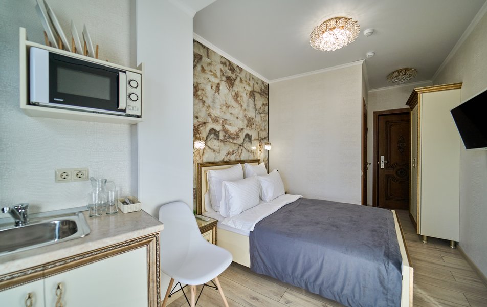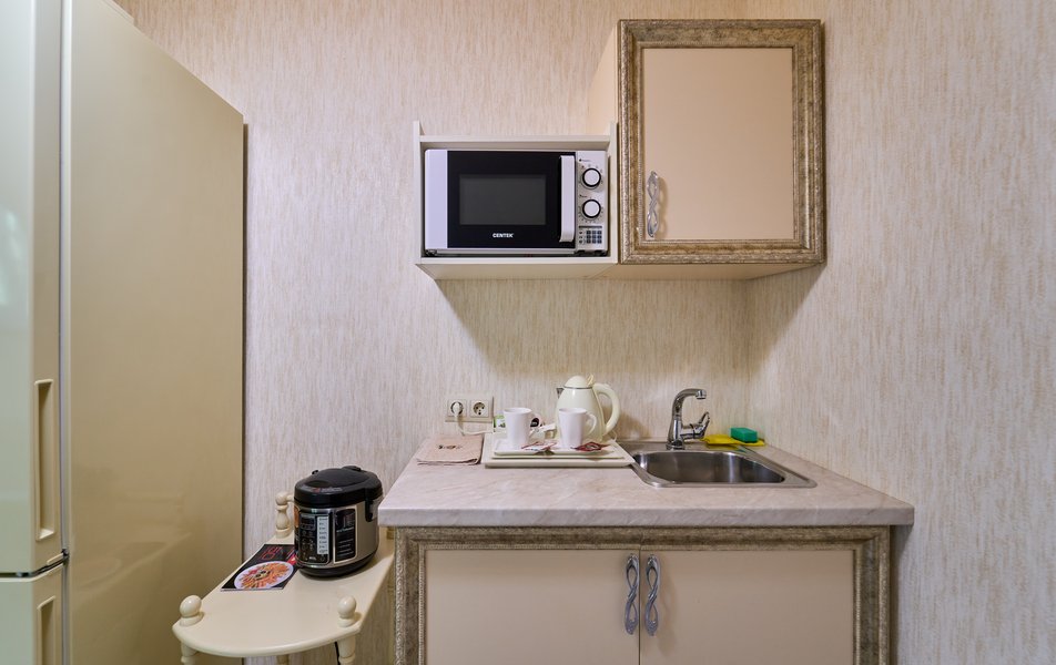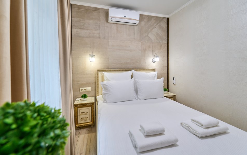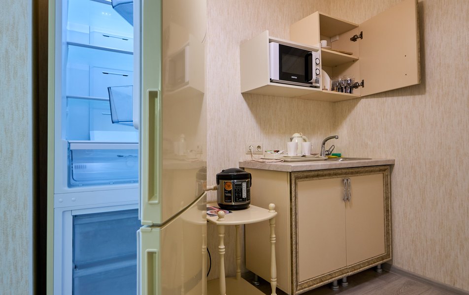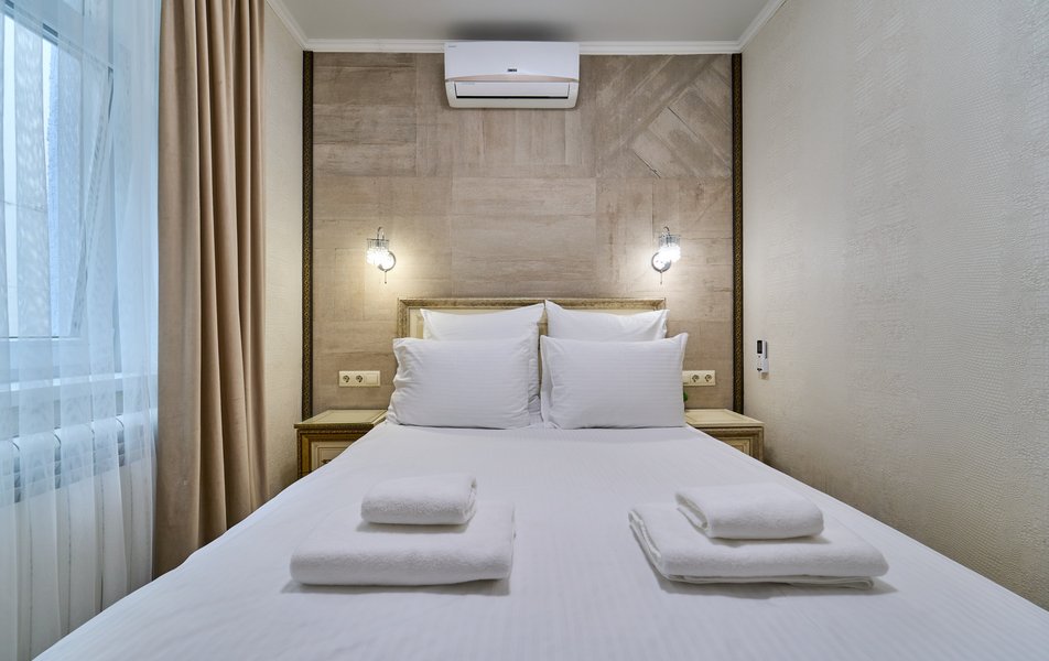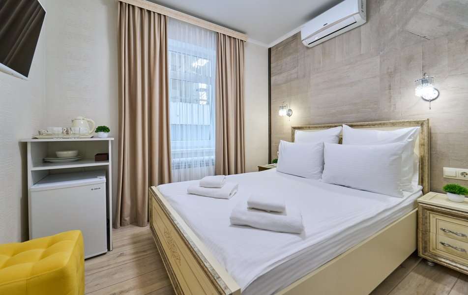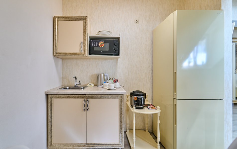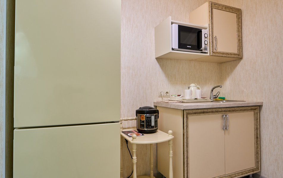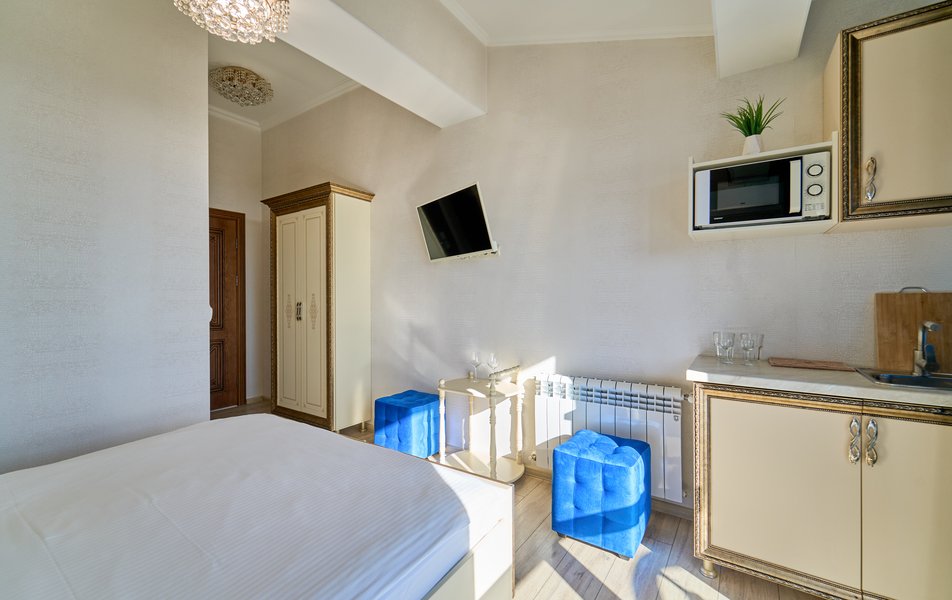 Апартаменты Комфорт 4-местный Количество комнат: 1-комнатный Тип номера: Апартаменты Вид из номера: на двор: и на стену Кол-во номеров: 3 Кол-во основных мест: 4 Площадь (кв. м): 29 Мебель: диван, кровать двуспальная, прикроватные тумбочки, стол, шкаф Оборудование: микроволновая печь, набор посуды, сейф, телевизор ЖК, холодильник, чайник, чайный набор посуды Санузел: с душем, туалетные принадлежности, фен Сервис: Wi-Fi бесплатно, room-сервис: 24 часа, смена полотенец: ежедневно, смена постельного белья: 1 раз в 3 дня, уборка номера: ежедневно