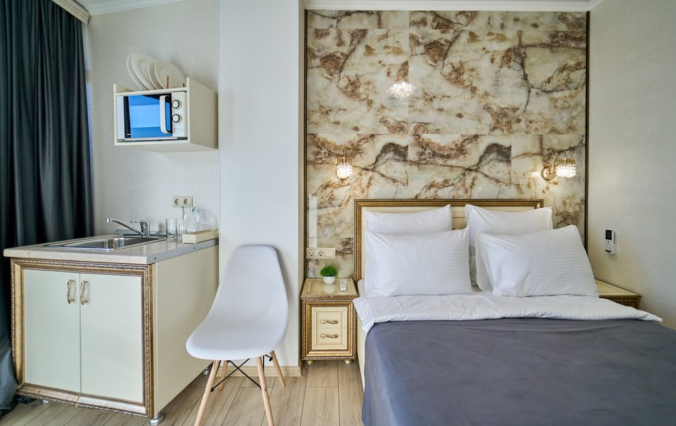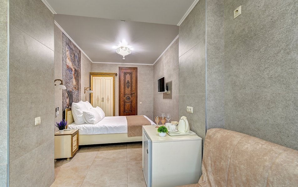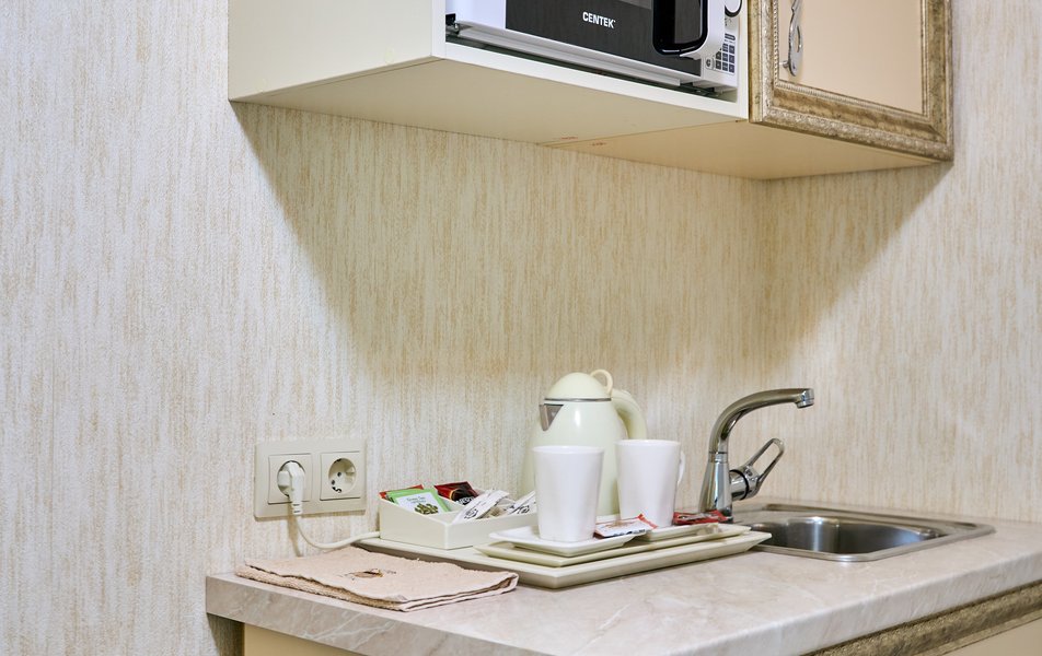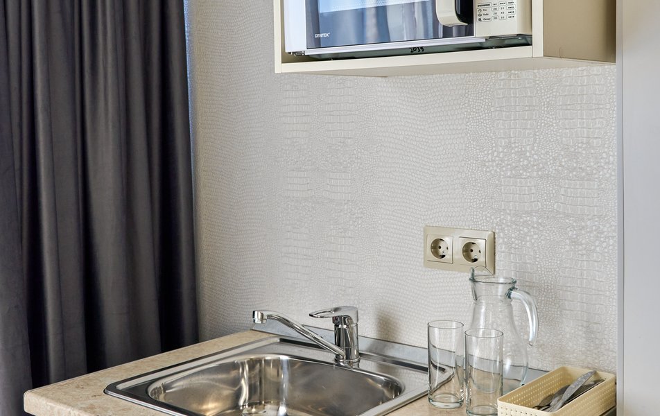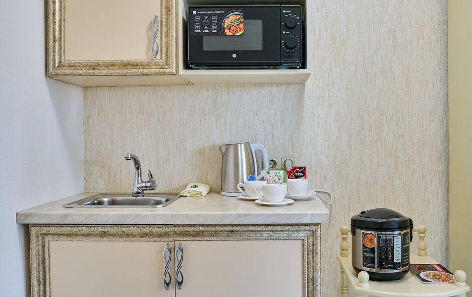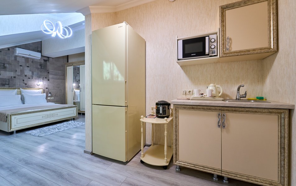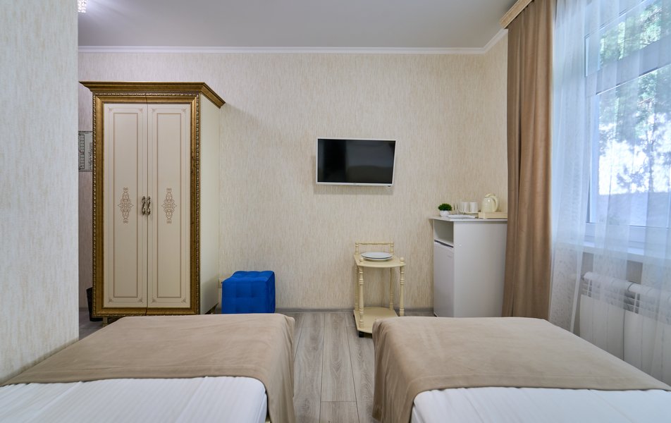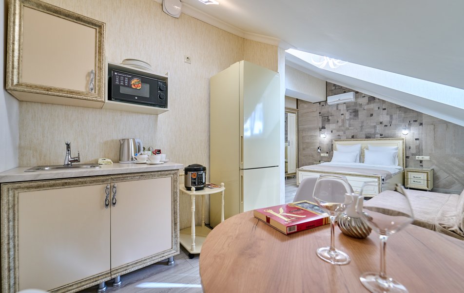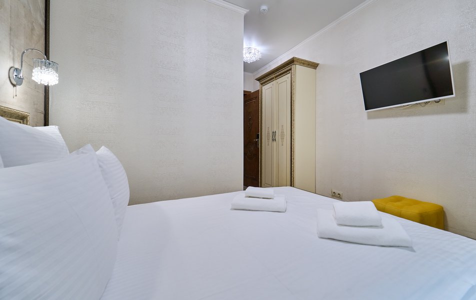 Апартаменты Комфорт 4-местный Количество комнат: 1-комнатный Тип номера: Апартаменты Вид из номера: на двор: и на стену Кол-во номеров: 3 Кол-во основных мест: 4 Площадь (кв. м): 29 Мебель: диван, кровать двуспальная, прикроватные тумбочки, стол, шкаф Оборудование: микроволновая печь, набор посуды, сейф, телевизор ЖК, холодильник, чайник, чайный набор посуды Санузел: с душем, туалетные принадлежности, фен Сервис: Wi-Fi бесплатно, room-сервис: 24 часа, смена полотенец: ежедневно, смена постельного белья: 1 раз в 3 дня, уборка номера: ежедневно
