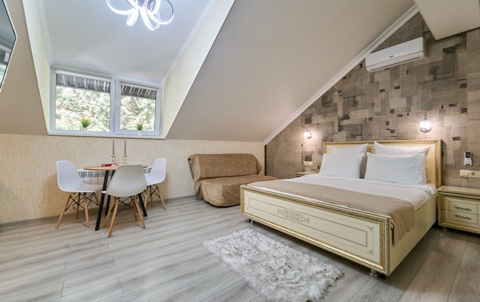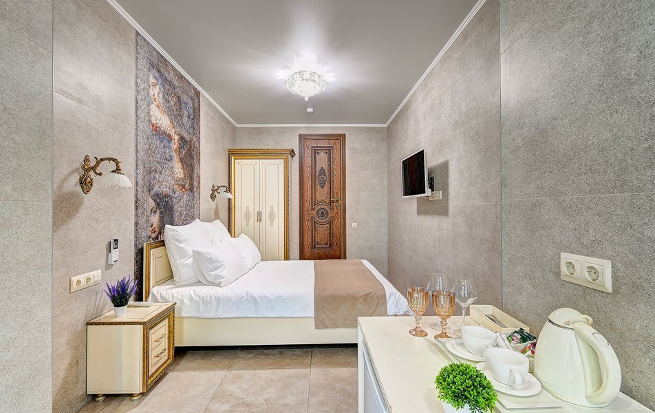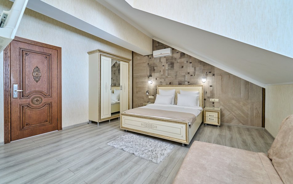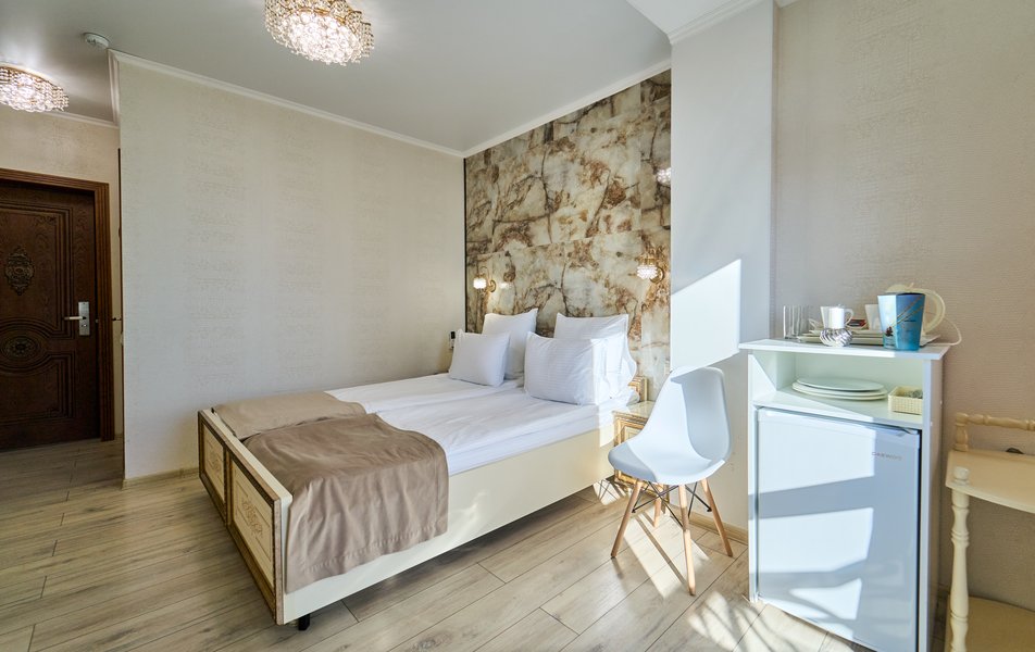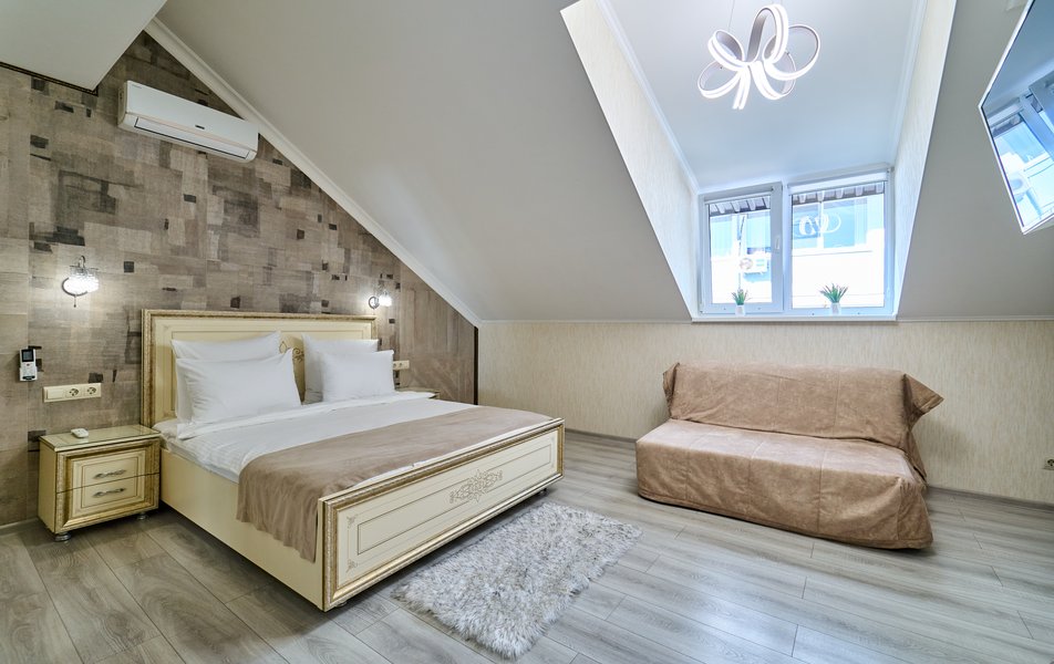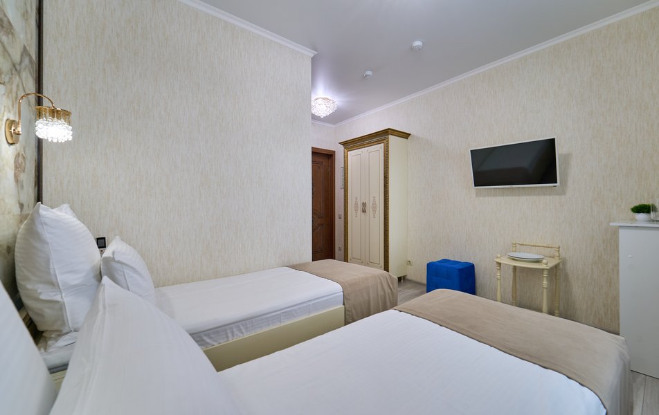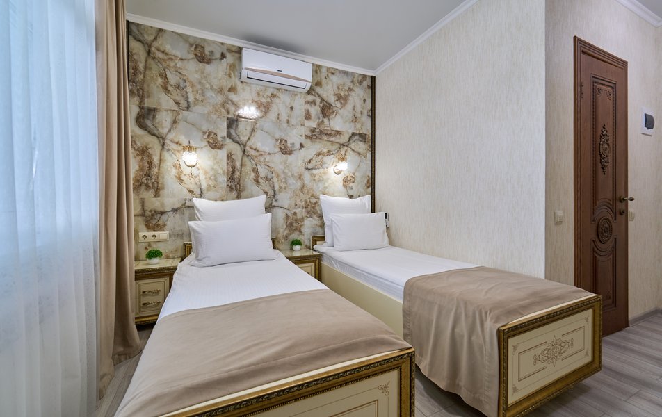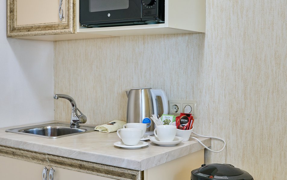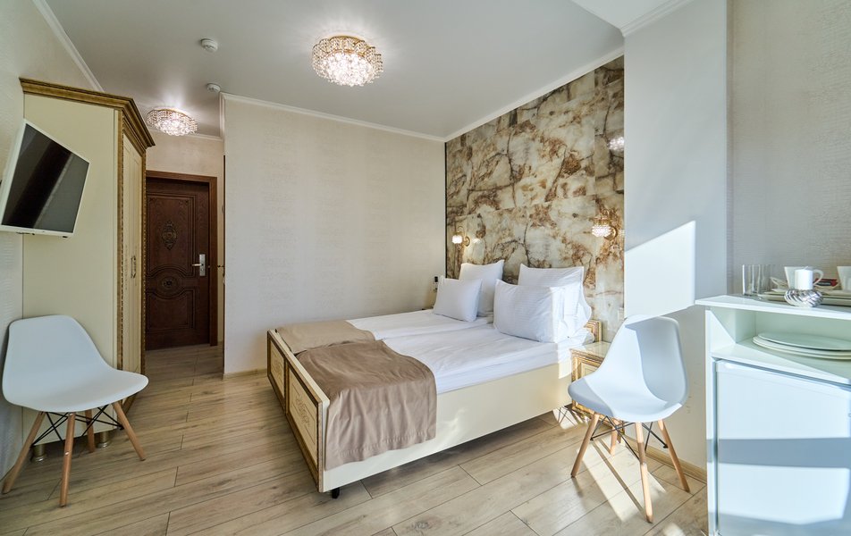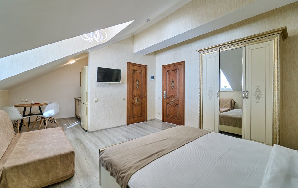 Апартаменты Комфорт 4-местный Количество комнат: 1-комнатный Тип номера: Апартаменты Вид из номера: на двор: и на стену Кол-во номеров: 3 Кол-во основных мест: 4 Площадь (кв. м): 29 Мебель: диван, кровать двуспальная, прикроватные тумбочки, стол, шкаф Оборудование: микроволновая печь, набор посуды, сейф, телевизор ЖК, холодильник, чайник, чайный набор посуды Санузел: с душем, туалетные принадлежности, фен Сервис: Wi-Fi бесплатно, room-сервис: 24 часа, смена полотенец: ежедневно, смена постельного белья: 1 раз в 3 дня, уборка номера: ежедневно