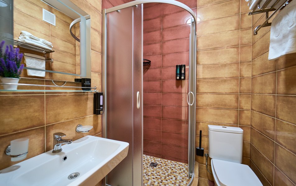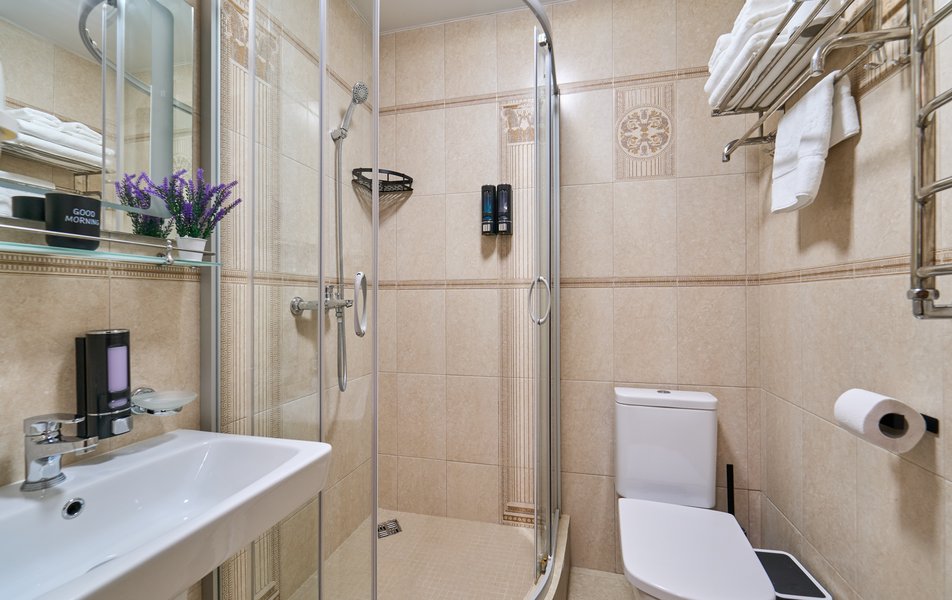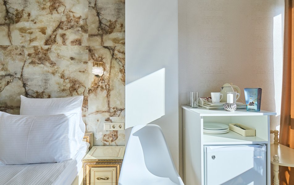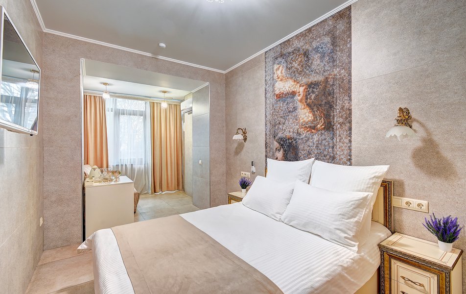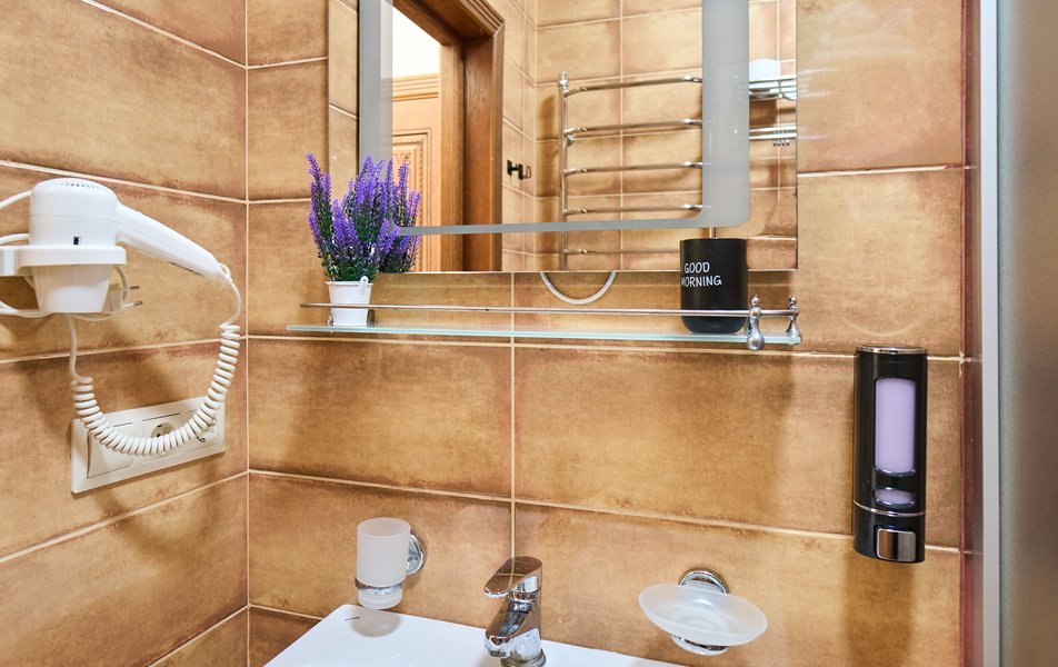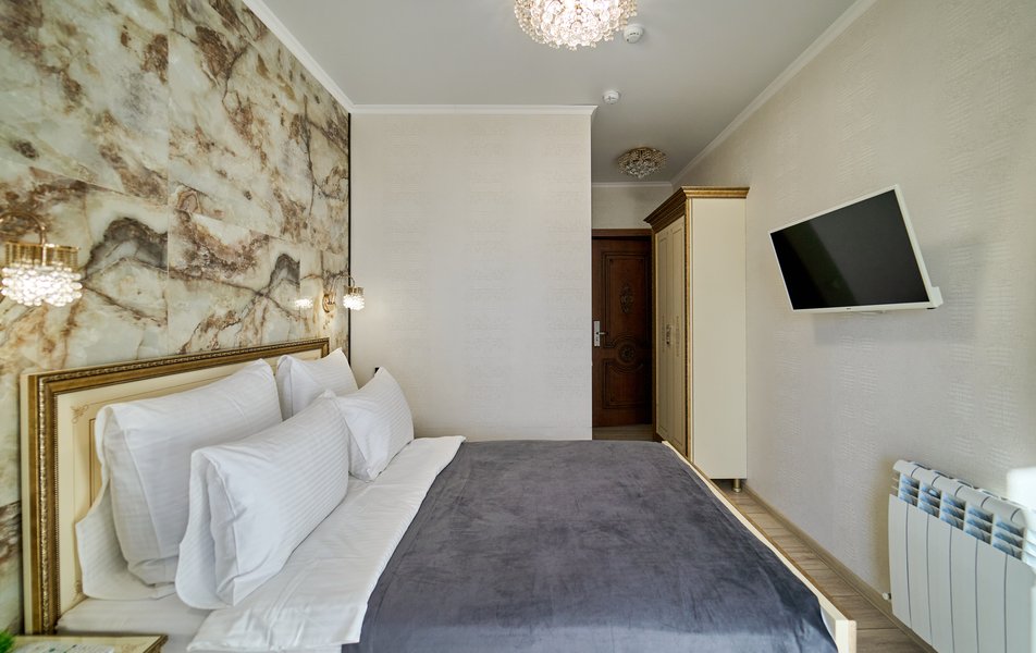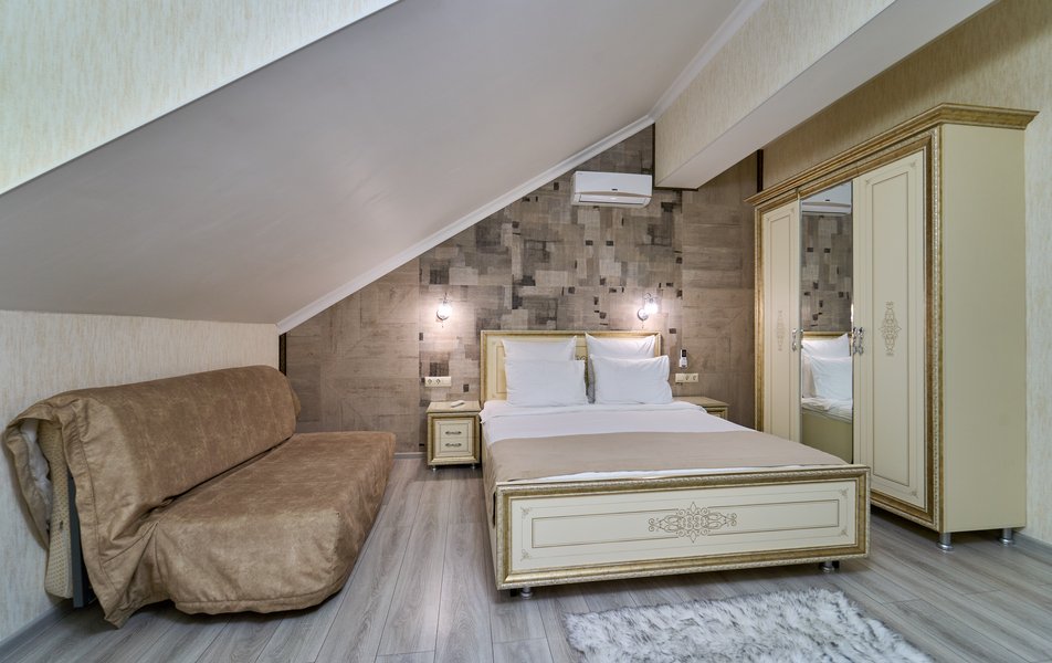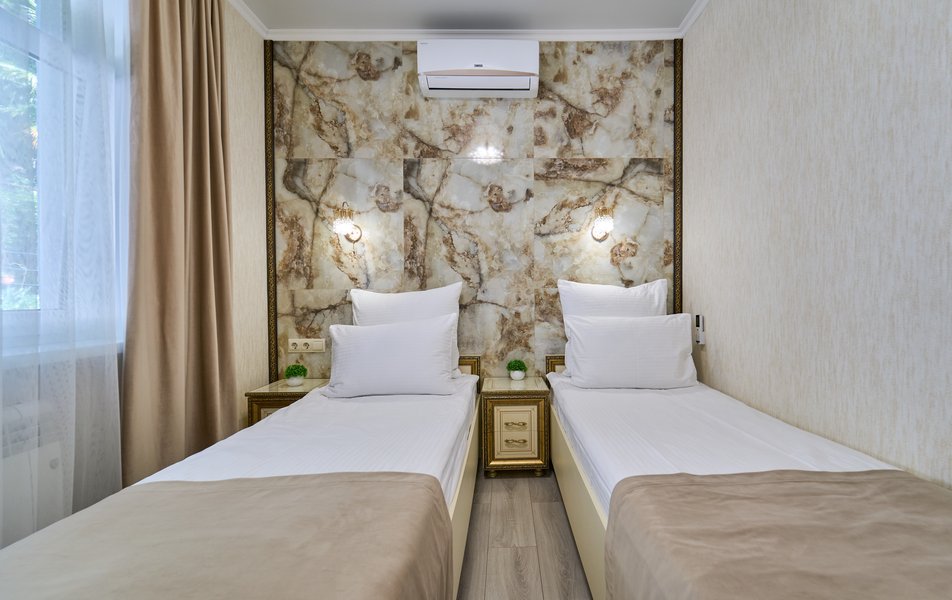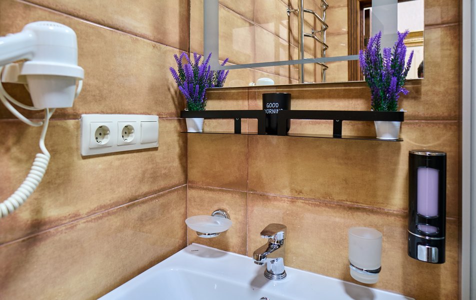 Апартаменты Комфорт 4-местный Количество комнат: 1-комнатный Тип номера: Апартаменты Вид из номера: на двор: и на стену Кол-во номеров: 3 Кол-во основных мест: 4 Площадь (кв. м): 29 Мебель: диван, кровать двуспальная, прикроватные тумбочки, стол, шкаф Оборудование: микроволновая печь, набор посуды, сейф, телевизор ЖК, холодильник, чайник, чайный набор посуды Санузел: с душем, туалетные принадлежности, фен Сервис: Wi-Fi бесплатно, room-сервис: 24 часа, смена полотенец: ежедневно, смена постельного белья: 1 раз в 3 дня, уборка номера: ежедневно