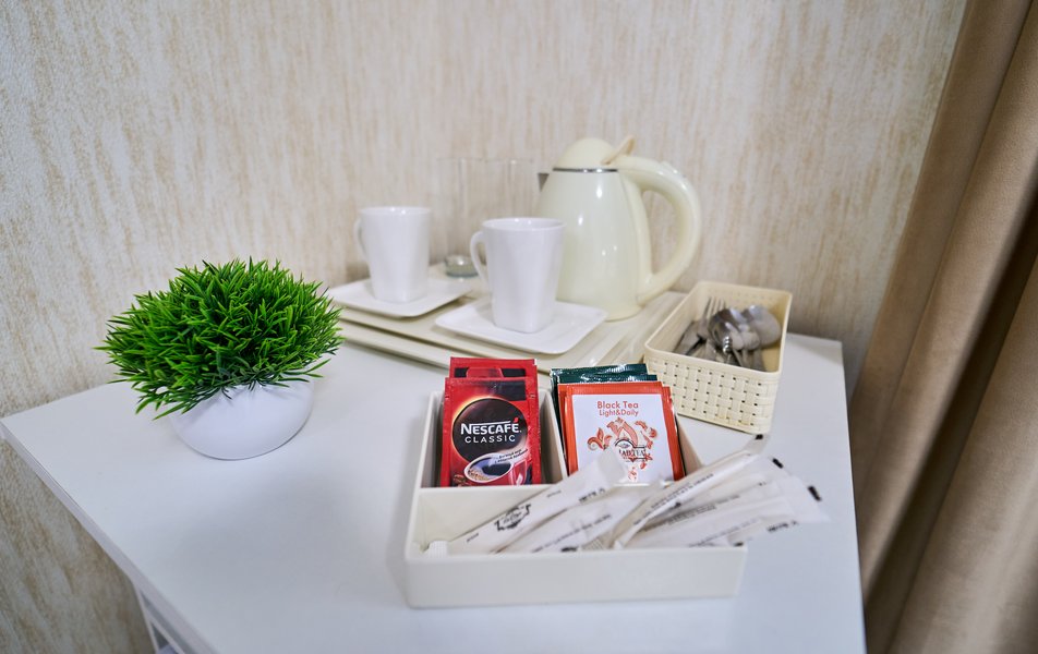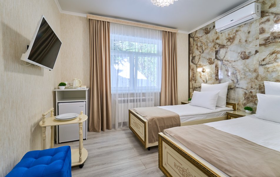 Комфорт 2-местный (с доп.местом и террасой) Количество комнат: 1-комнатный Тип номера: Комфорт Дополнительное место: кресло-кровать Кол-во номеров: 2 Кол-во основных мест: 3 Площадь (кв. м): 20 Оборудование: кондиционер, мини-холодильник, сейф, телевизор ЖК, чайник, чайный набор посуды Санузел: с душем, туалетные принадлежности, фен Сервис: Wi-Fi бесплатно, room-сервис: 24 часа, смена полотенец: ежедневно, смена постельного белья: 1 раз в 3 дня, уборка номера: ежедневно