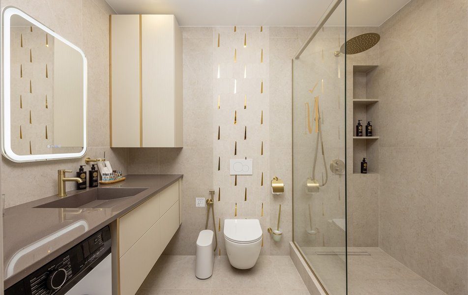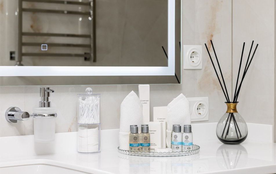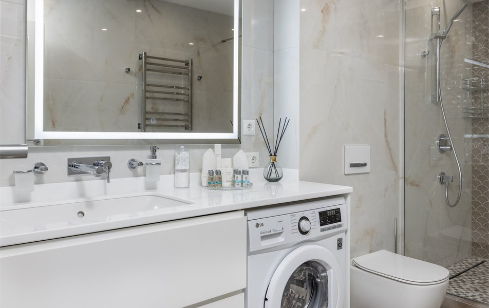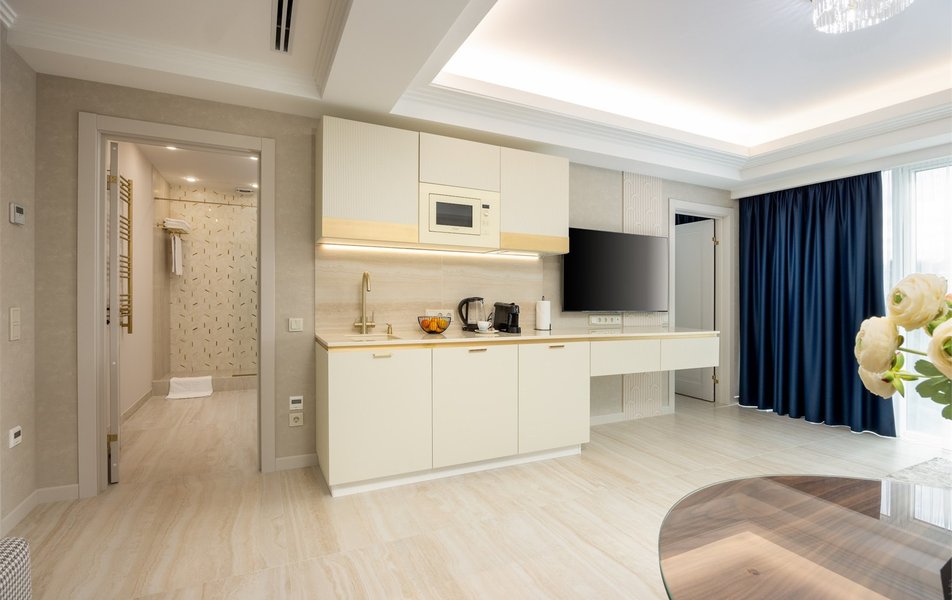 Апартаменты Люкс 2-местный Количество комнат: 2-комнатный Тип номера: Апартаменты Кол-во доп. мест: 2 Кол-во основных мест: 2 Площадь (кв. м): 50 Мебель: диван раскладной, зеркало, комод, кровать двуспальная, прикроватные тумбочки, стол, стулья, шкаф Оборудование: гладильная доска, кондиционер, кофемашина, микроволновая печь, набор посуды, плита электрическая, стиральная машина, сушилка для белья, телевизор ЖК: 2, утюг, электрочайник Санузел: с душевой кабиной, тапочки, теплый пол, туалетные принадлежности, фен, халат Сервис: Wi-Fi бесплатно, смена полотенец, смена постельного белья, уборка номера