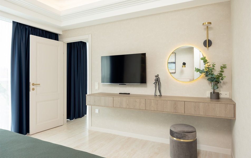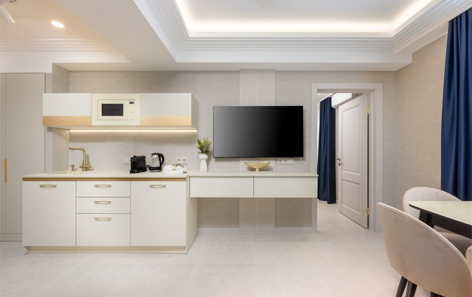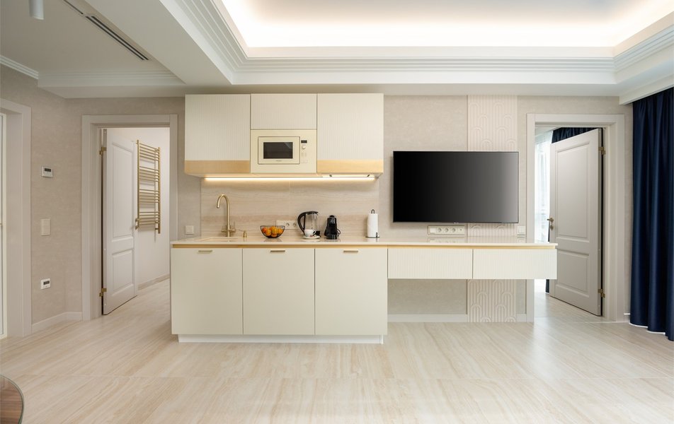 Апартаменты Панорама Роял 2-местный (с 2 доп. местами) Количество комнат: 2-комнатный Тип номера: Апартаменты Дополнительное место: раскладная кровать Кол-во доп. мест: 2 Кол-во номеров: 1 Кол-во основных мест: 2 Площадь (кв. м): 55 Мебель: вешалка, диван раскладной, зеркало, кровать двуспальная, кухонная мебель, прикроватные тумбочки, стол, стулья, шкаф Оборудование: гладильная доска, кондиционер, кофемашина, микроволновая печь, мини-холодильник, набор посуды, пляжные полотенца, сейф, стиральная машина, сушилка для белья, телевизор ЖК: 2, утюг, электрочайник Санузел: с душевой кабиной, тапочки, туалетные принадлежности, фен, халат Сервис: Wi-Fi бесплатно, смена полотенец, смена постельного белья, уборка номера