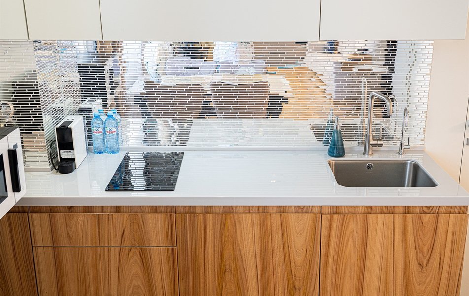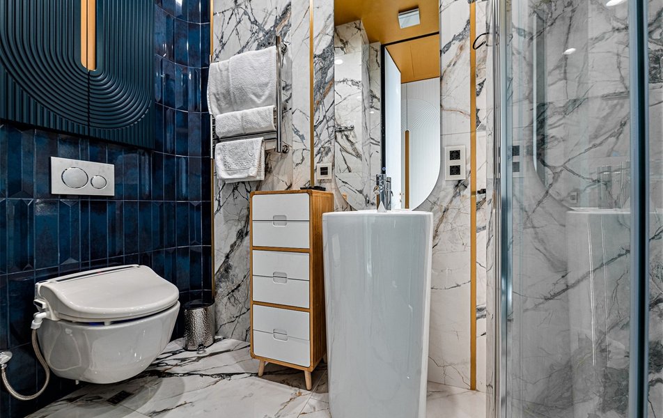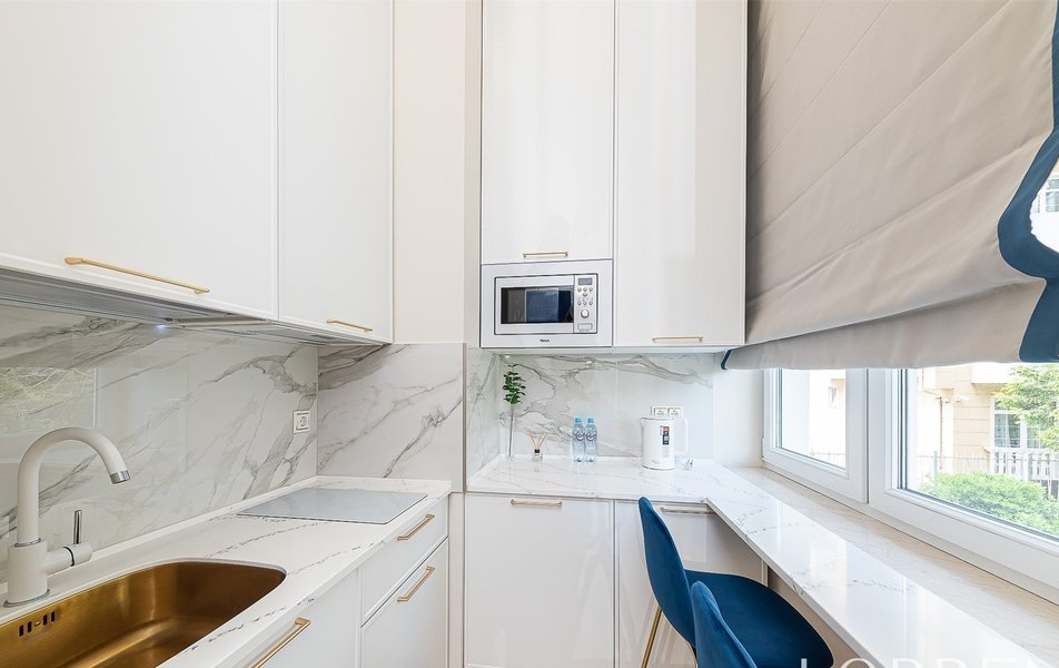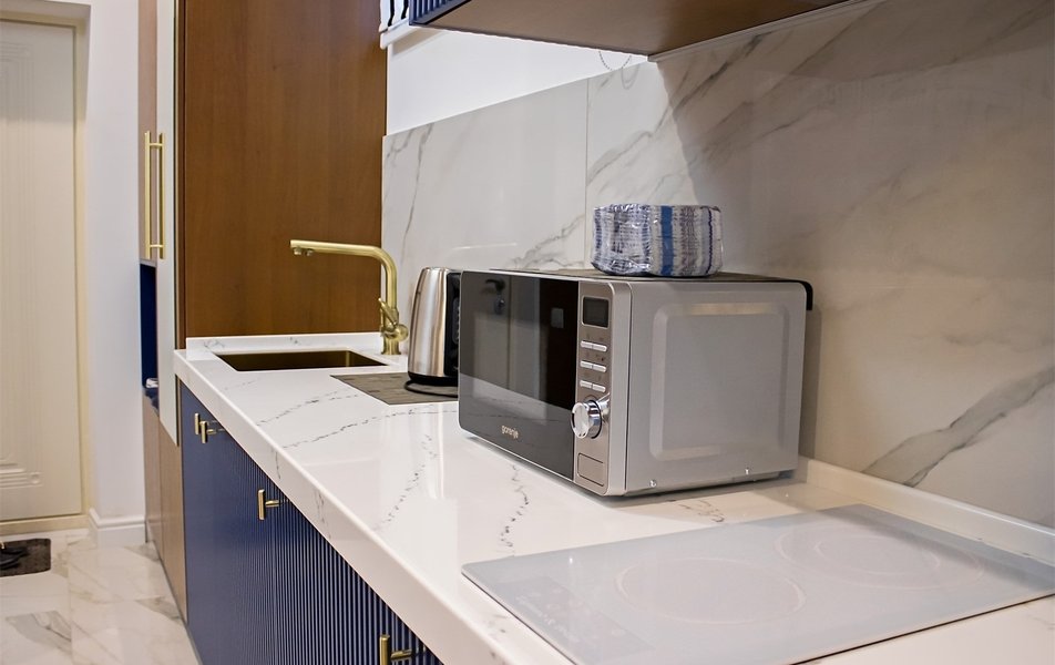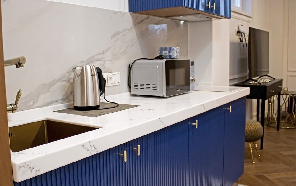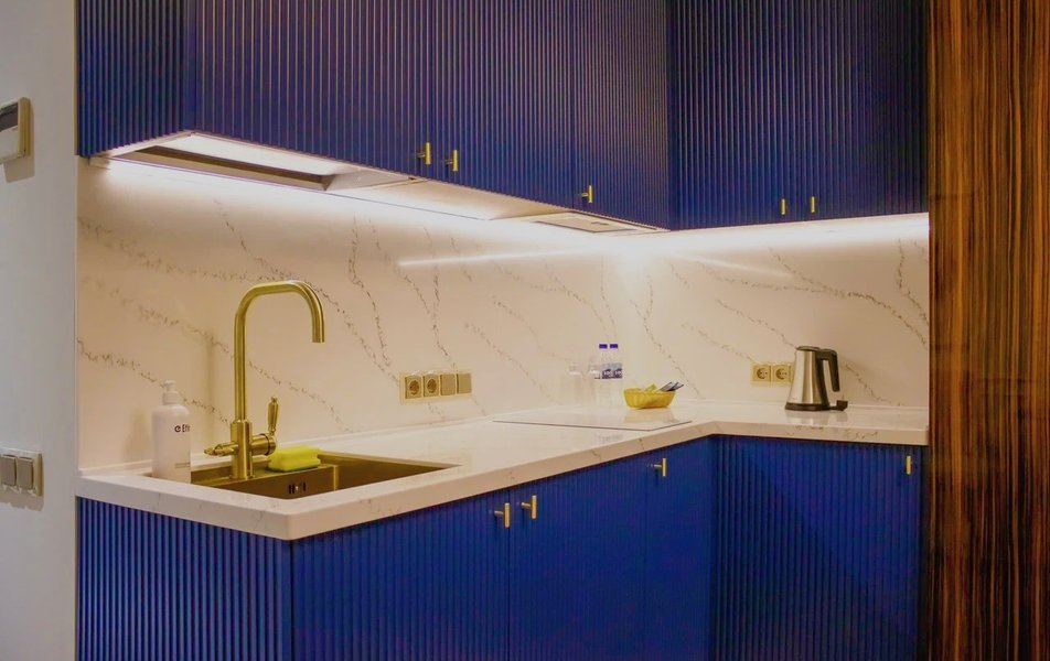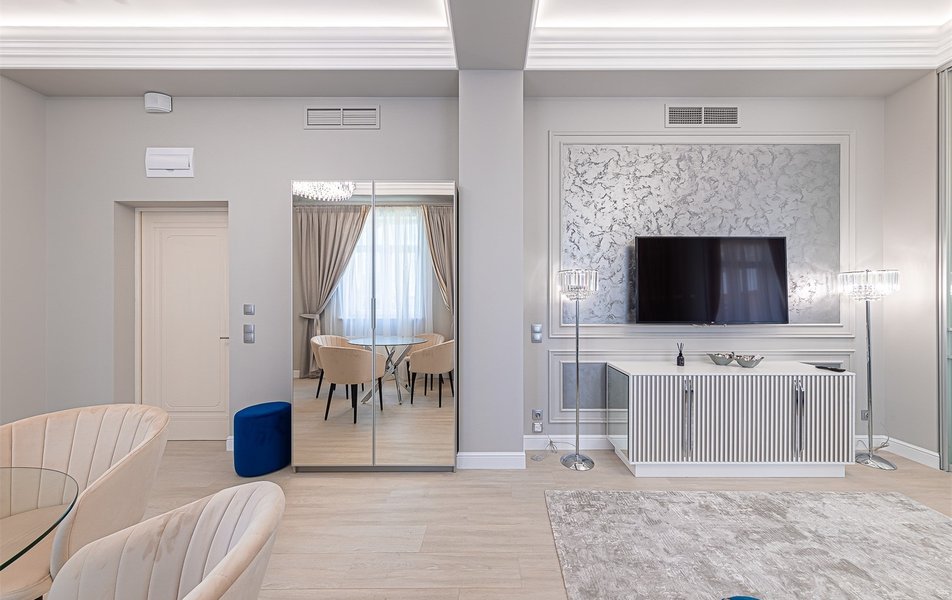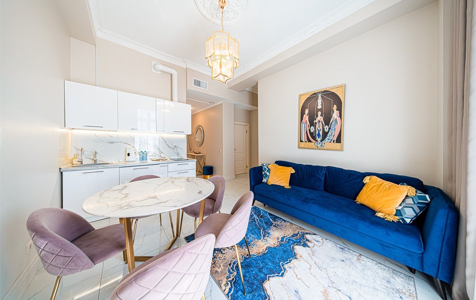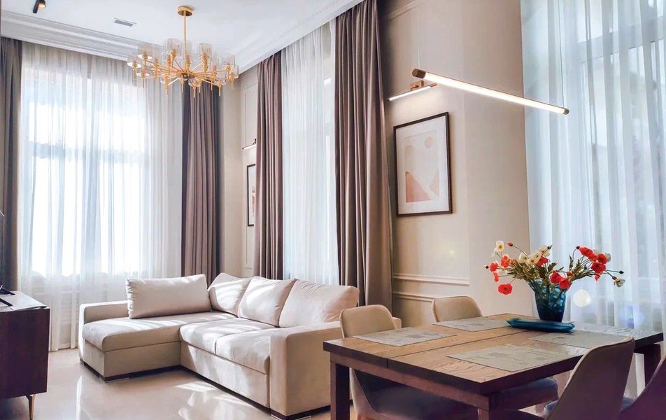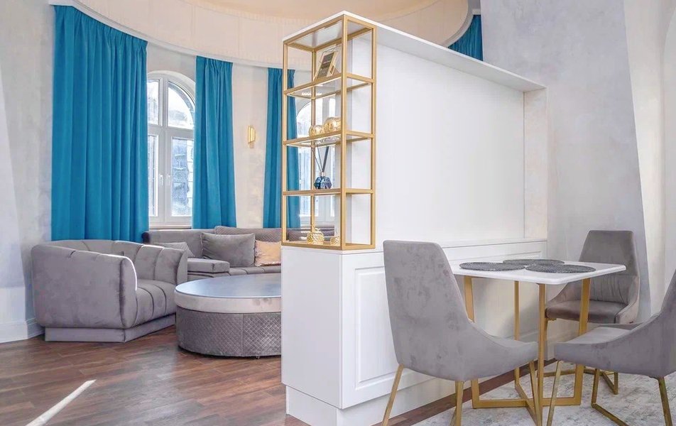 Шестиэтажный корпус отеля расположен в закрытой охраняемой зоне. Постояльцам доступны 15 просторных номеров-апартаментов площадью от 22 до 50 кв.м., выполненных в барочной и классической стилистике. В каждом номере мини-кухня с варочной панелью, система кондиционирования, необходимая бытовая техника, ванная комната с набором косметики.