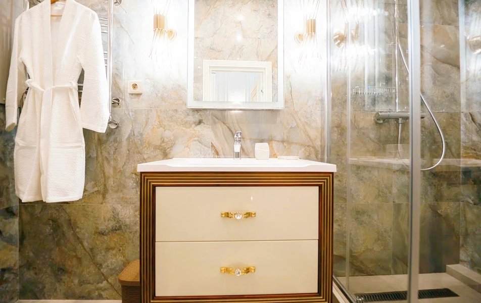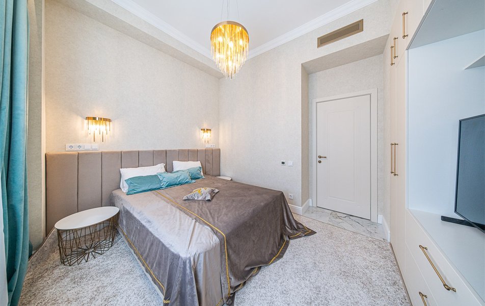 Люкс 3-местный DESERT Количество комнат: 2-комнатный Тип номера: Люкс Вид из номера: на город Кол-во основных мест: 3 Площадь (кв. м): 50 Мебель: диван, зеркало, кровать двуспальная, прикроватные тумбочки, стол, столик туалетный, стулья, шкаф-купе Оборудование: гладильная доска, кондиционер, мини-холодильник, набор посуды, плита электрическая, стиральная машина, телевизор ЖК, утюг, чайный набор посуды, электрочайник Санузел: с ванной или душевой кабиной, тапочки, туалетные принадлежности, фен, халат Сервис: Wi-Fi бесплатно, room-сервис, смена полотенец: ежедневно или по требованию, смена постельного белья: 1 раз в 2 дня, уборка номера: ежедневно или по требованию