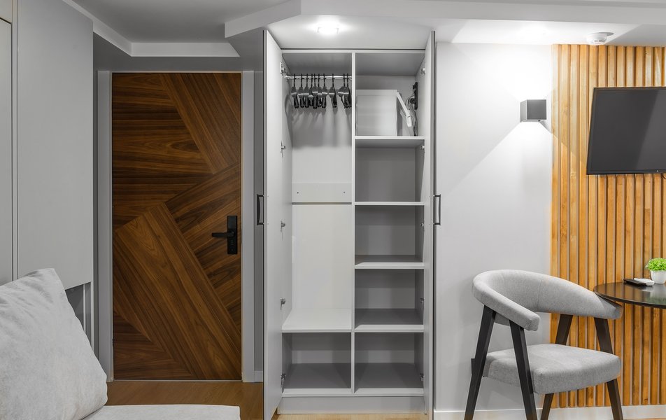 Апартаменты 2-местный 1-комнатный (без окна) Количество комнат: 1-комнатный Тип номера: Апартаменты Вид из номера: без окна Кол-во основных мест: 2 Площадь (кв. м): 17 Мебель: вешалка, зеркало, кровать двуспальная, стол, стулья, шкаф Оборудование: кондиционер, набор посуды, телевизор ЖК, холодильник, электрочайник Санузел: с душем, туалетные принадлежности, фен Сервис: Wi-Fi бесплатно, смена полотенец, смена постельного белья, уборка номера