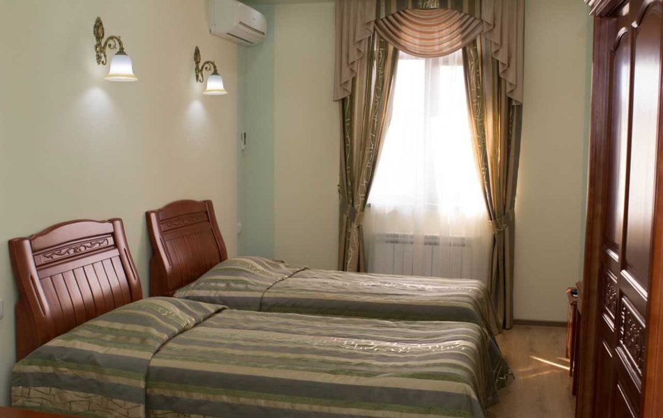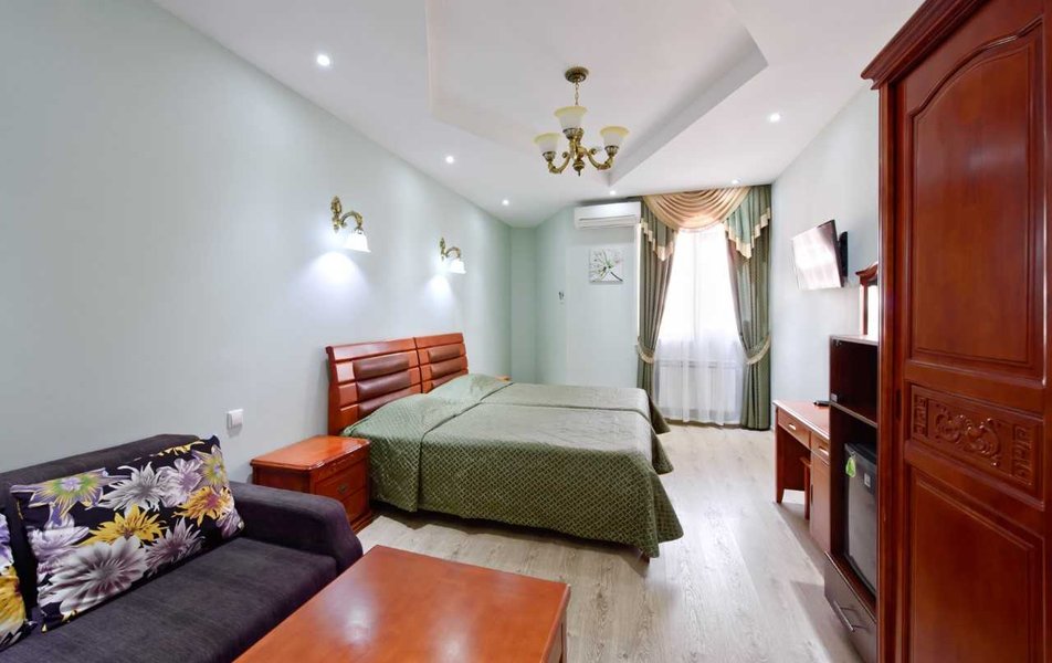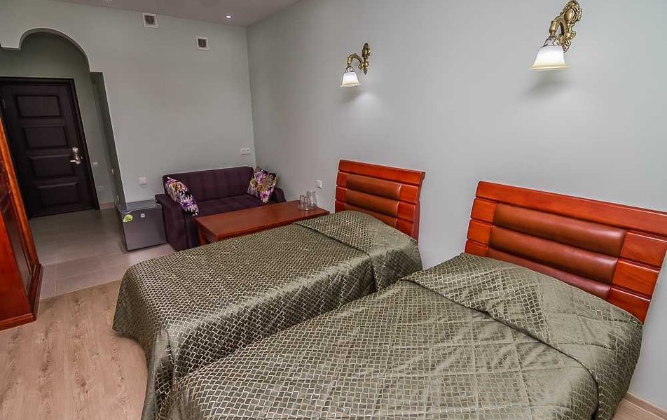 При выборе номера только одна из трех фотографий соответствовала фактическому состоянию предоставленного нам помещения; остальные фото, как оказалось, были из другого номера. Наш номер был двухкомнатным, но назвать его «люкс» можно, пожалуй, лишь из-за наличия двух комнат. Сейф в номере оказался закрытым, и мы решили не разбираться с тем, как его открыть. Душевая кабина протекала снизу, а сама душевая система подтекала сверху и брызгала в разные стороны. Однако напор воды на пятом этаже был хорошим, и вода за время пребывания пропадала только дважды. Унитаз и раковина были оформлены в цветочный узор, что показалось нам необычным, даже странным решением. Плитка в ванной оказалась потрескавшейся по кругу, возможно, из-за старости или усадки здания. В комнате регулярно появлялись клопы-щитники — выбрасывали их в окно, но они возвращались, словно у них были ключи от номера. Полотенца меняли регулярно, а вот уборка проводилась посредственно, пока мы не обратились к администратору. Стелить одеяло в пододеяльник в отеле, видимо, не принято. За девять дней проживания номер убрали только два раза, а под кроватью слой пыли был почти в сантиметр. Про трансфер в октябре ничего не слышали, передвигались пешком или пользовались каршерингом, благо он был неподалеку. В пешей доступности были «Пятерочка» и круглосуточный «Магнит», но остальная инфраструктура находилась на приличном расстоянии, и дорога не была удобной для прогулок с детьми и коляской. Еда в кафе отеля многим нравилась, и посетители благодарили персонал. Нам показалось, что обеды и ужины вполне обычные. На завтрак были сосиски, яичница (иногда быстро разбирали), гречка, макароны, тушеные овощи, вареные яйца, хлопья, сыр, колбаса, помидоры, огурцы, каши, булочки, растворимый кофе и чай. За отдельную плату можно было заказать сваренный кофе. В общем, для отеля, в котором нужно просто переночевать и позавтракать, питание вполне подходящее. Однако цена за ночь — более 6000 рублей в конце октября — показалась нам завышенной за такой уровень сервиса. Хотя на сайте указано, что отель работает 24/7, администратора на месте не оказалось при нашем выезде в 4 утра. В холле был оставлен номер телефона с инструкцией оставить ключи от номера в цветочном горшке.