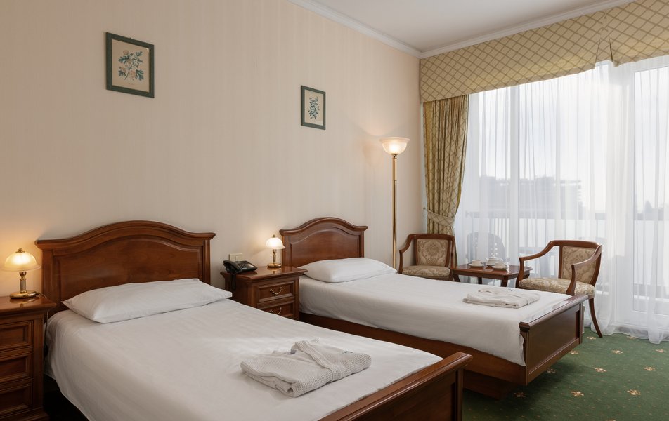 Добрый день! Санаторий очень понравился, тихо и спокойно. Питание отличное, приготовлено всё очень вкусно! Номер уютный, постоянно проводится уборка, ежедневно меняют полотенца. Каждый день номер снабжают питьевой водой, шампунь, бальзам, гель для душа, чай, кофе, сахар, также имеется фен. Территория ухоженная, бассейн крытый и на улице. Пляж тоже очень понравился, можно не переживать за вещи. Имеется на пляже благоустроенный туалет и душ. Лечение тоже достойное, медперсонал идёт на встречу отдыхающим, внимательные и понимающие.