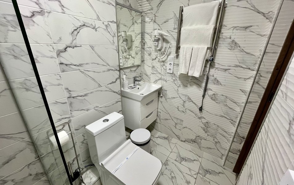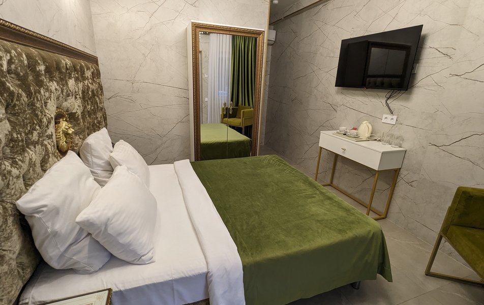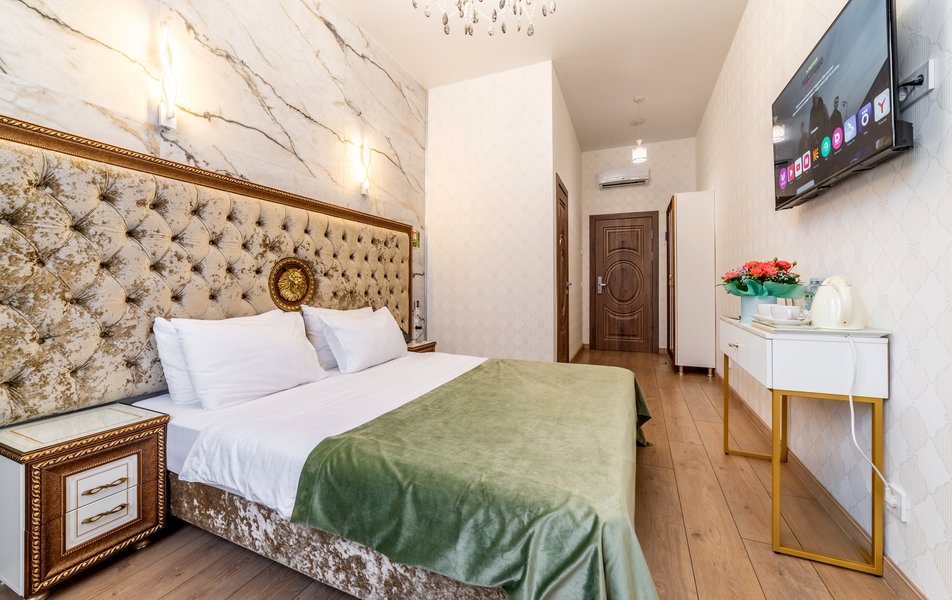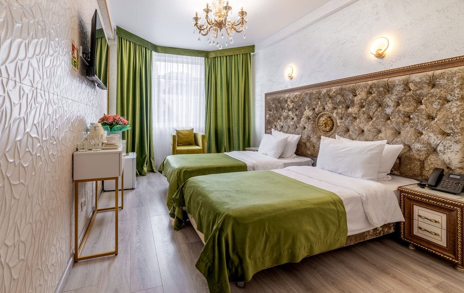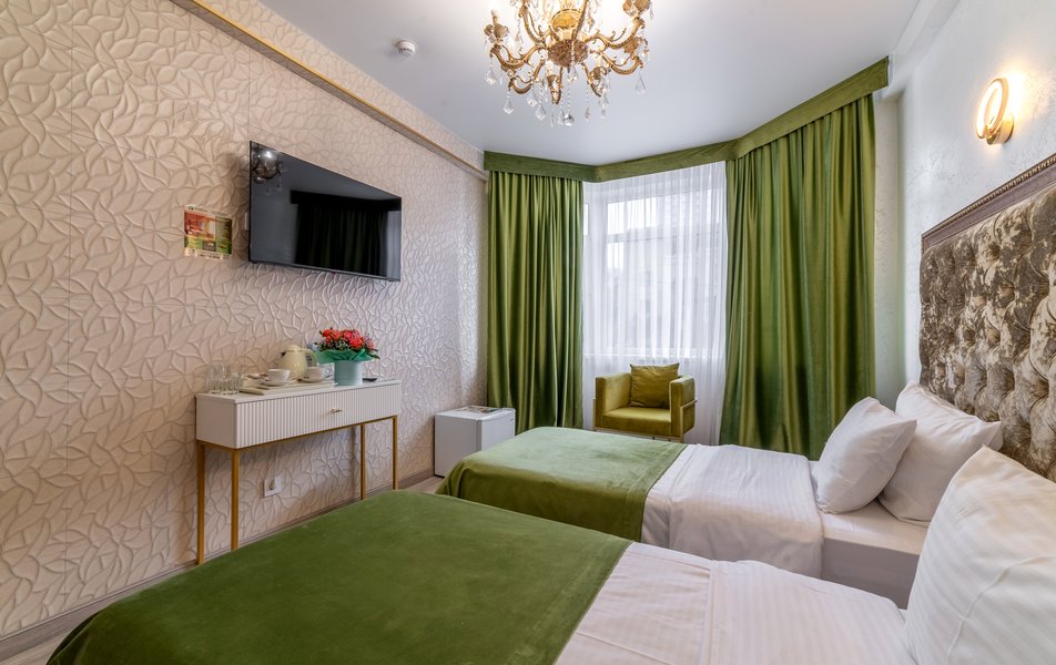 Стандартный 2-местный 1-комнатный (вид на город, 3 этаж) Количество комнат: 1-комнатный Тип номера: Стандартный Дополнительное место: еврораскладушка Вид из номера: на город Кол-во доп. мест: 1 Кол-во номеров: 44 Кол-во основных мест: 2 Площадь (кв. м): 19 Мебель: зеркало, кресло, кровати односпальные /одна двуспальная кровать, прикроватные тумбочки, стол, шкаф Оборудование: мини-холодильник, набор посуды, сейф, сплит-система, телевизор ЖК, телефон, чайная станция Санузел: с душевой кабиной, тапочки, туалетные принадлежности, фен, халат Сервис: Wi-Fi бесплатно, room-сервис, карточная система замков, смена полотенец, смена постельного белья, уборка номера, услуги внутренней телефонной связи