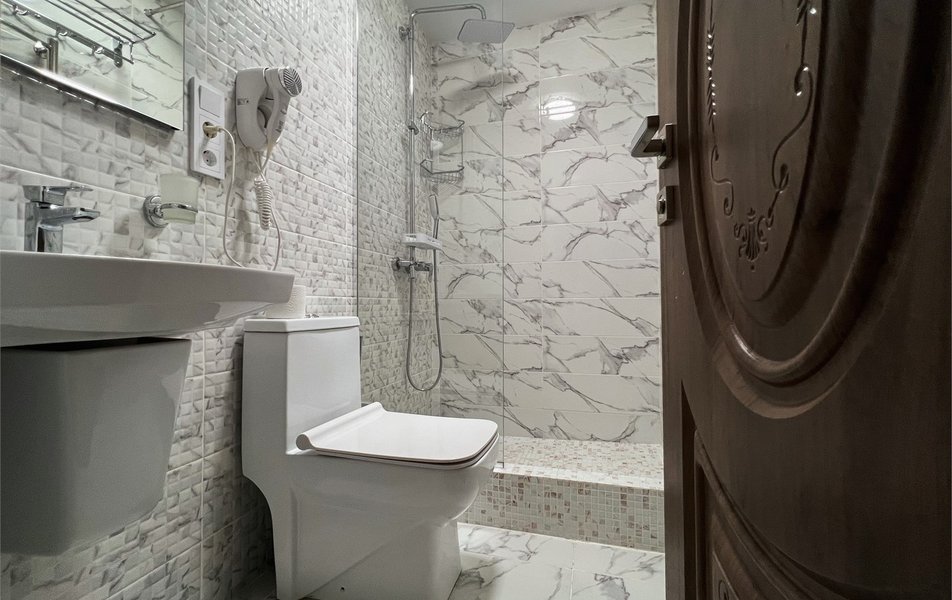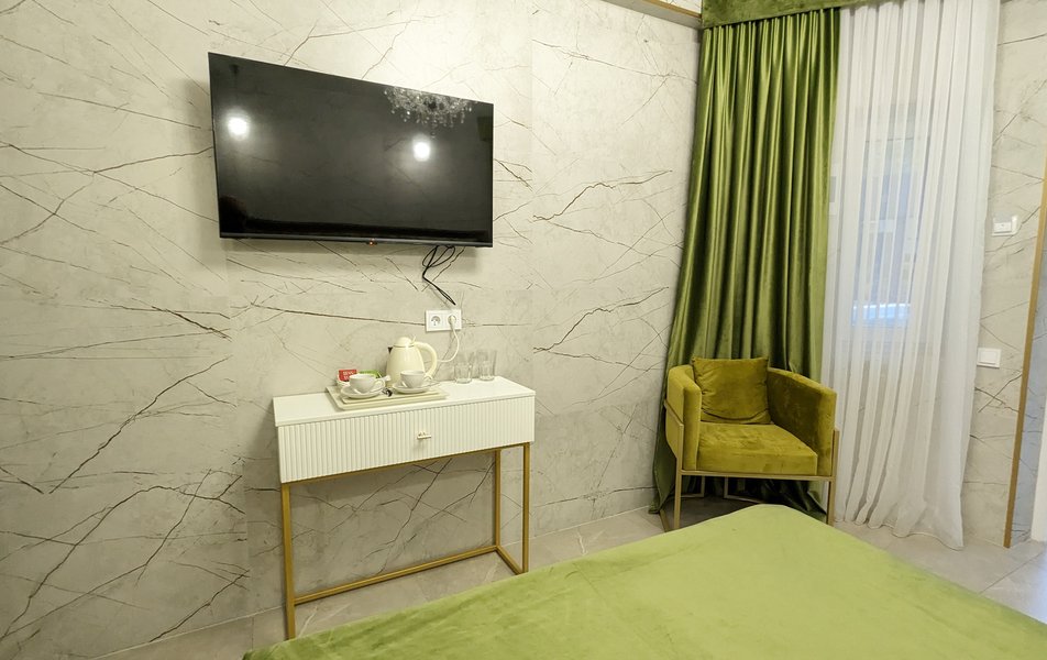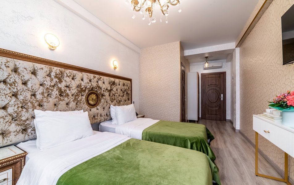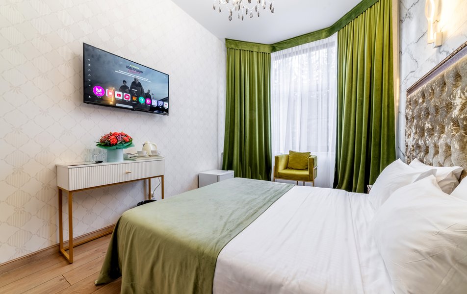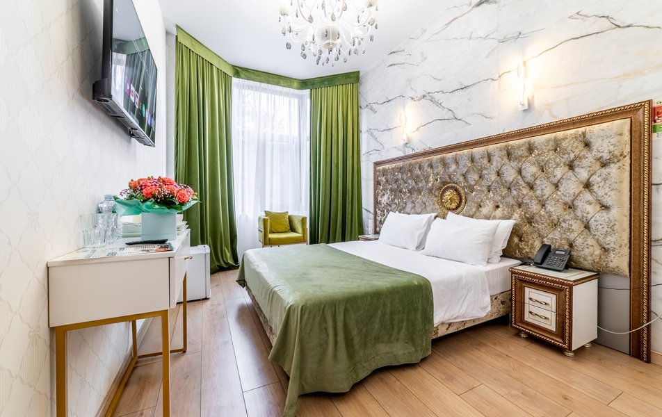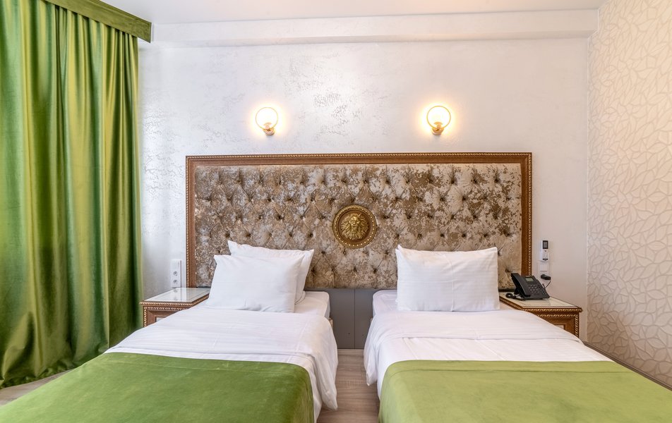 Стандартный 2-местный 1-комнатный (вид на город, 3 этаж) Количество комнат: 1-комнатный Тип номера: Стандартный Дополнительное место: еврораскладушка Вид из номера: на город Кол-во доп. мест: 1 Кол-во номеров: 44 Кол-во основных мест: 2 Площадь (кв. м): 19 Мебель: зеркало, кресло, кровати односпальные /одна двуспальная кровать, прикроватные тумбочки, стол, шкаф Оборудование: мини-холодильник, набор посуды, сейф, сплит-система, телевизор ЖК, телефон, чайная станция Санузел: с душевой кабиной, тапочки, туалетные принадлежности, фен, халат Сервис: Wi-Fi бесплатно, room-сервис, карточная система замков, смена полотенец, смена постельного белья, уборка номера, услуги внутренней телефонной связи