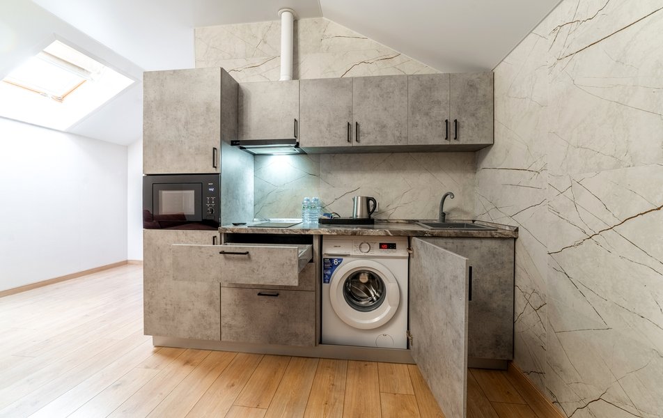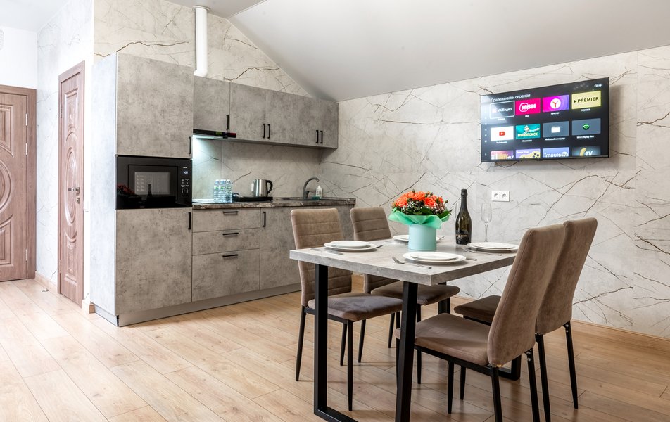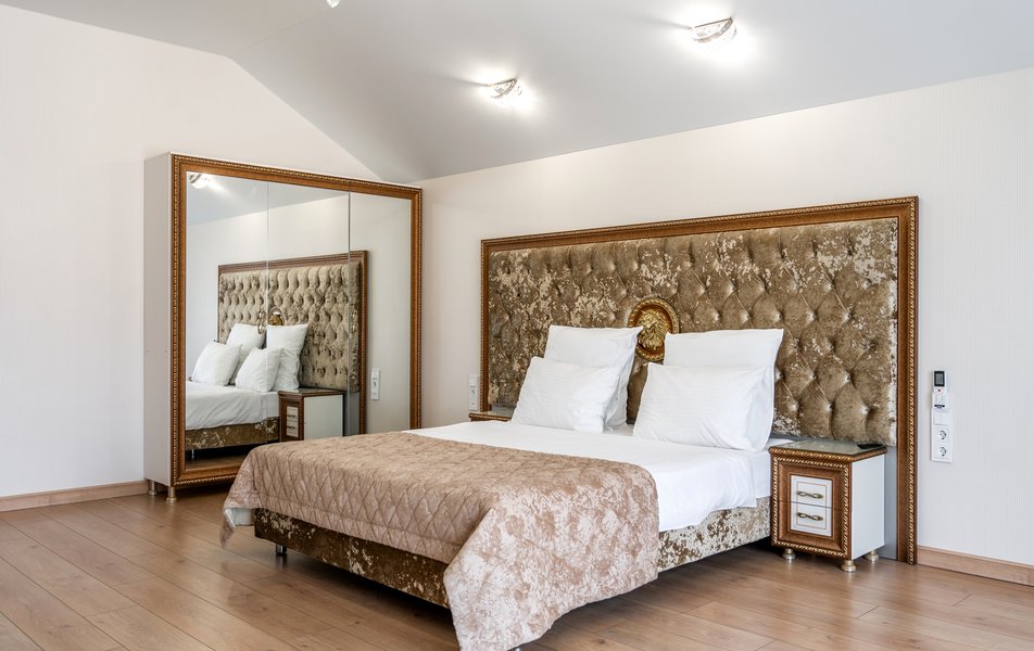 Апартамент Люкс 4-местный 2-комнатный (мансарда) Количество комнат: 2-комнатный Тип номера: Апартаменты Дополнительное место: еврораскладушка Кол-во доп. мест: 2 Кол-во основных мест: 4 Площадь (кв. м): 61 Кухня: полностью оборудованная Мебель: диван раскладной, зеркало, кровать двуспальная, прикроватные тумбочки, стол, стулья, шкаф Оборудование: мини-холодильник, набор посуды, сейф, сплит-система, сушилка для белья, телевизор ЖК, телефон, чайная станция Санузел: с душевой кабиной, тапочки, туалетные принадлежности, фен, халат Сервис: Wi-Fi бесплатно, room-сервис, карточная система замков, смена полотенец, смена постельного белья, уборка номера, услуги внутренней телефонной связи