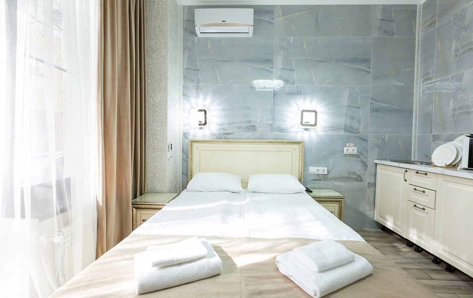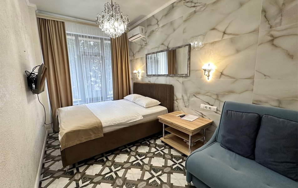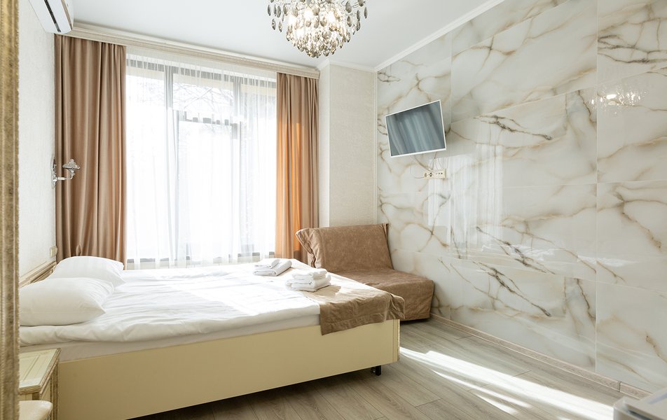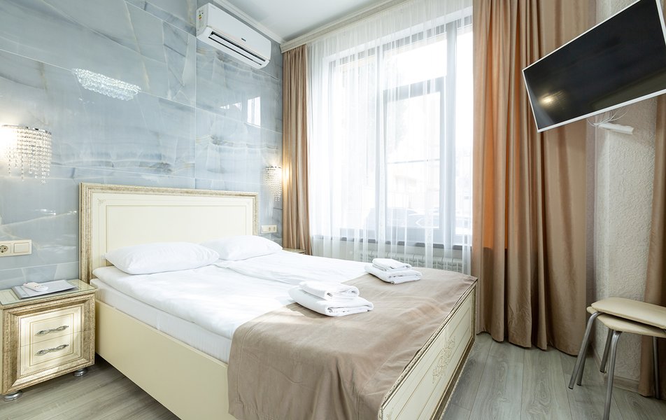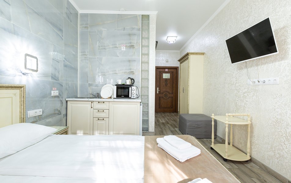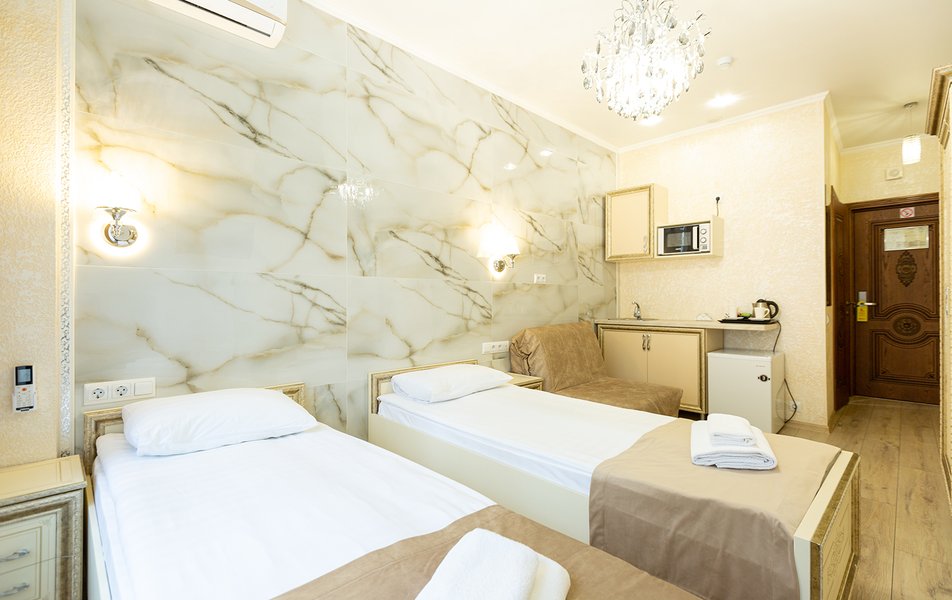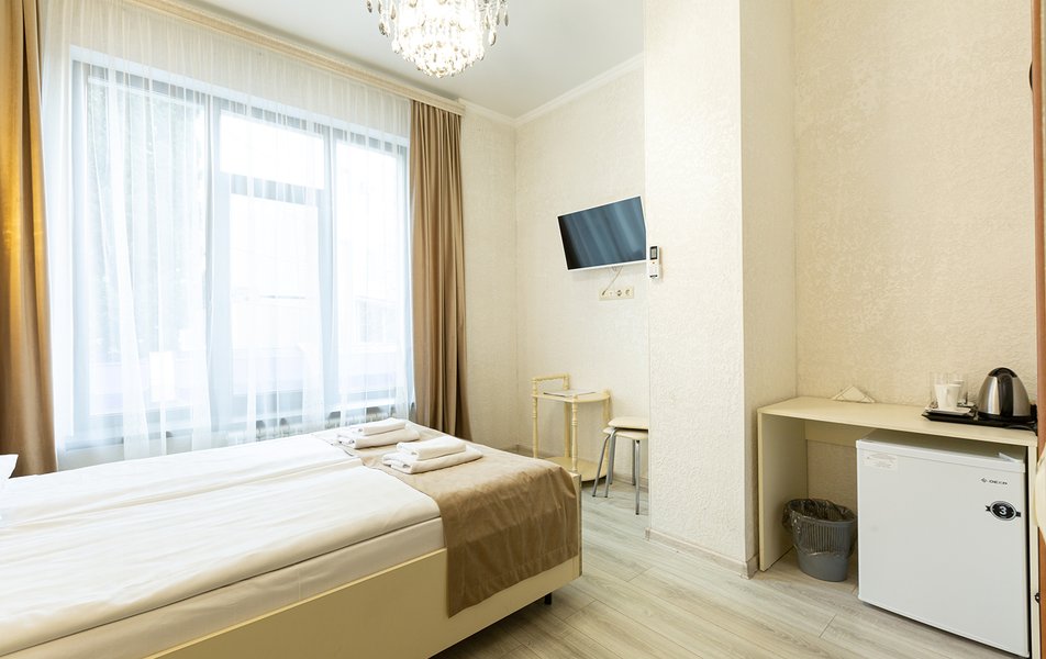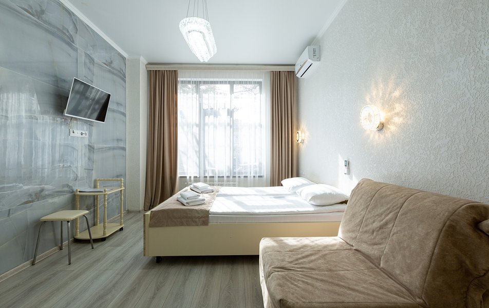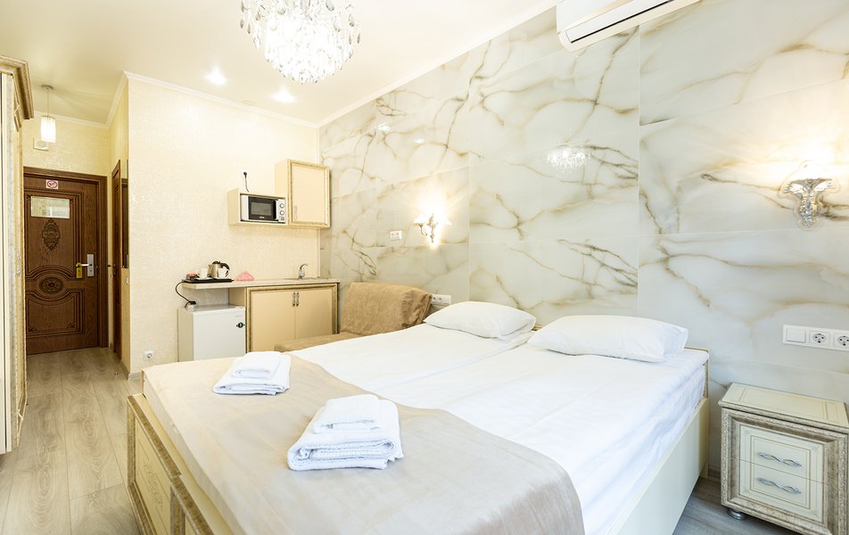 Отель работает с декабря 2020 года, его современные номера оснащены новой мебелью, сантехникой и всем необходимым для комфортного пребывания. В каждом номере есть санузел с душевой кабиной, кондиционер, холодильник и чайник. Некоторые номера даже оборудованы мини-кухней и стиральной машиной. Бесплатный Wi-Fi работает на всей территории отеля. На ресепшене гости могут арендовать дополнительную бытовую технику.