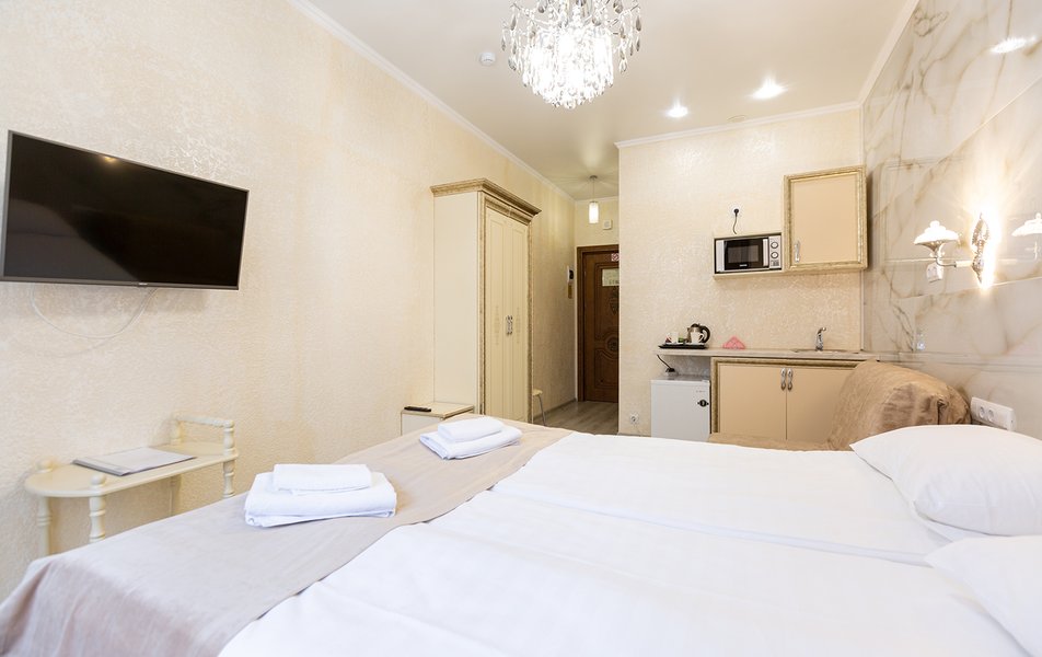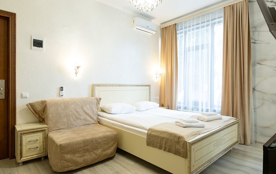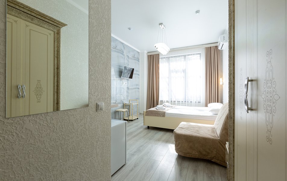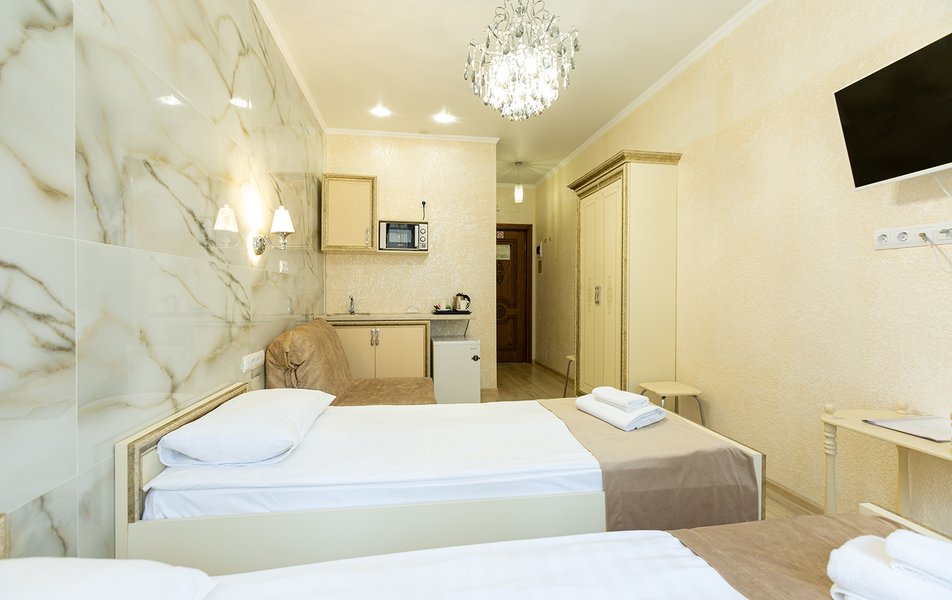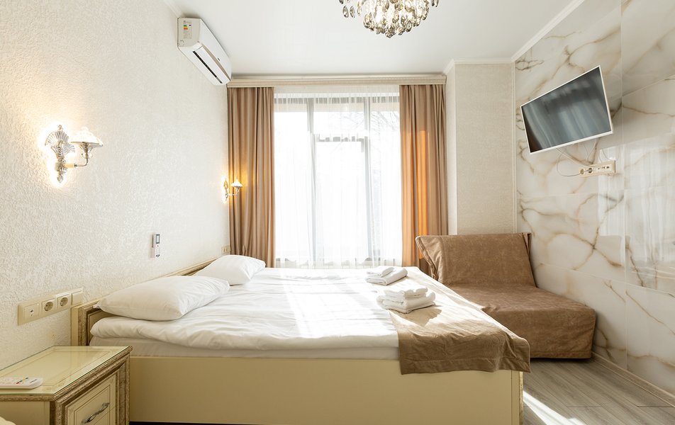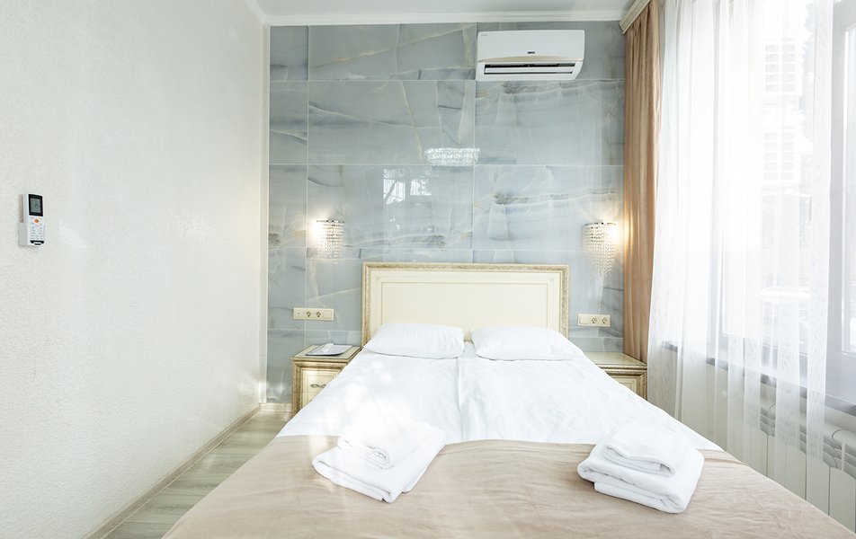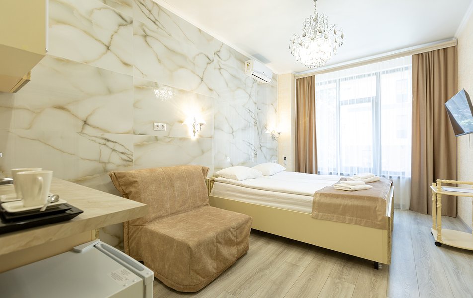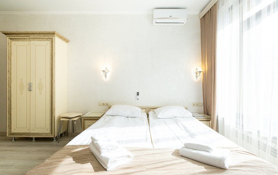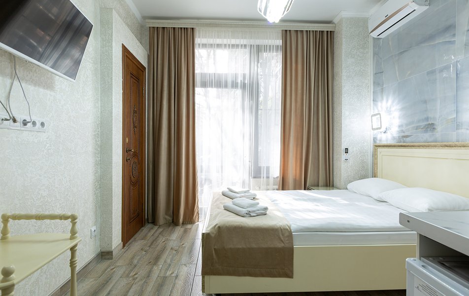 Отель работает с декабря 2020 года, его современные номера оснащены новой мебелью, сантехникой и всем необходимым для комфортного пребывания. В каждом номере есть санузел с душевой кабиной, кондиционер, холодильник и чайник. Некоторые номера даже оборудованы мини-кухней и стиральной машиной. Бесплатный Wi-Fi работает на всей территории отеля. На ресепшене гости могут арендовать дополнительную бытовую технику.