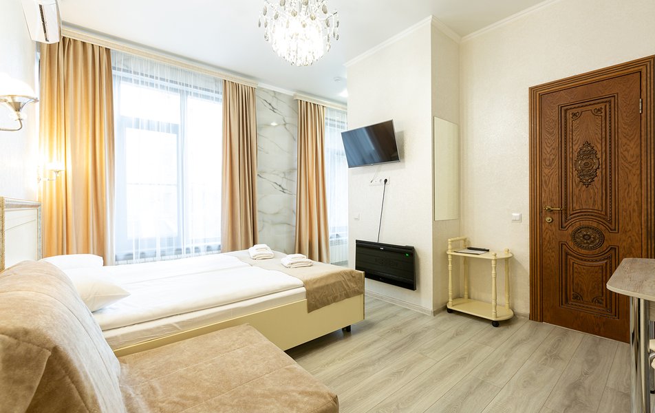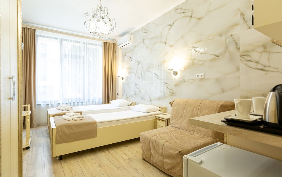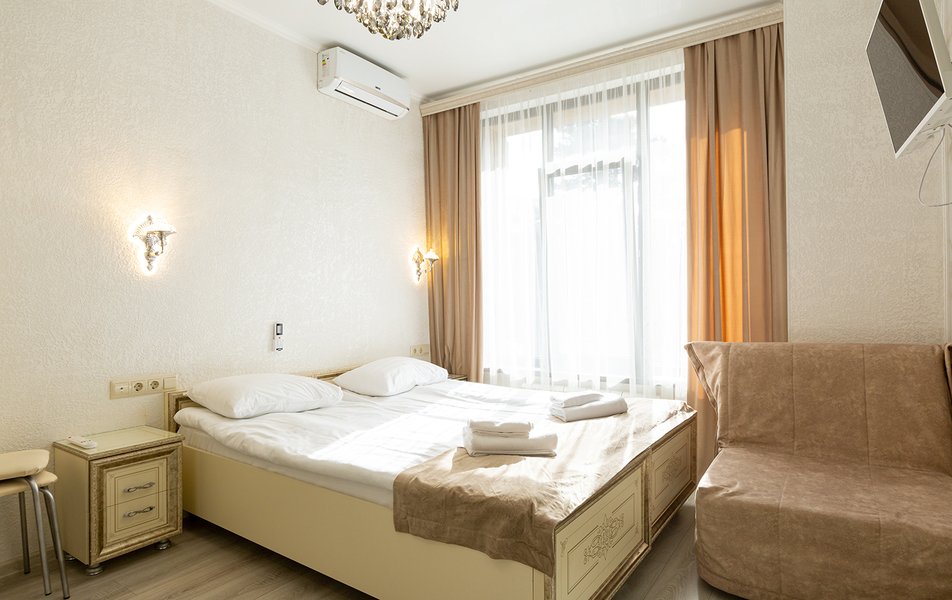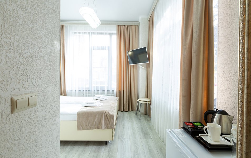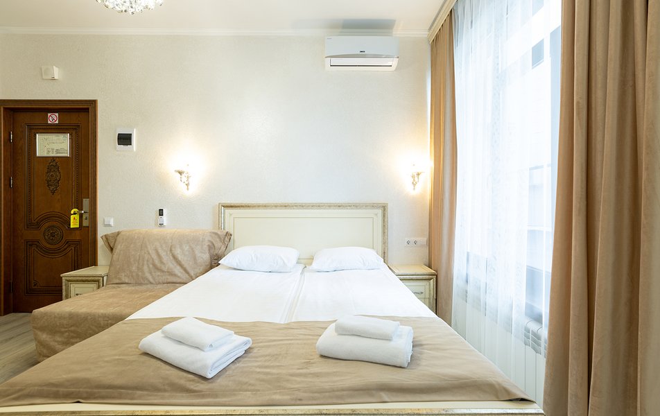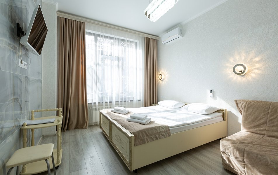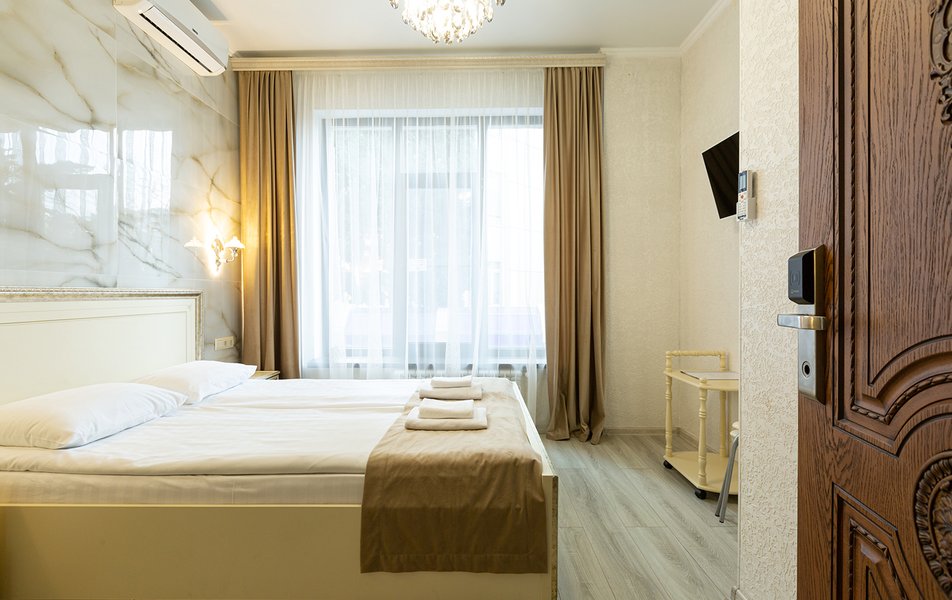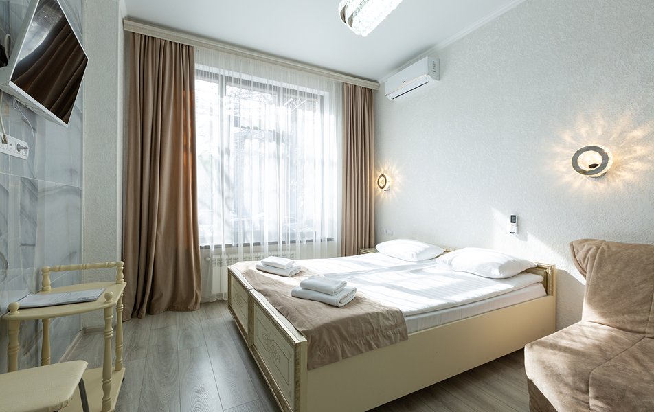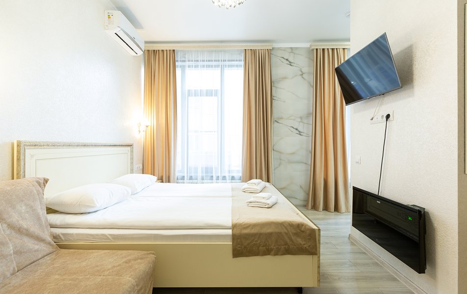 Отель работает с декабря 2020 года, его современные номера оснащены новой мебелью, сантехникой и всем необходимым для комфортного пребывания. В каждом номере есть санузел с душевой кабиной, кондиционер, холодильник и чайник. Некоторые номера даже оборудованы мини-кухней и стиральной машиной. Бесплатный Wi-Fi работает на всей территории отеля. На ресепшене гости могут арендовать дополнительную бытовую технику.