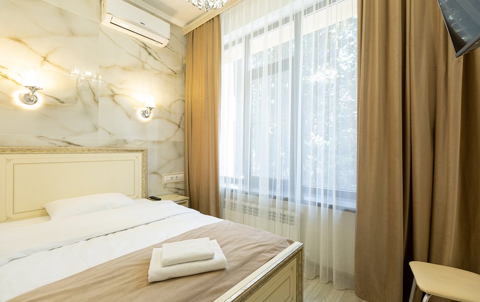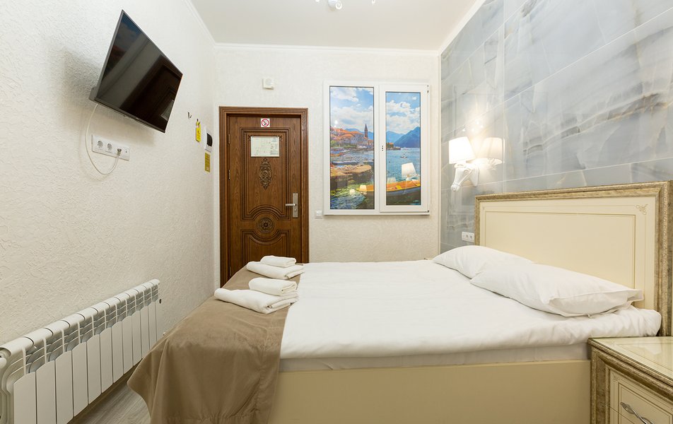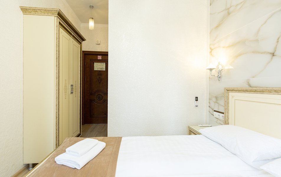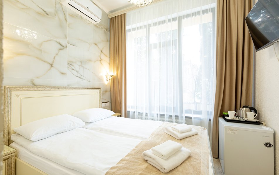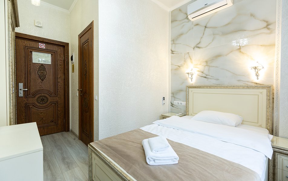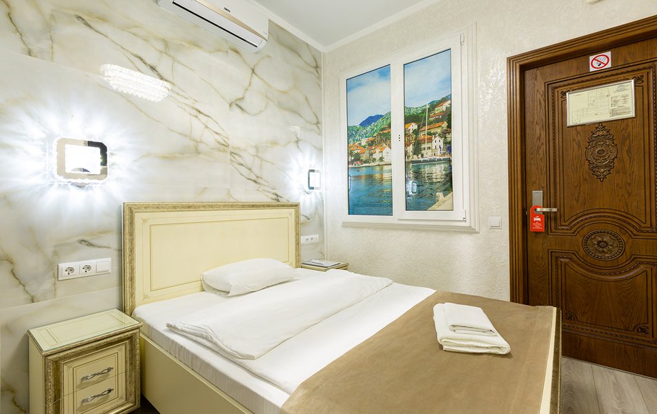 Бюджетный 2-местный (без окна) Количество комнат: 1-комнатный Тип номера: Стандартный Вид из номера: без окна Кол-во номеров: 3 Кол-во основных мест: 2 Площадь (кв. м): 12 Мебель: зеркало, кровать двуспальная, прикроватные тумбочки, шкаф Оборудование: кондиционер, мини-холодильник, сейф, телевизор ЖК, чайный набор посуды, электрочайник Санузел: с душевой кабиной, туалетные принадлежности, фен Сервис: Wi-Fi бесплатно, room-сервис, смена полотенец, смена постельного белья, уборка номера